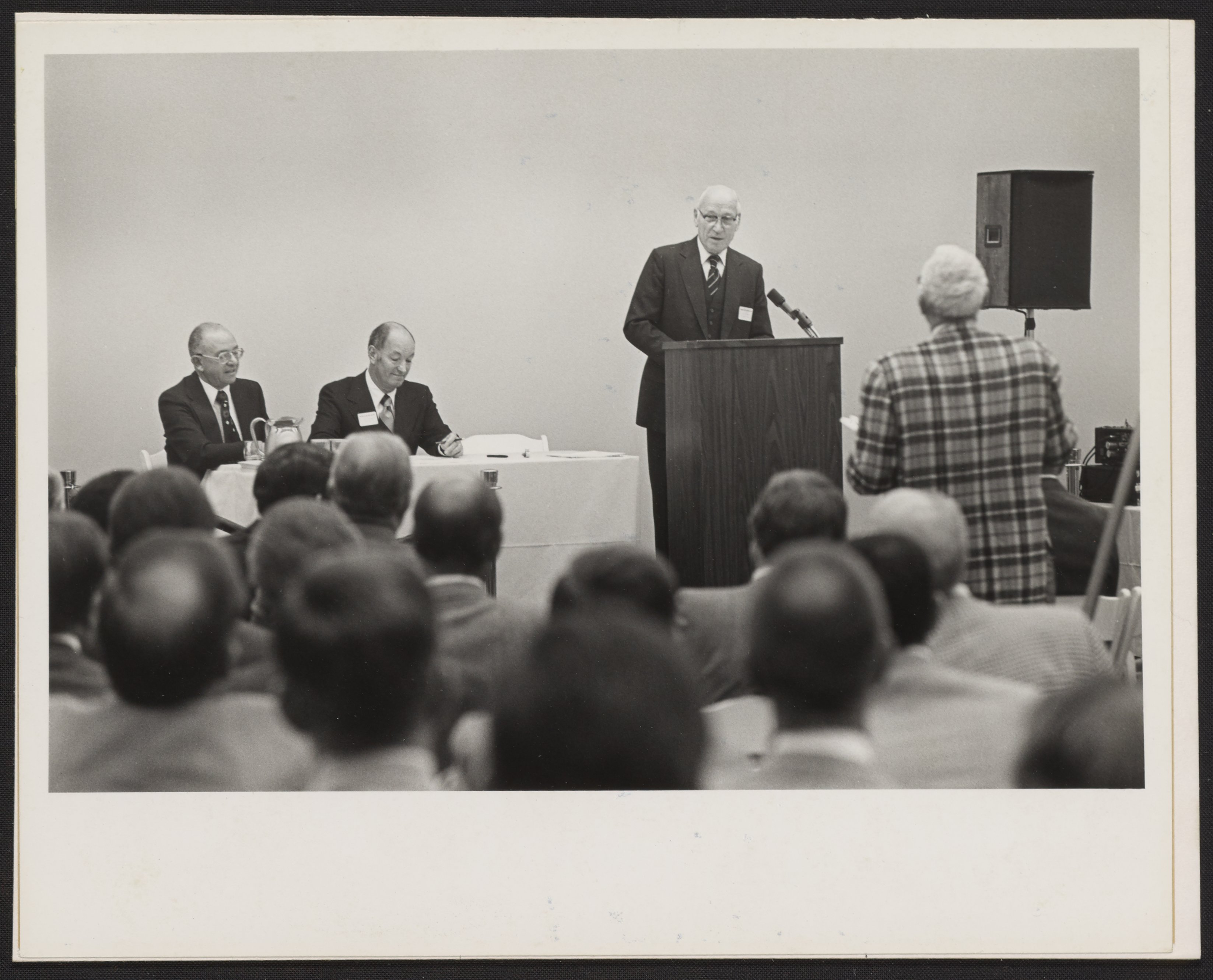 Small JPG1200 x 970px — 122 KBLarge JPG2880 x 2327px — 562 KBFull-sized JPG3293 x 2661px — 702 KBOriginal fileTIFF — 3293 x 2661px — 25.1 MBIn undated photographs that appear to have been taken in two or three different venues, Arnold Beckman and others address shareholders of the company.