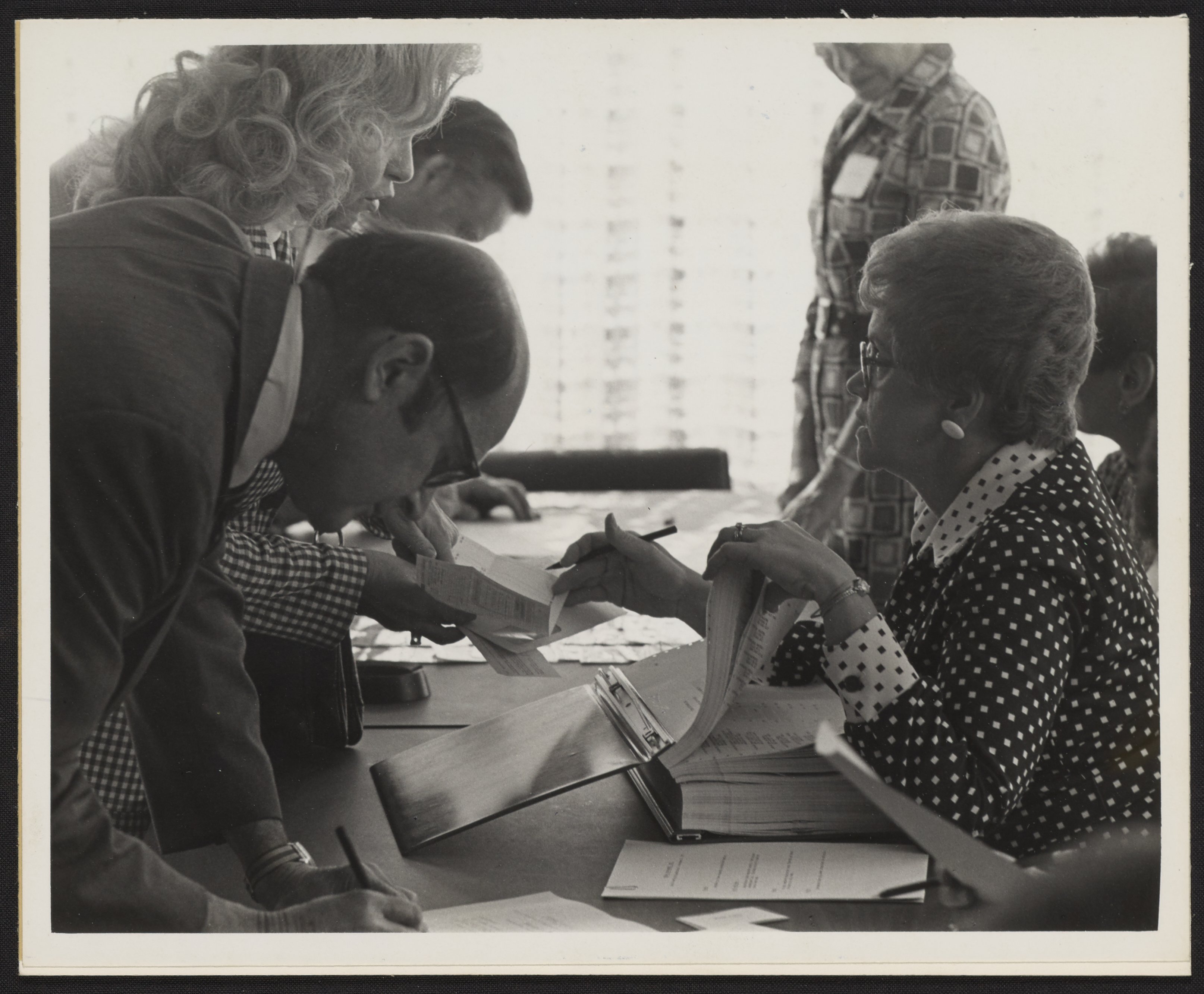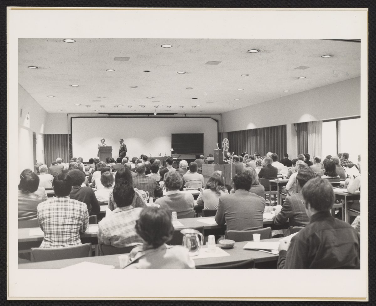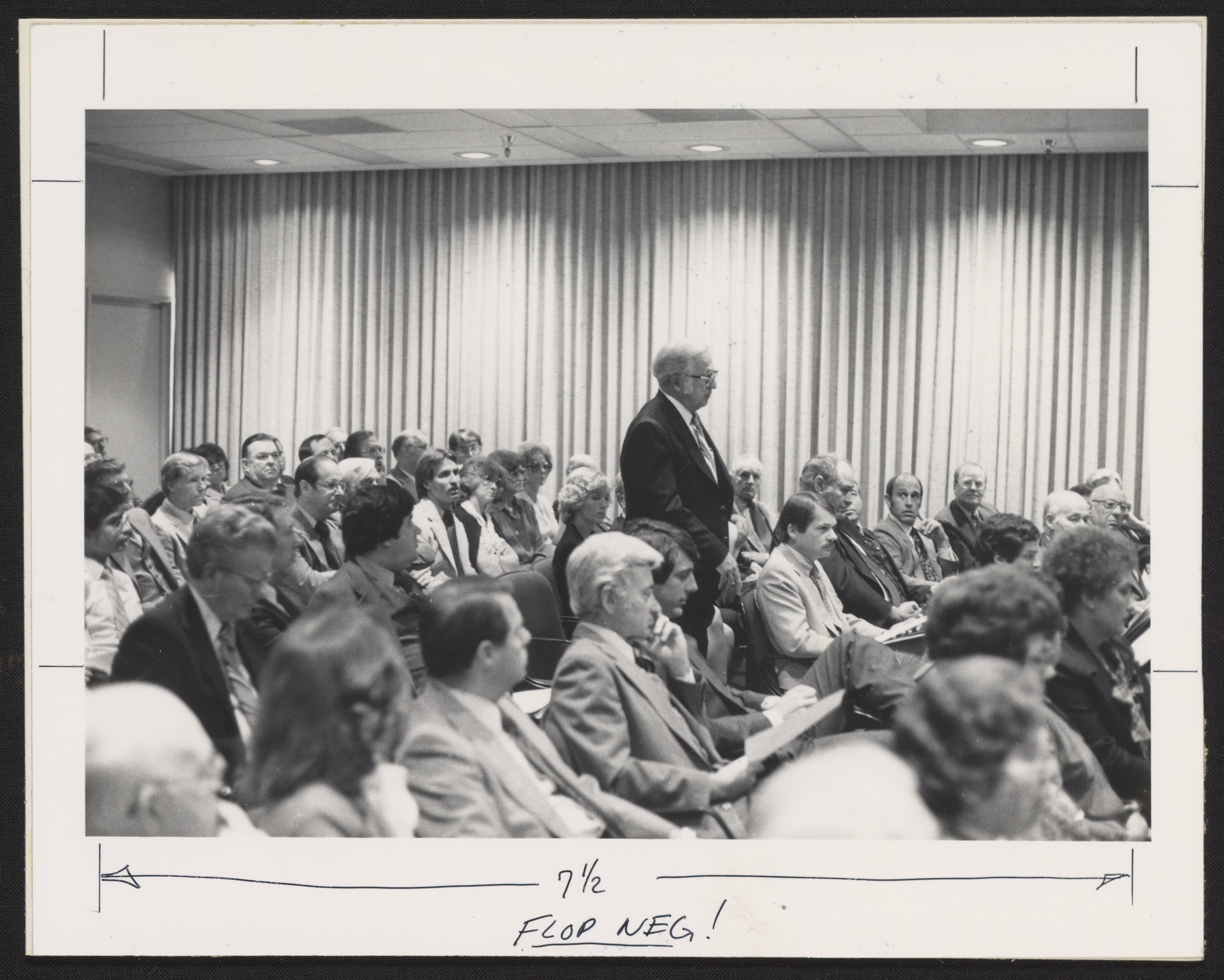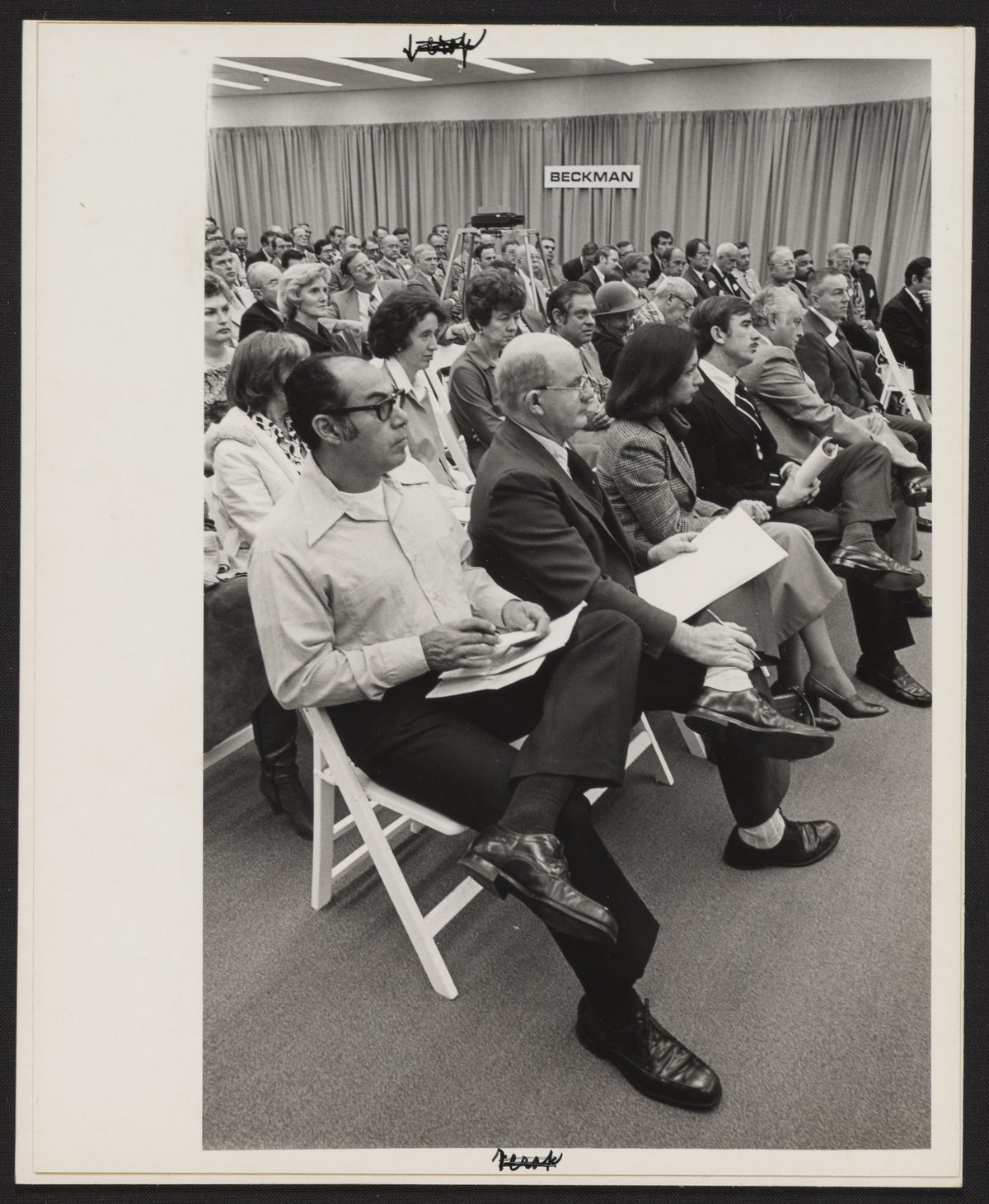 “Beckman Instruments Shareholders Meeting,” circa 1975. Beckman Historical Collection, Box 55, Folder 138. Science History Institute. Philadelphia. https://digital.sciencehistory.org/works/6t053g30p.