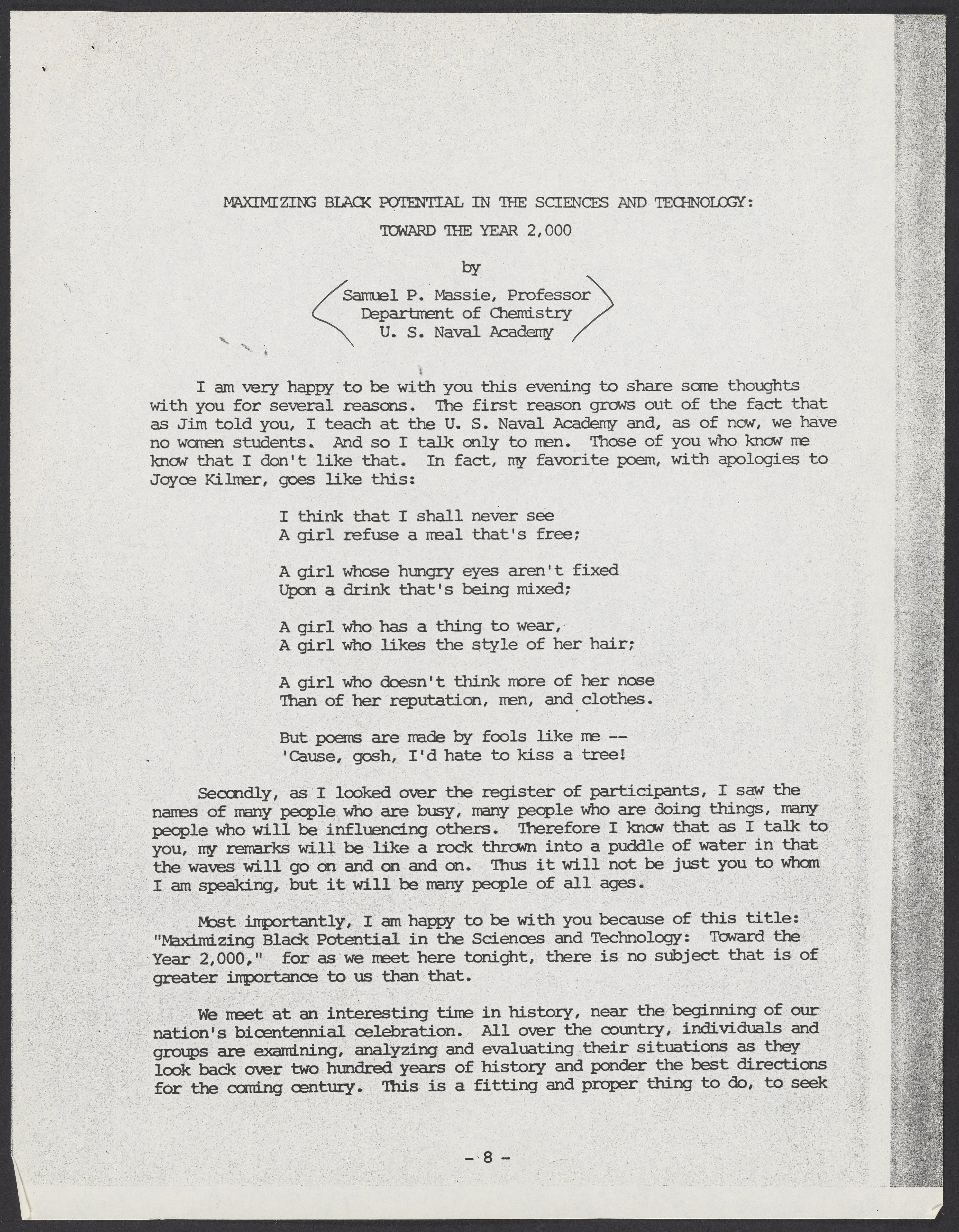• Maximizing Black Potential in Science & Technology: Toward the Year 2000