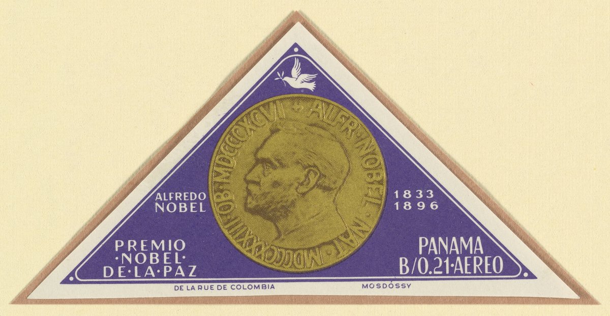 Thomas De La Rue & Company. “Panamanian Postage Stamp Commemorating Alfred Nobel and the Nobel Prize.” Panama, n.d. Witco Stamp Collection, Box 2. Science History Institute. Philadelphia. https://digital.sciencehistory.org/works/6w924b858.