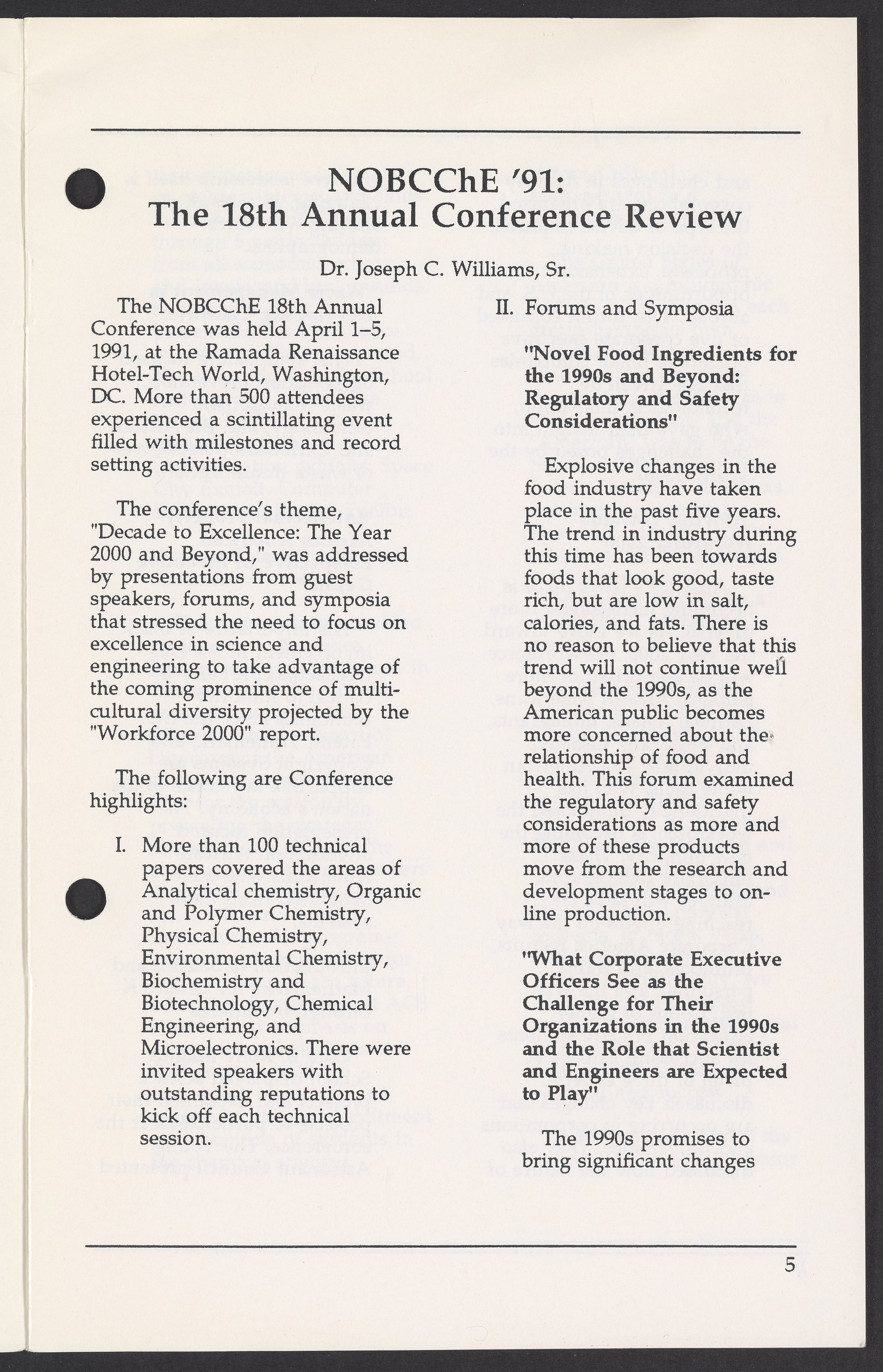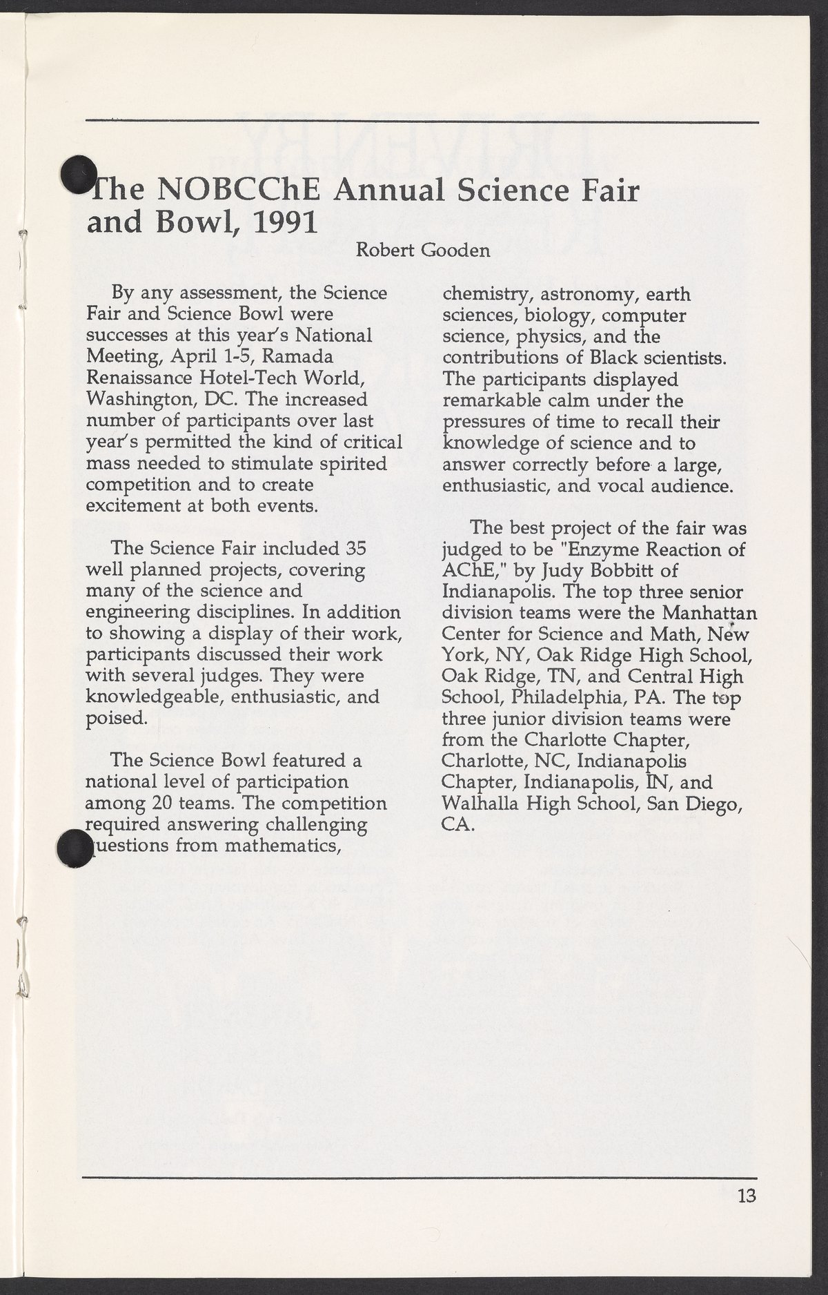 “NOBCChE News, Volume 12, Number 2.” Washington (D.C.): National Organization for Black Chemists and Chemical Engineers, June 1991. William A. Lester, Jr. Papers, Box 46, Folder 26. Science History Institute. Philadelphia. https://digital.sciencehistory.org/works/70p55lr.