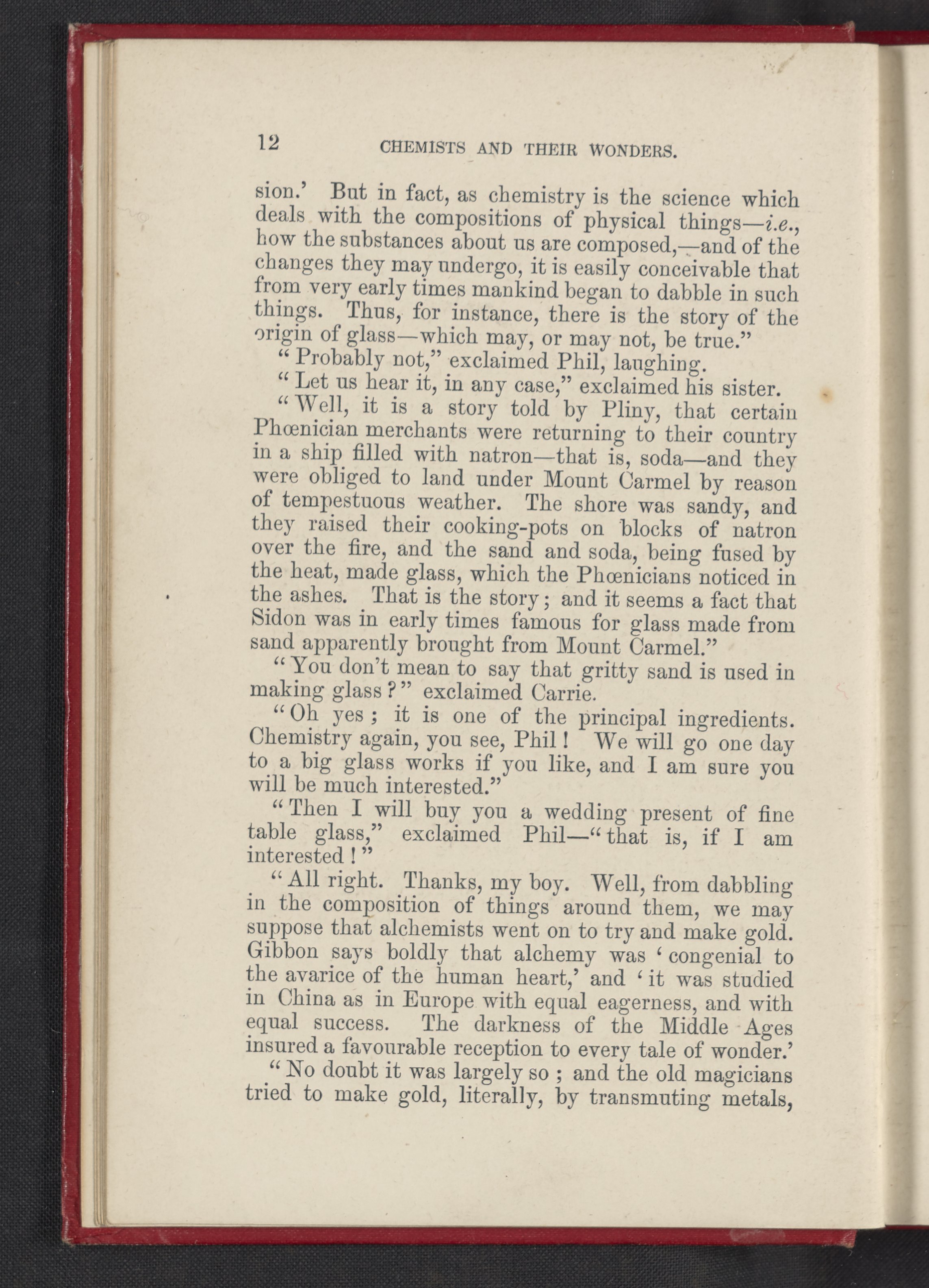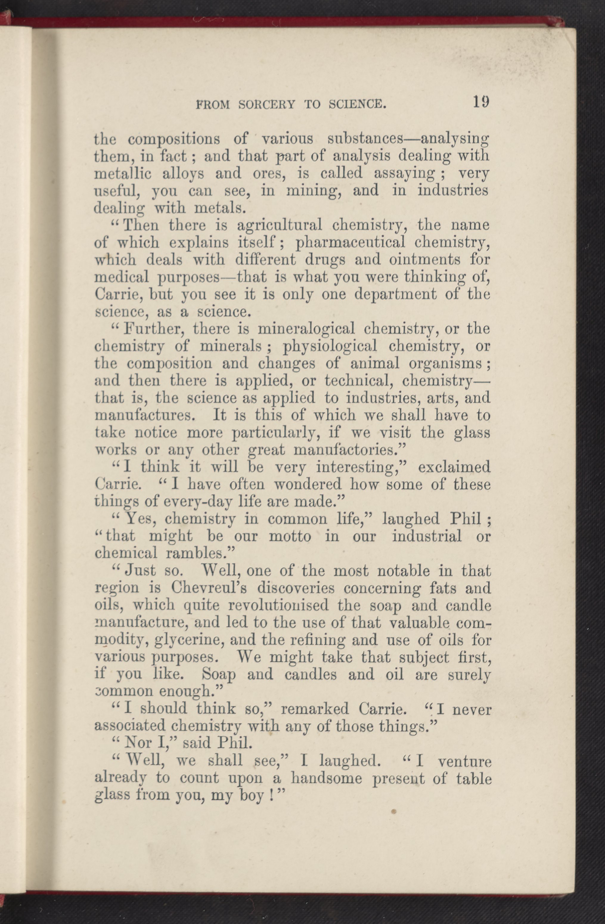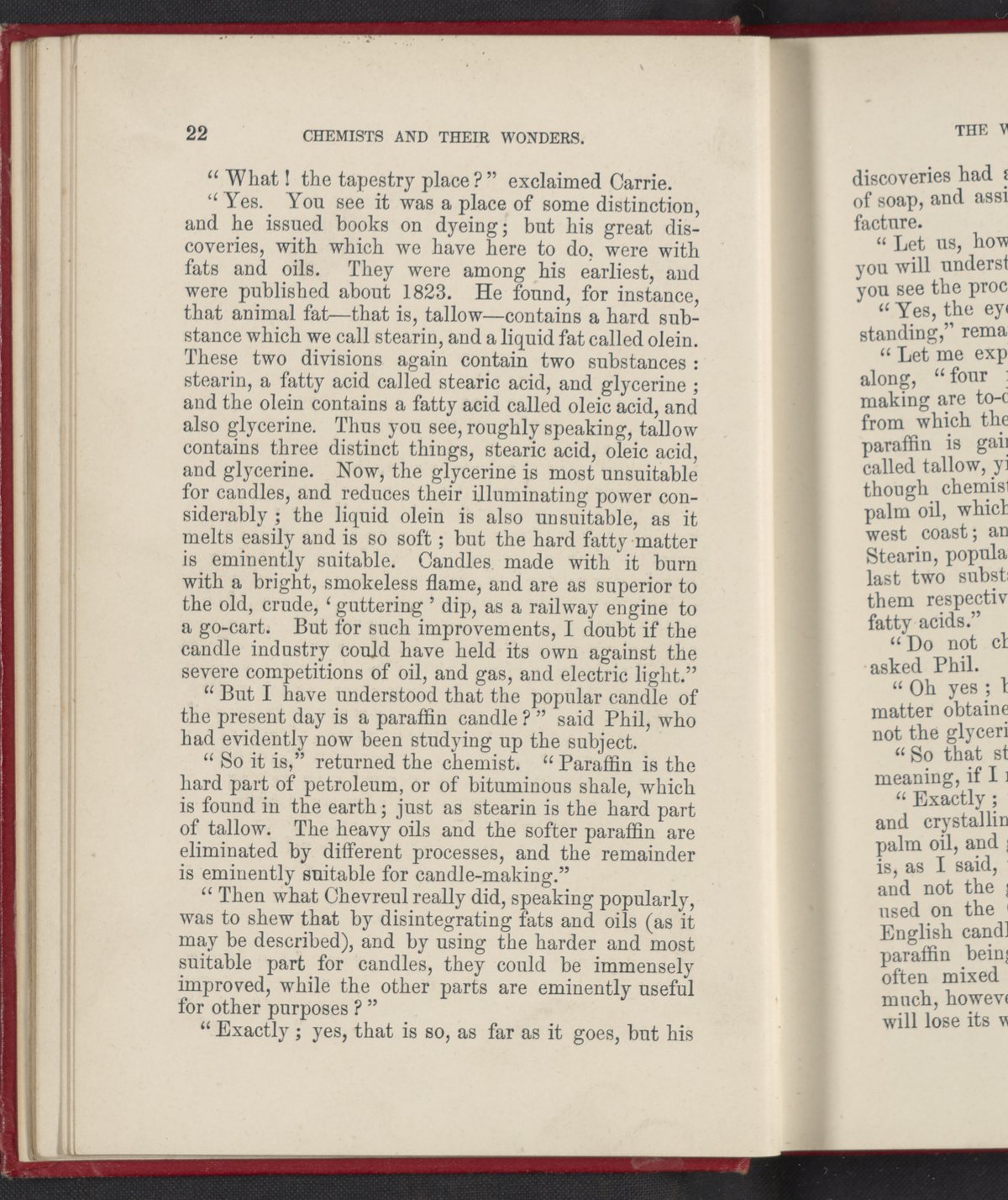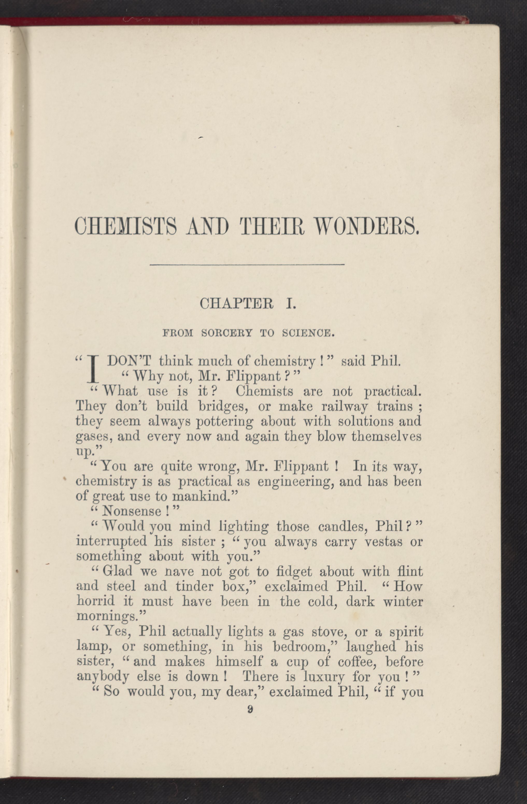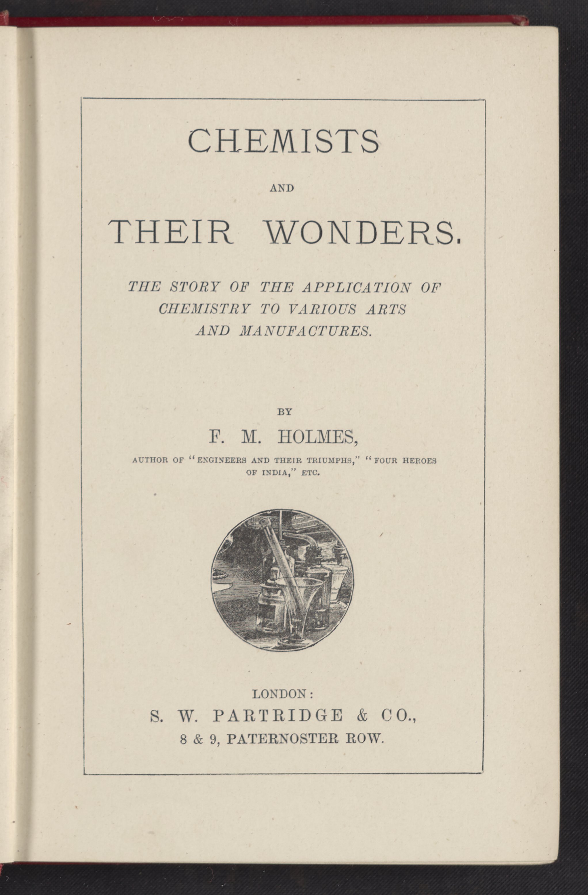 Holmes, F. M. (Frederic Morell). “Chemists and Their Wonders: The Story of the Application of Chemistry to Various Arts and Manufactures.” London, England: S. W. Partridge & Co., circa 1896. TP19 .H65 1896. Science History Institute. Philadelphia. https://digital.sciencehistory.org/works/70xzpdt.