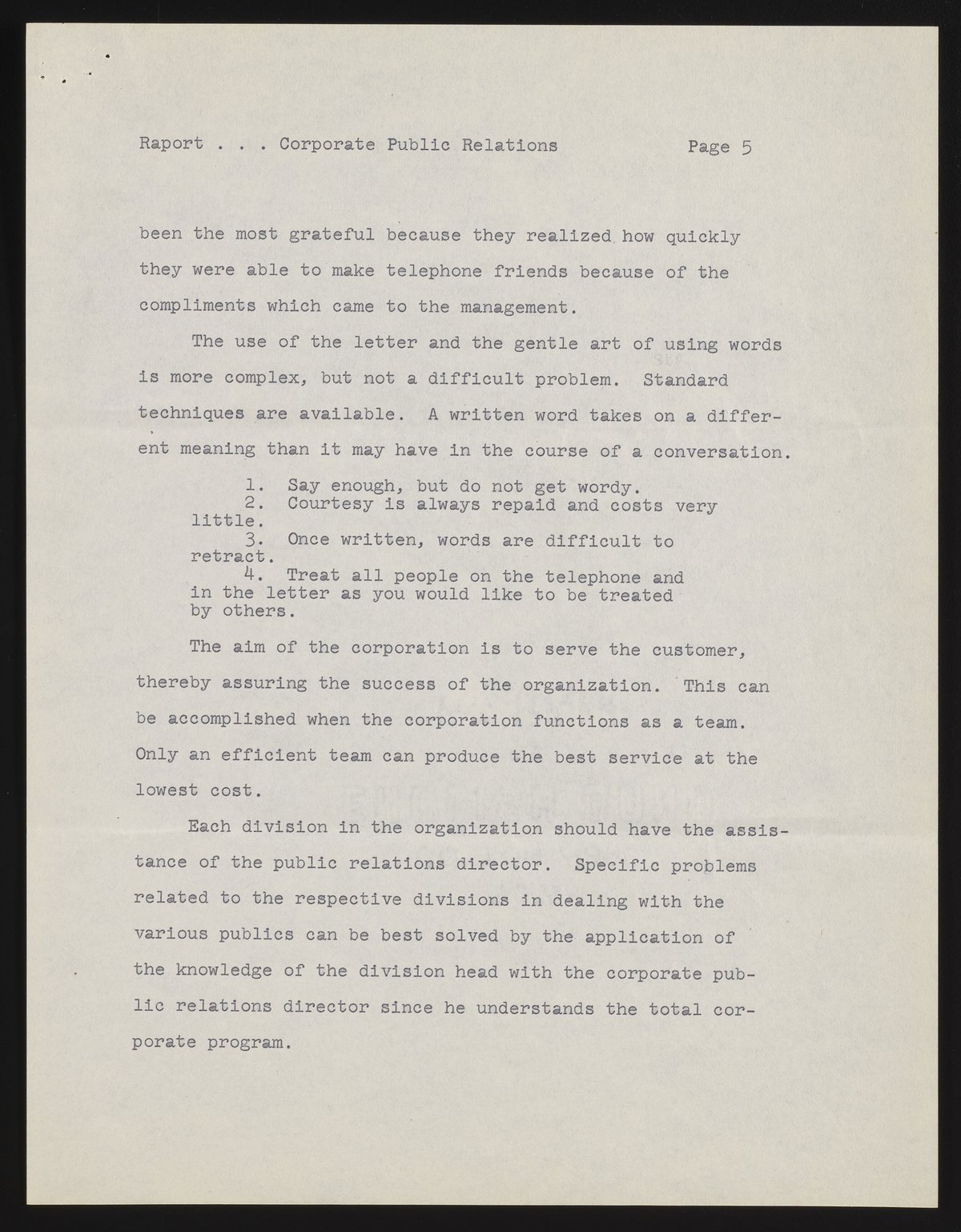 The document lays out the purpose, techniques, and goals of a corporate public relations program.