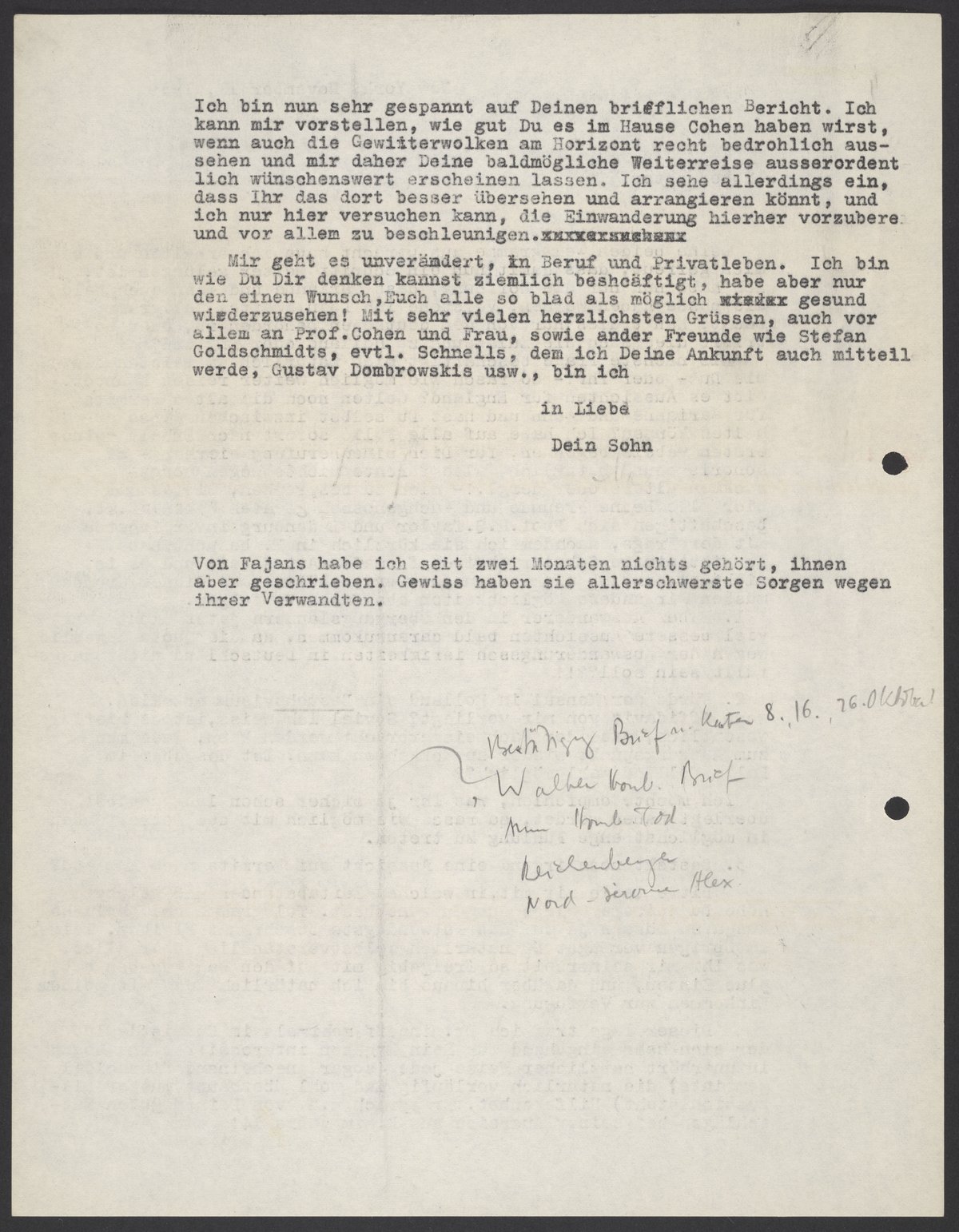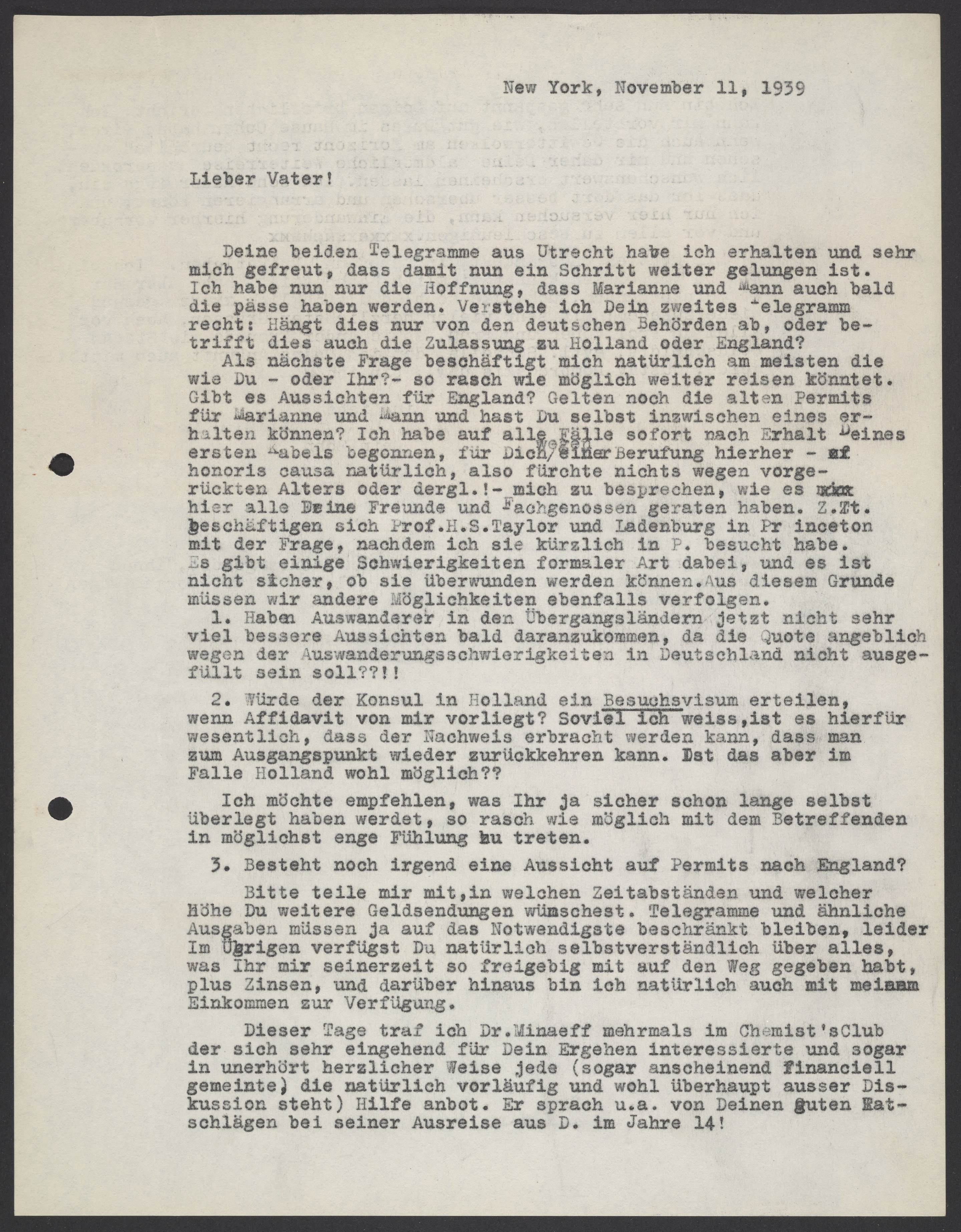 Letter from Max Bredig to Georg Bredig, November 11, 1939