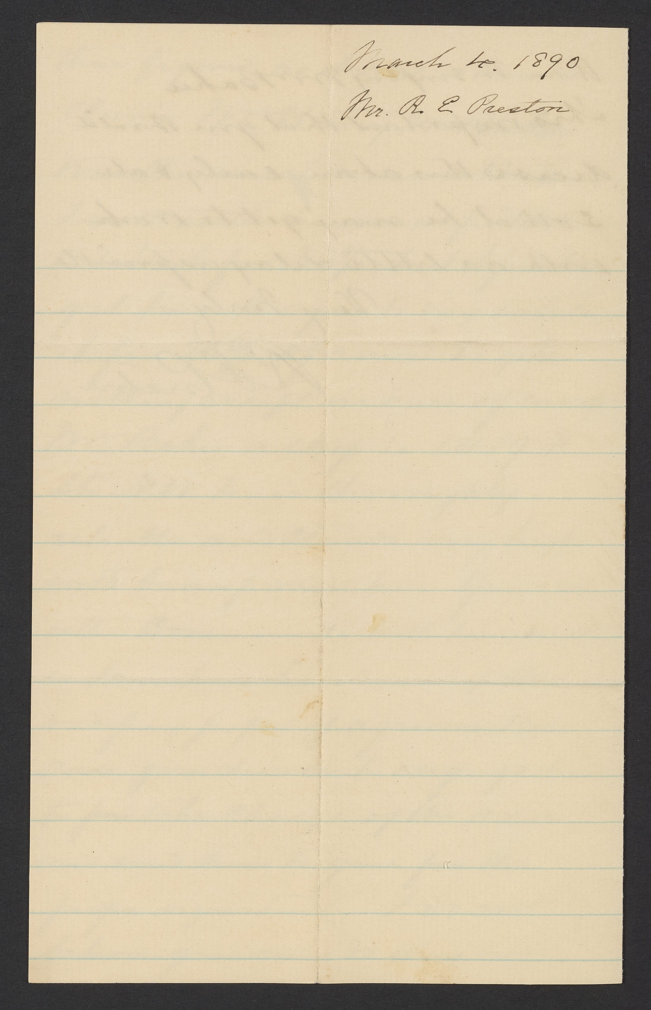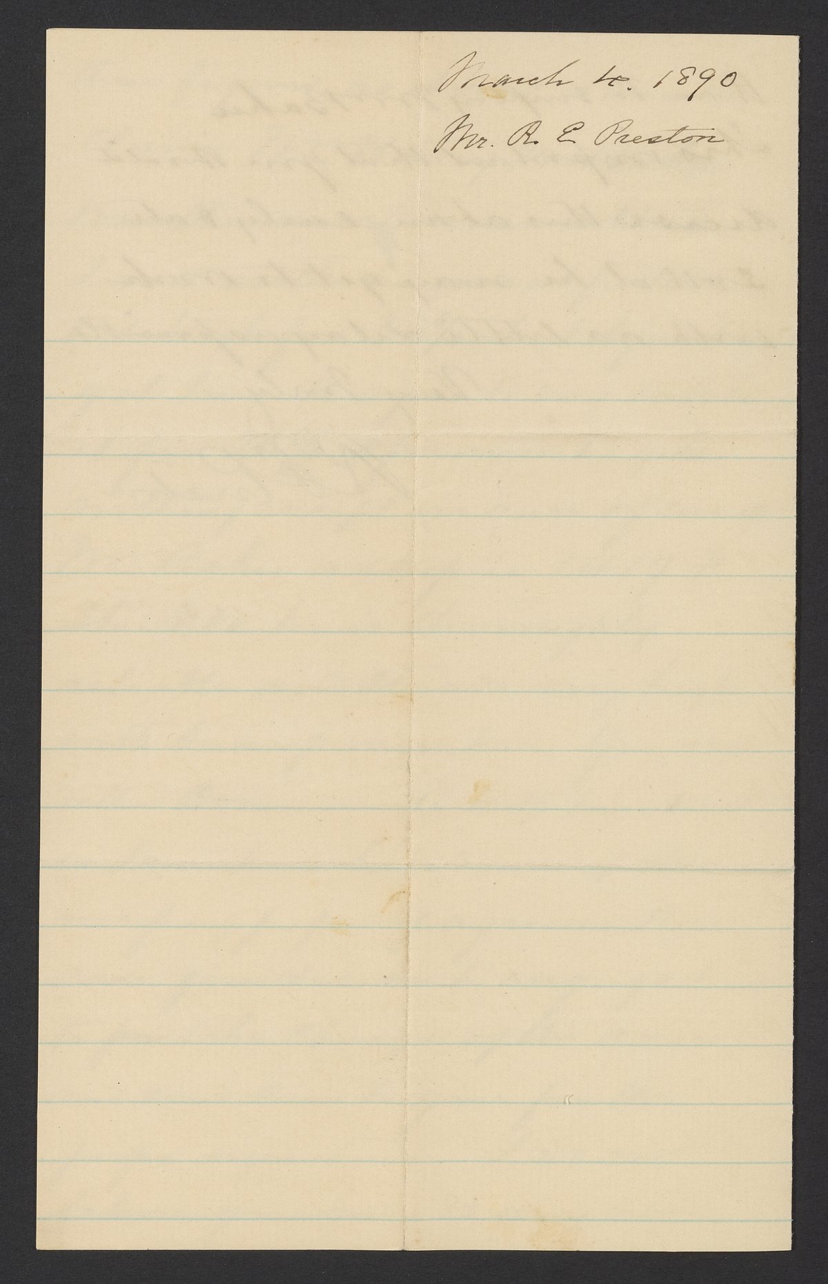 Letter from R.E. Preston to Margaret M. Booth, March 4, 1890