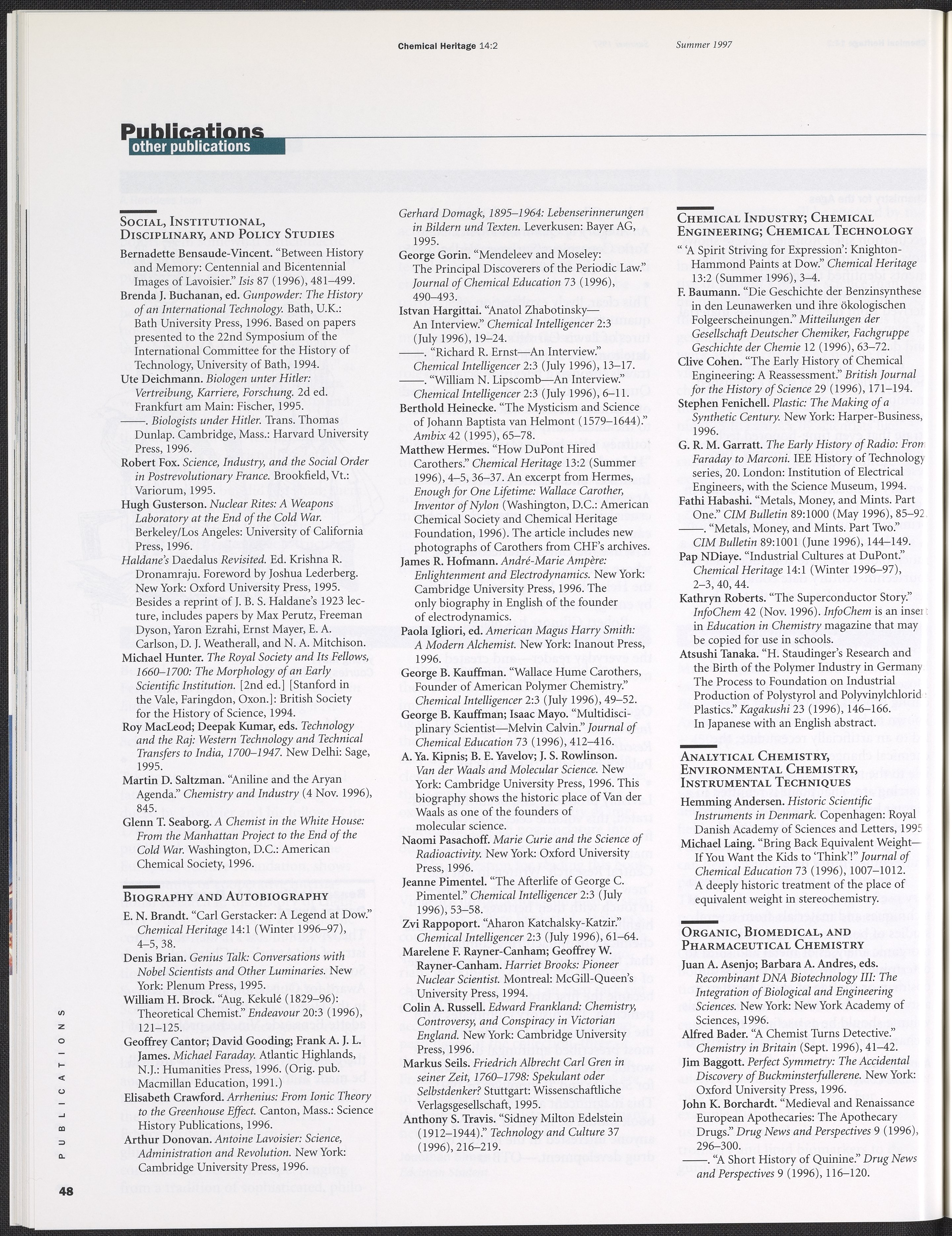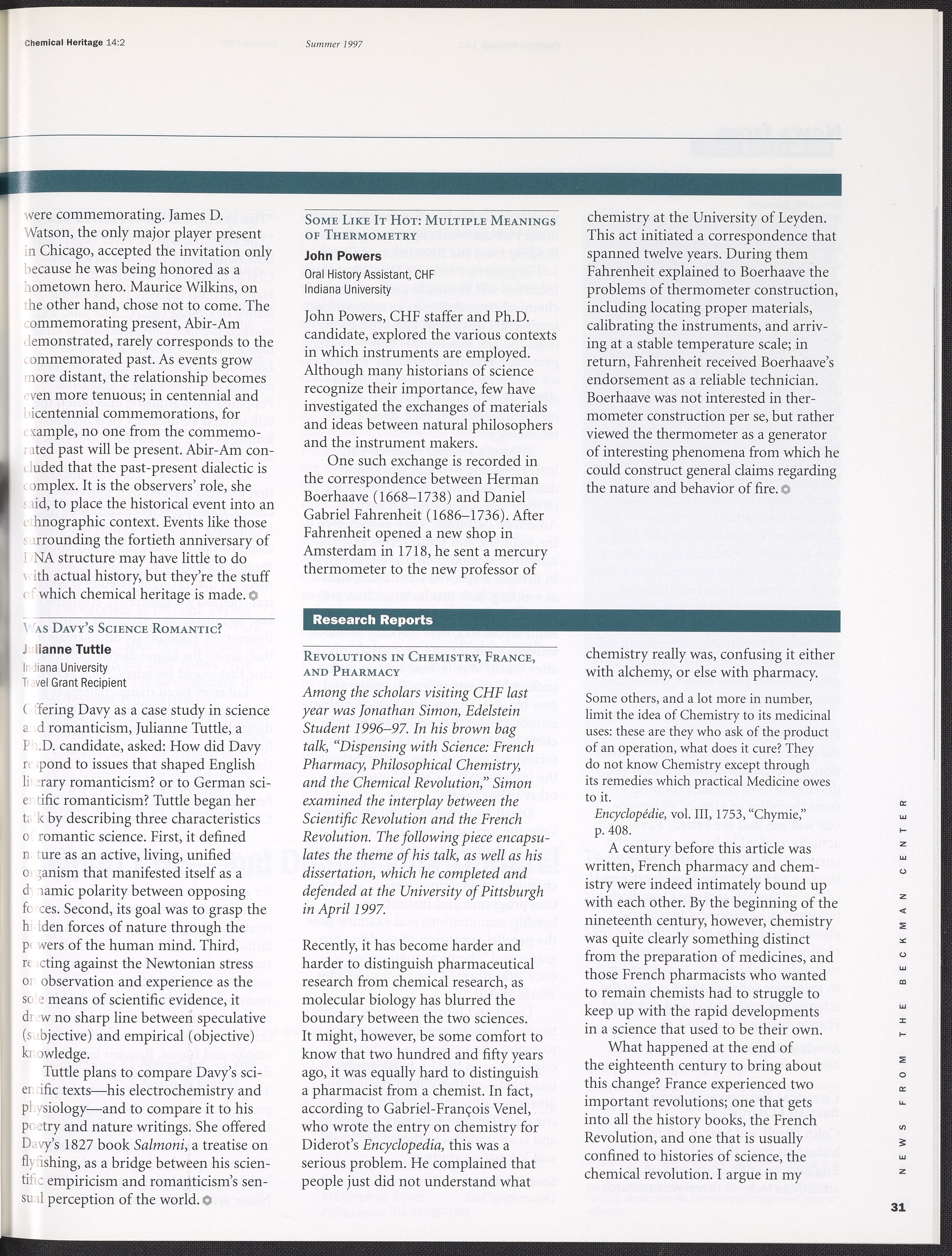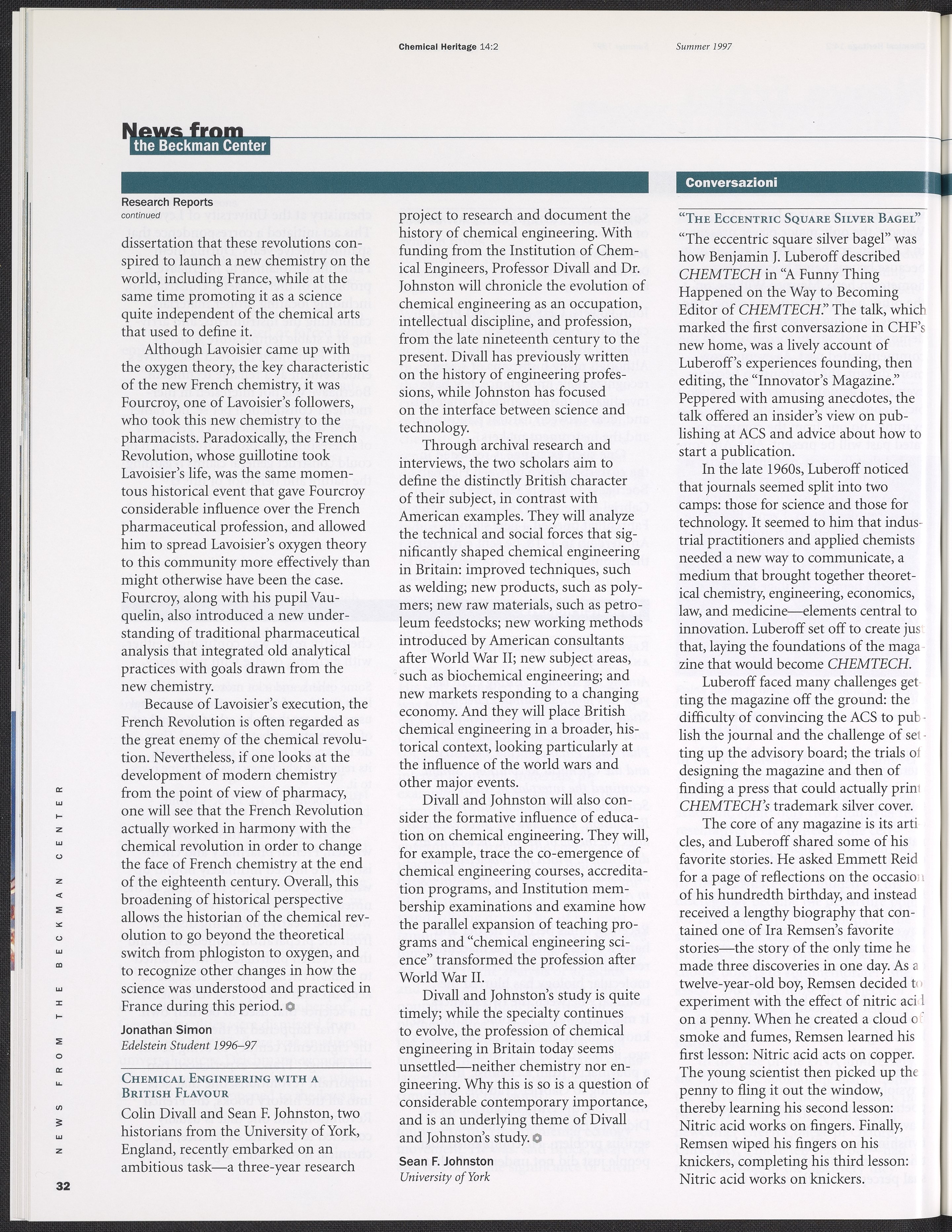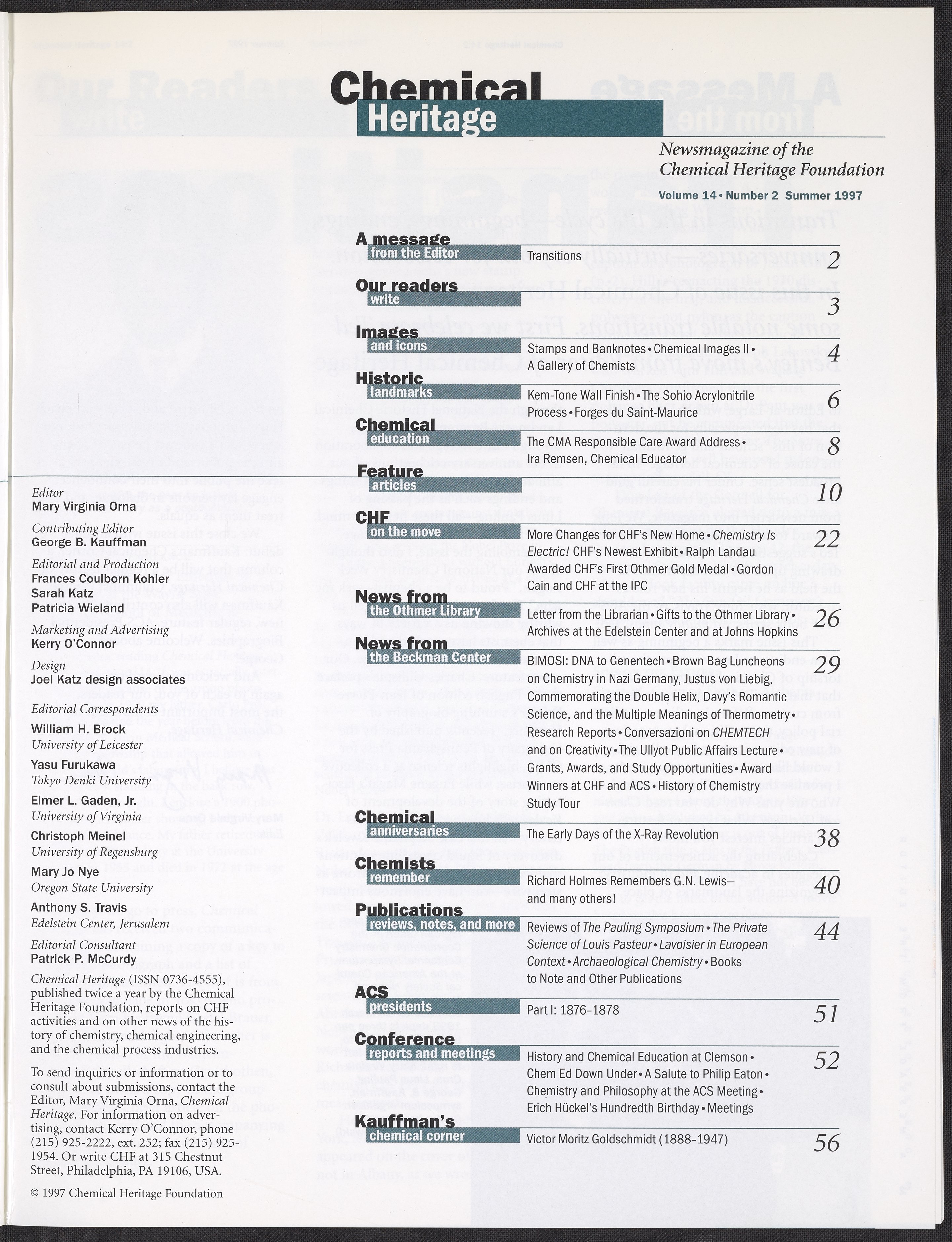 Chemical Heritage, Volume 14 Number 2