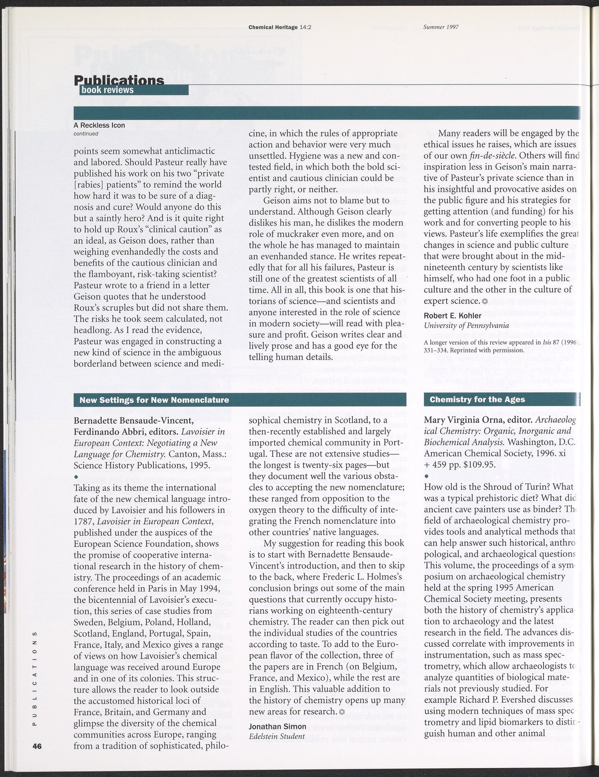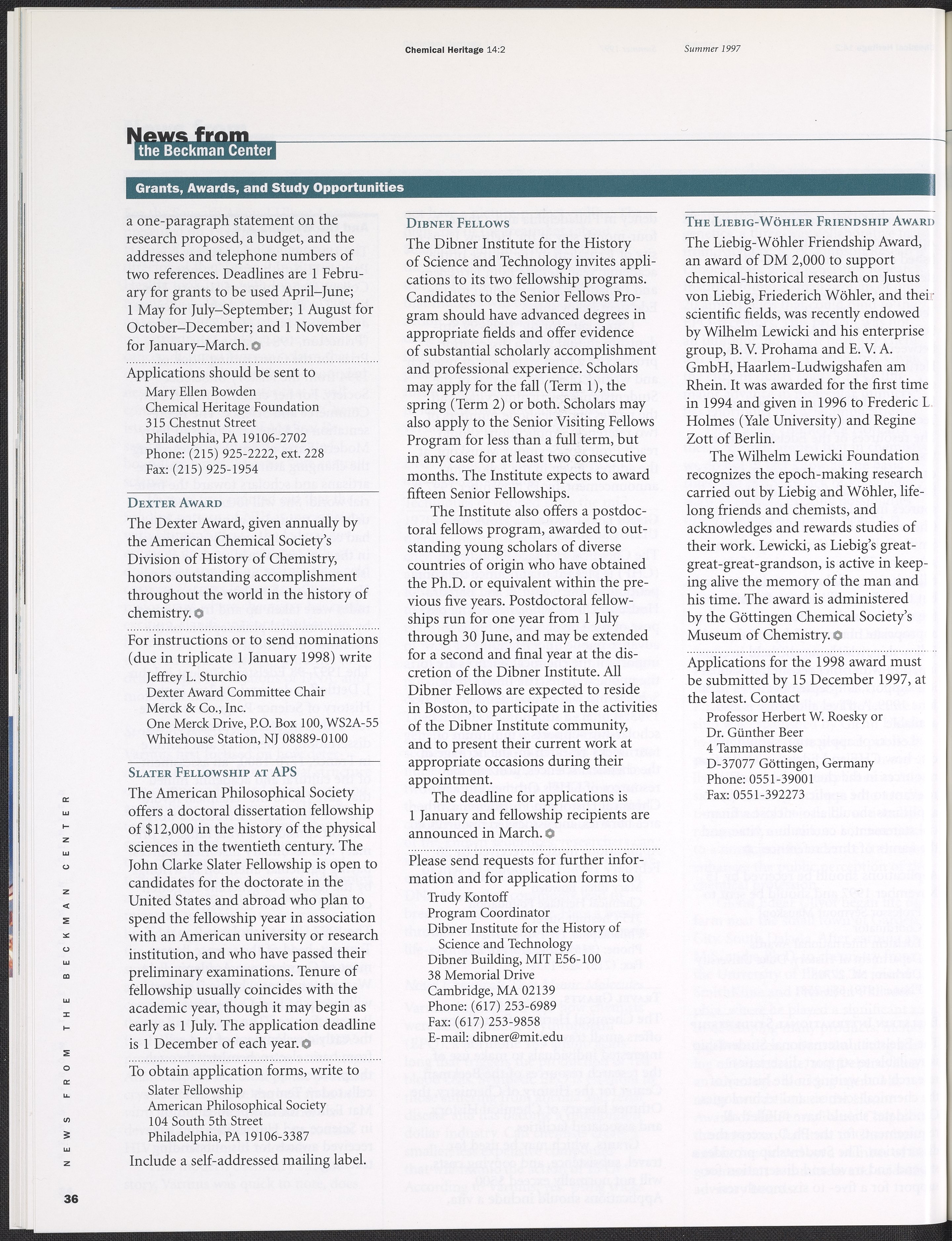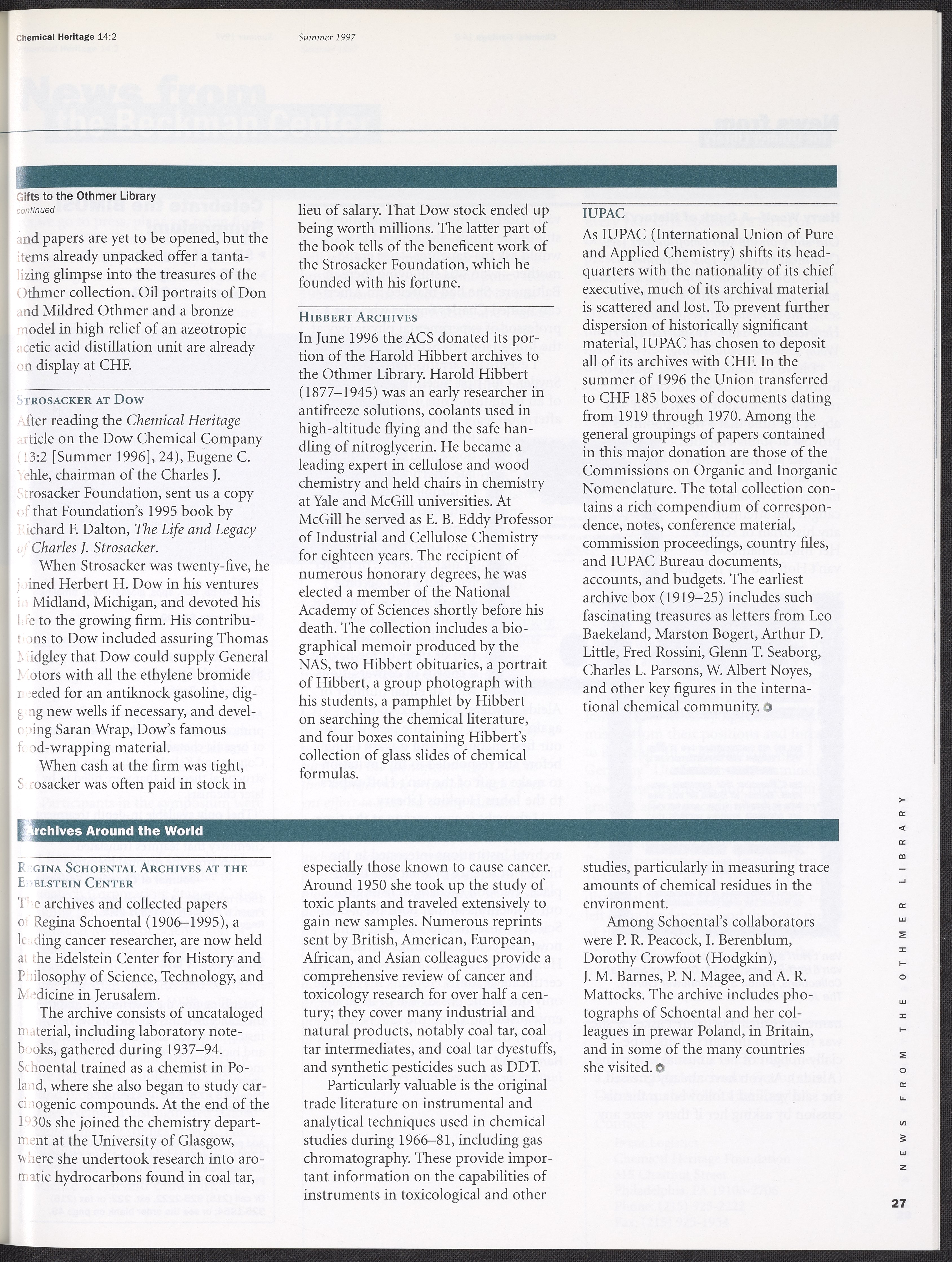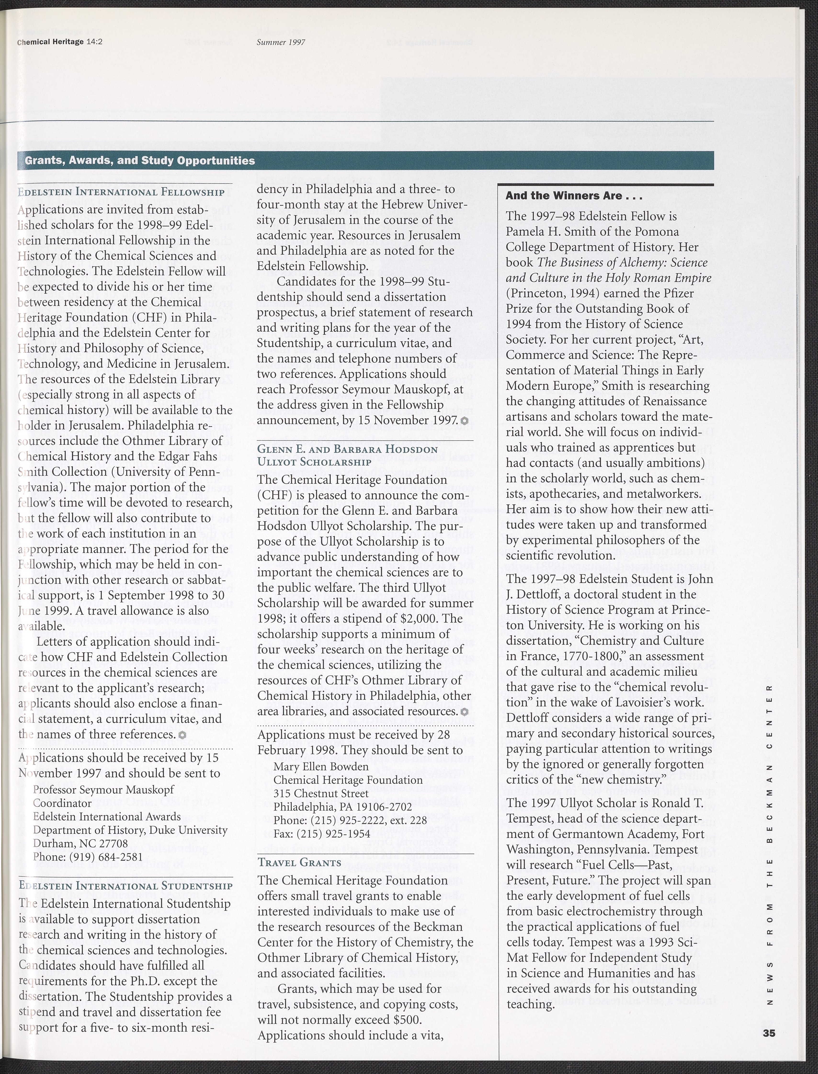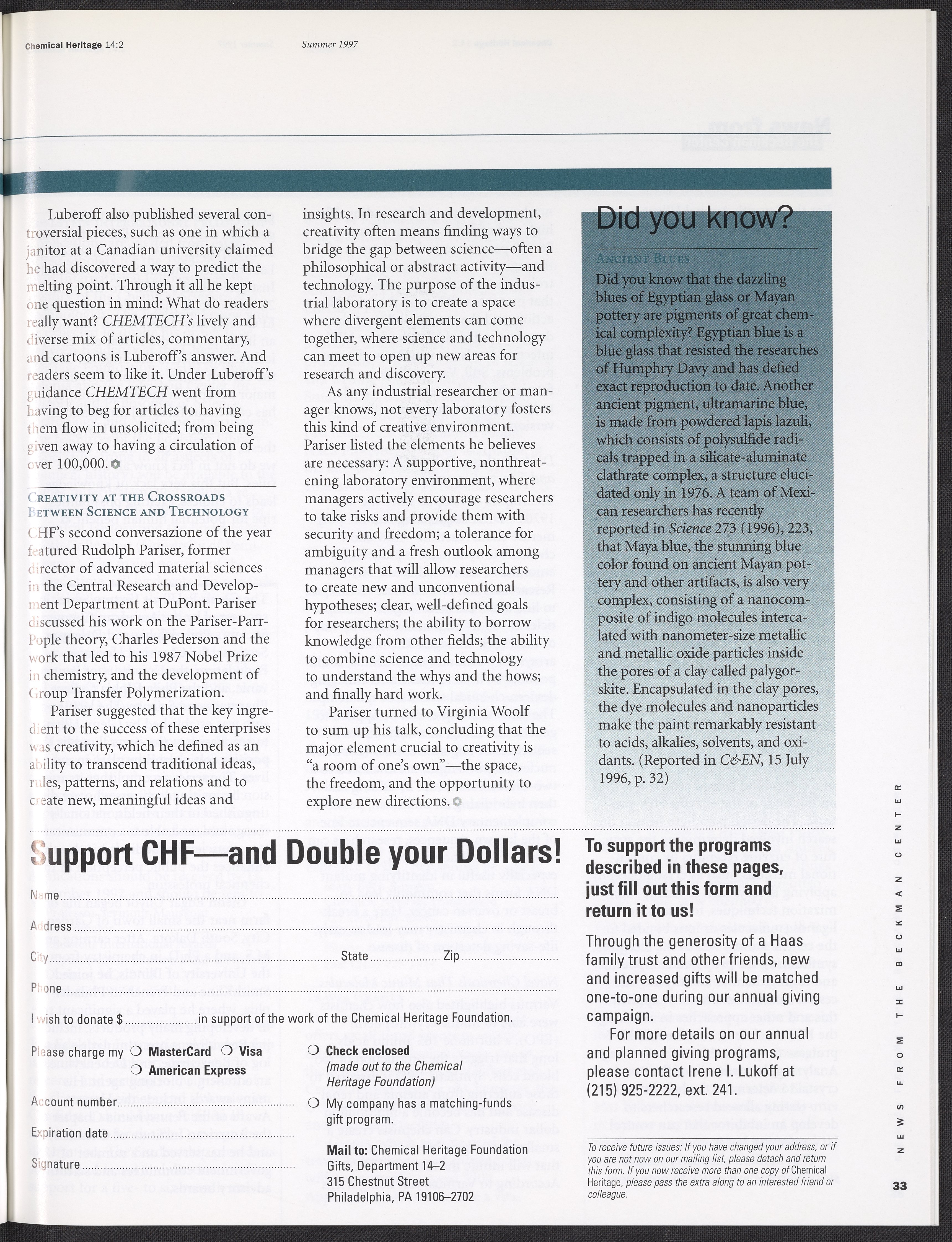 Chemical Heritage, Volume 14 Number 2