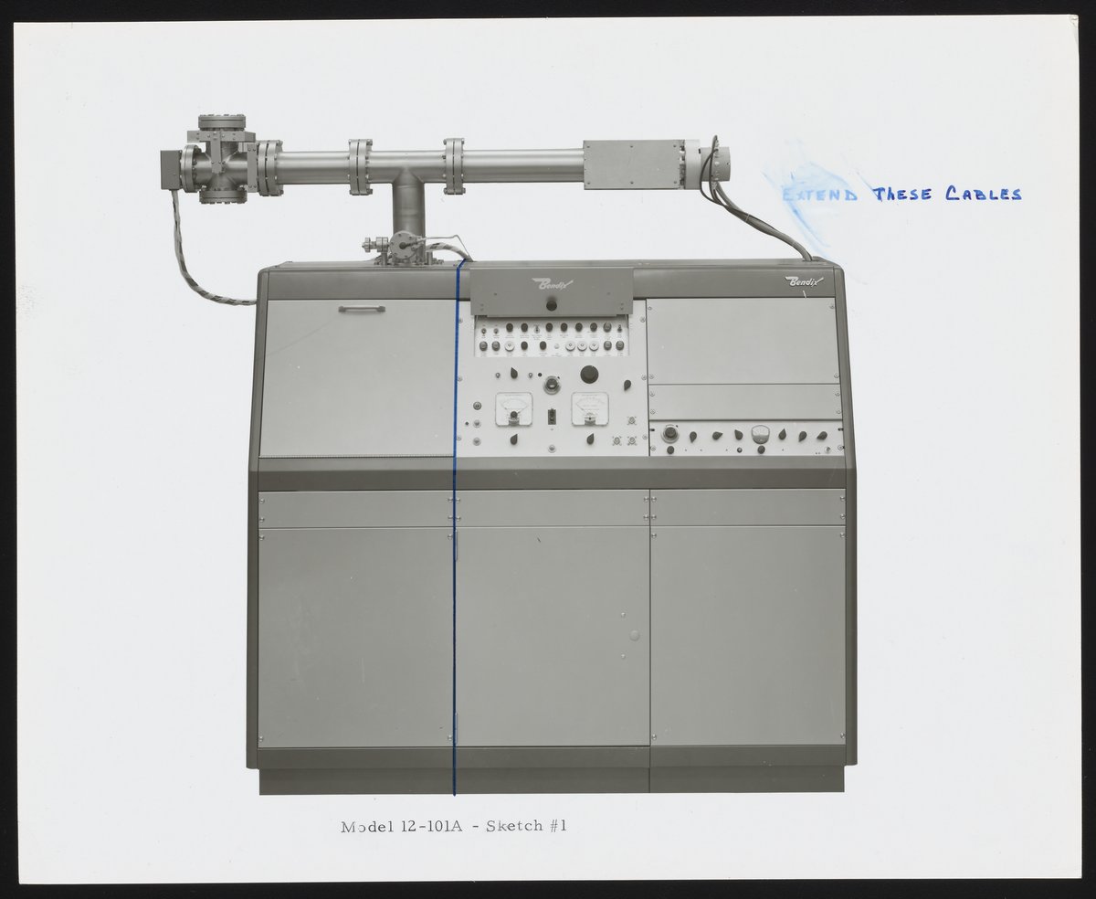 Bendix Corporation. “Bendix Model 12-101A Mass Spectrometer,” circa 1970. Photographs from the Bendix Time-of-Flight Mass Spectrometer Collection, Box 2. Science History Institute. Philadelphia. https://digital.sciencehistory.org/works/7d278t36z.