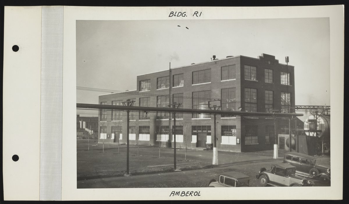 Rohm and Haas Company. “Amberol Manufacturing Facility at Bridesburg Plant.” Exterior Views of Charles Lennig and Company Plant in Bridesburg, 1931. Rohm & Haas Company Archives, Box 27 (Photographs), Folder 8. Science History Institute. Philadelphia. https://digital.sciencehistory.org/works/7d278v03m.