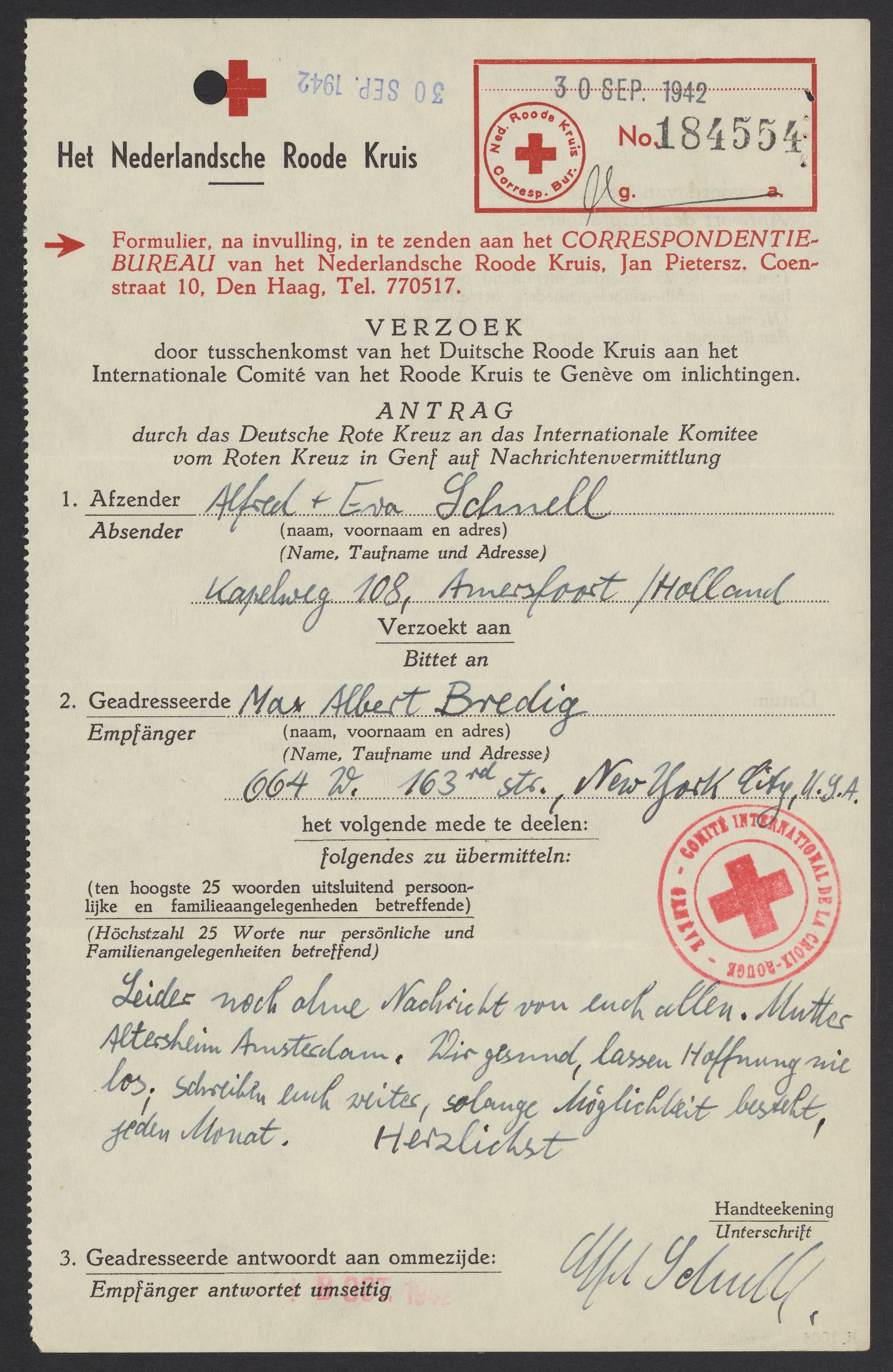 The Netherlands Red Cross / SEPTEMBER 30, 1942 / No 184554