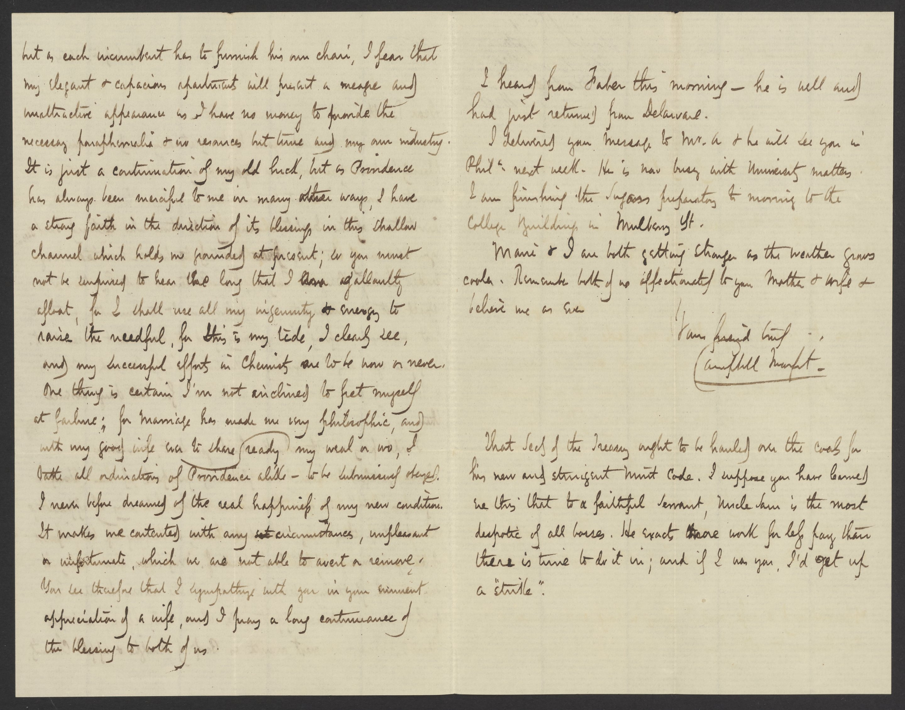 Small JPG1200 x 1808px — 305 KBFull-sized JPG2154 x 3246px — 756 KBOriginal fileTIFF — 2154 x 3246px — 20.1 MBCampbell Morfit (1820-1897), a distinguished chemist and co-editor with James Curtis Booth (1810-1888) of the Encyclopedia of Chemistry (1850), writes on the vicissitudes of being a new professor.