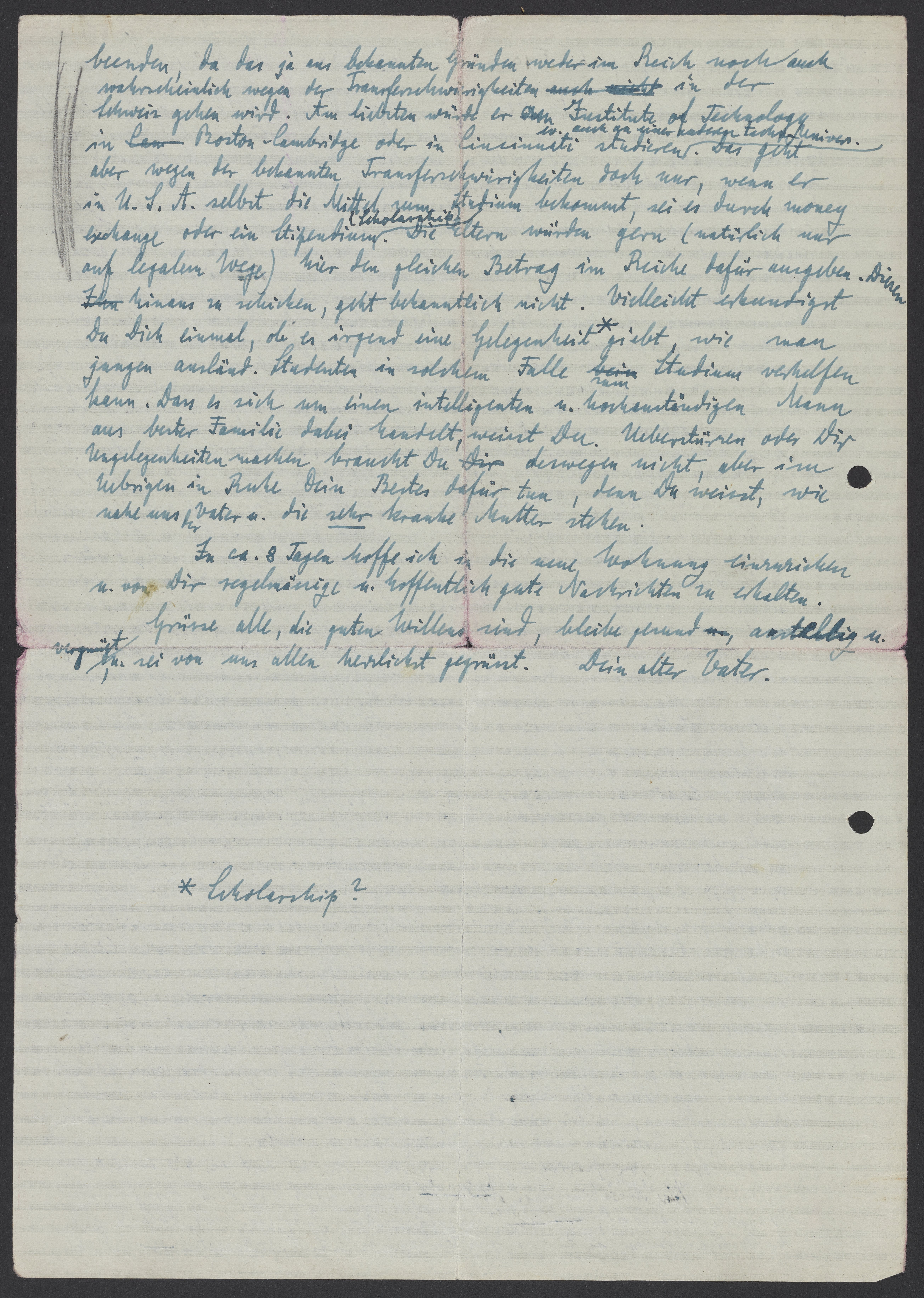 Letter from Georg Bredig to Max Bredig, September 4, 1938