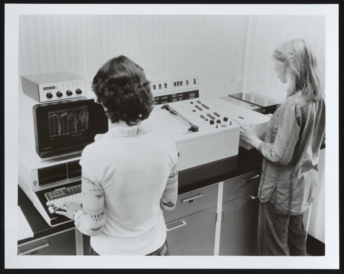 Perkin-Elmer Corporation. “Perkin-Elmer Infrared Spectroscopy Equipment in Use at Broome Community College Laboratory,” 1970–1979. Photographs from the Perkin-Elmer-Applera Collection, Box 6. Science History Institute. Philadelphia. https://digital.sciencehistory.org/works/7m01bm63b.
