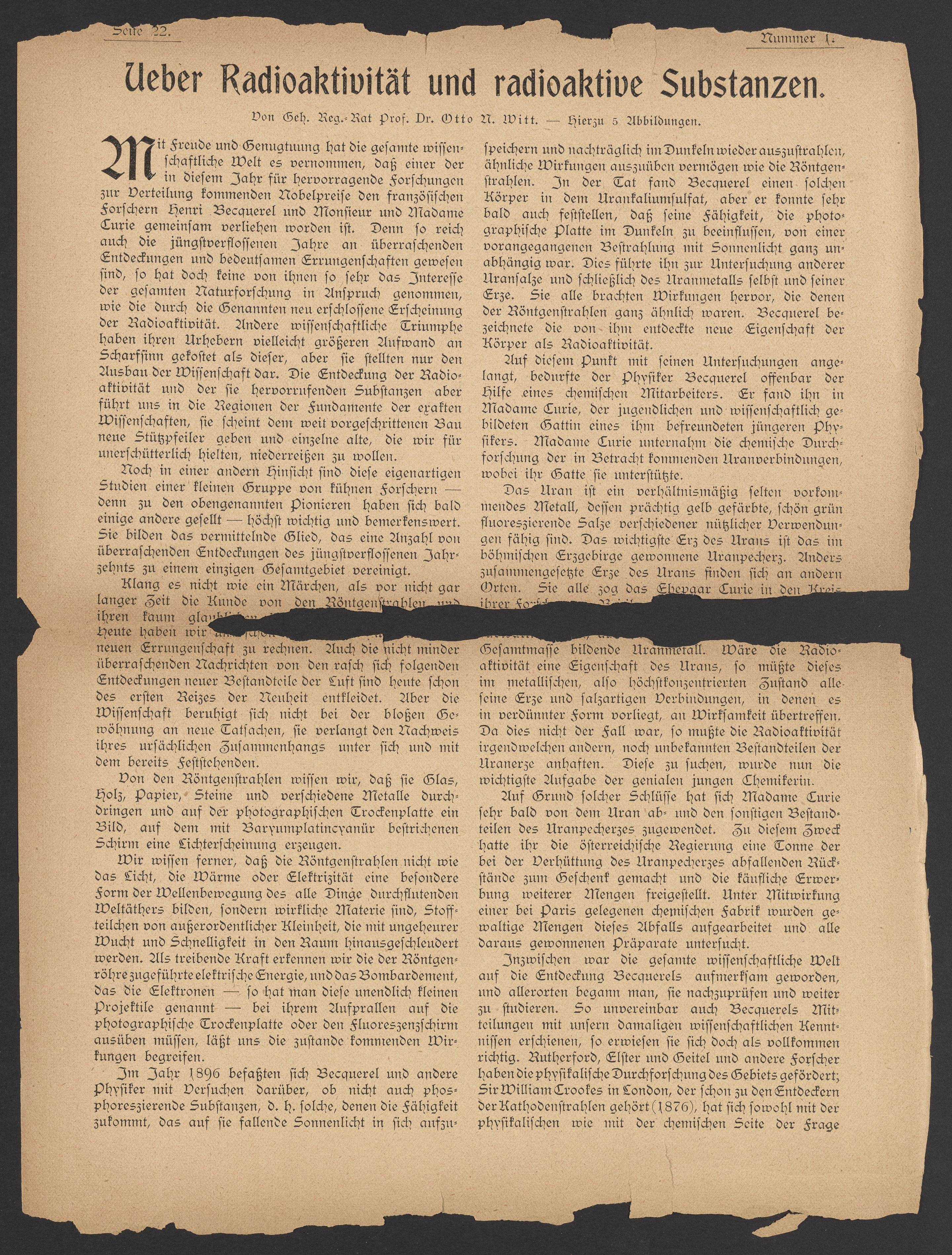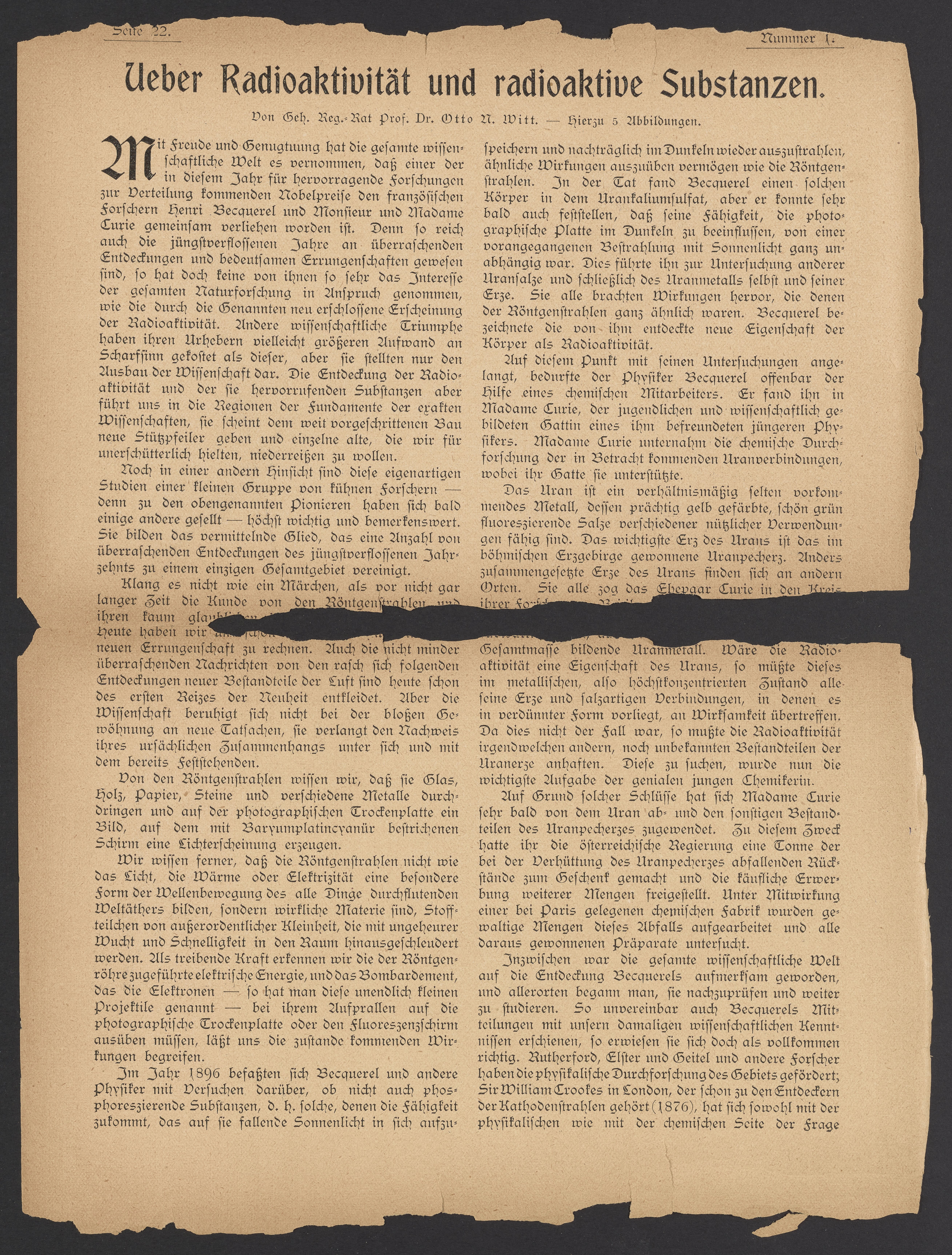 Ueber Radioaktivität und radioaktive Substanzen