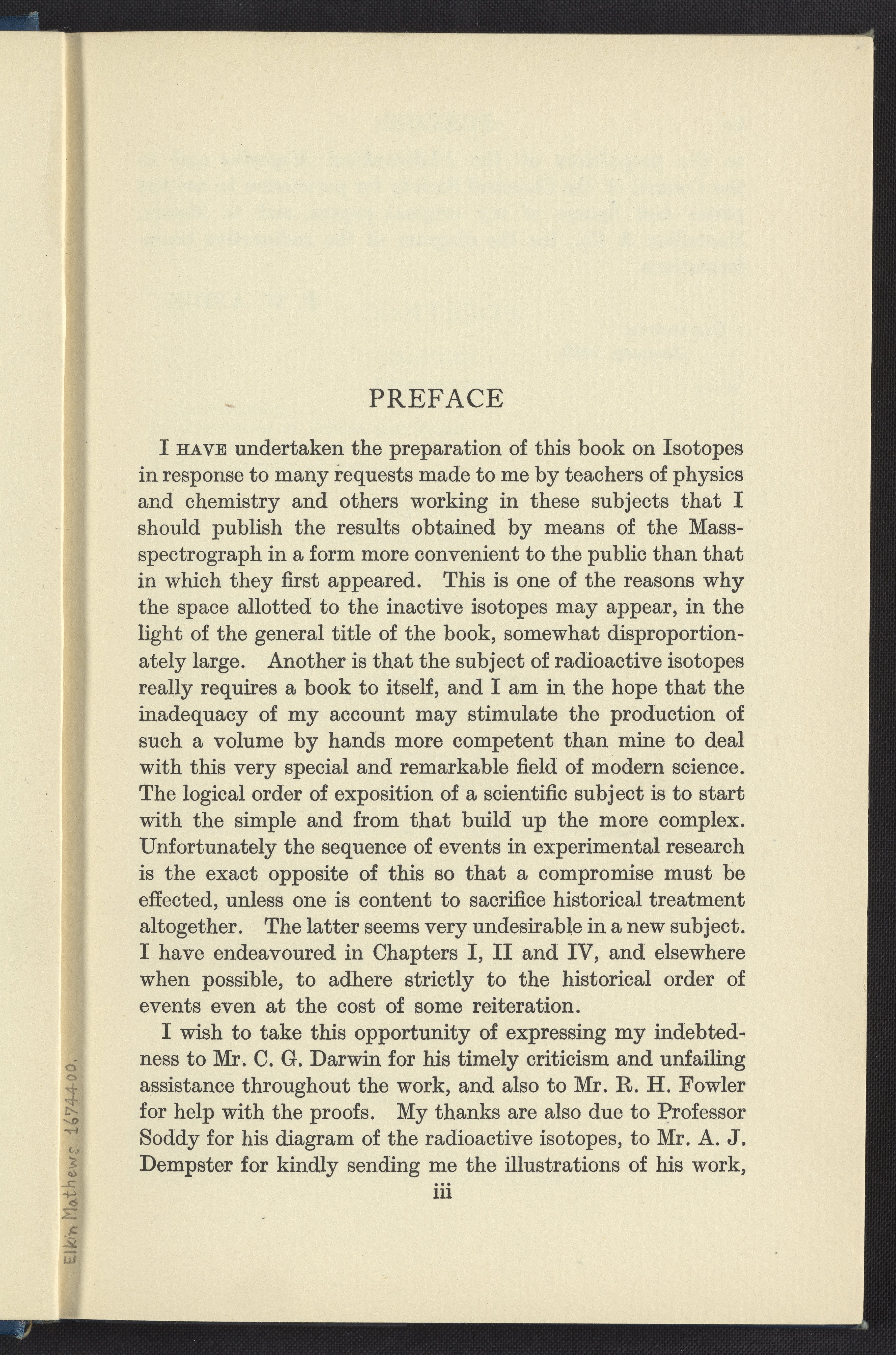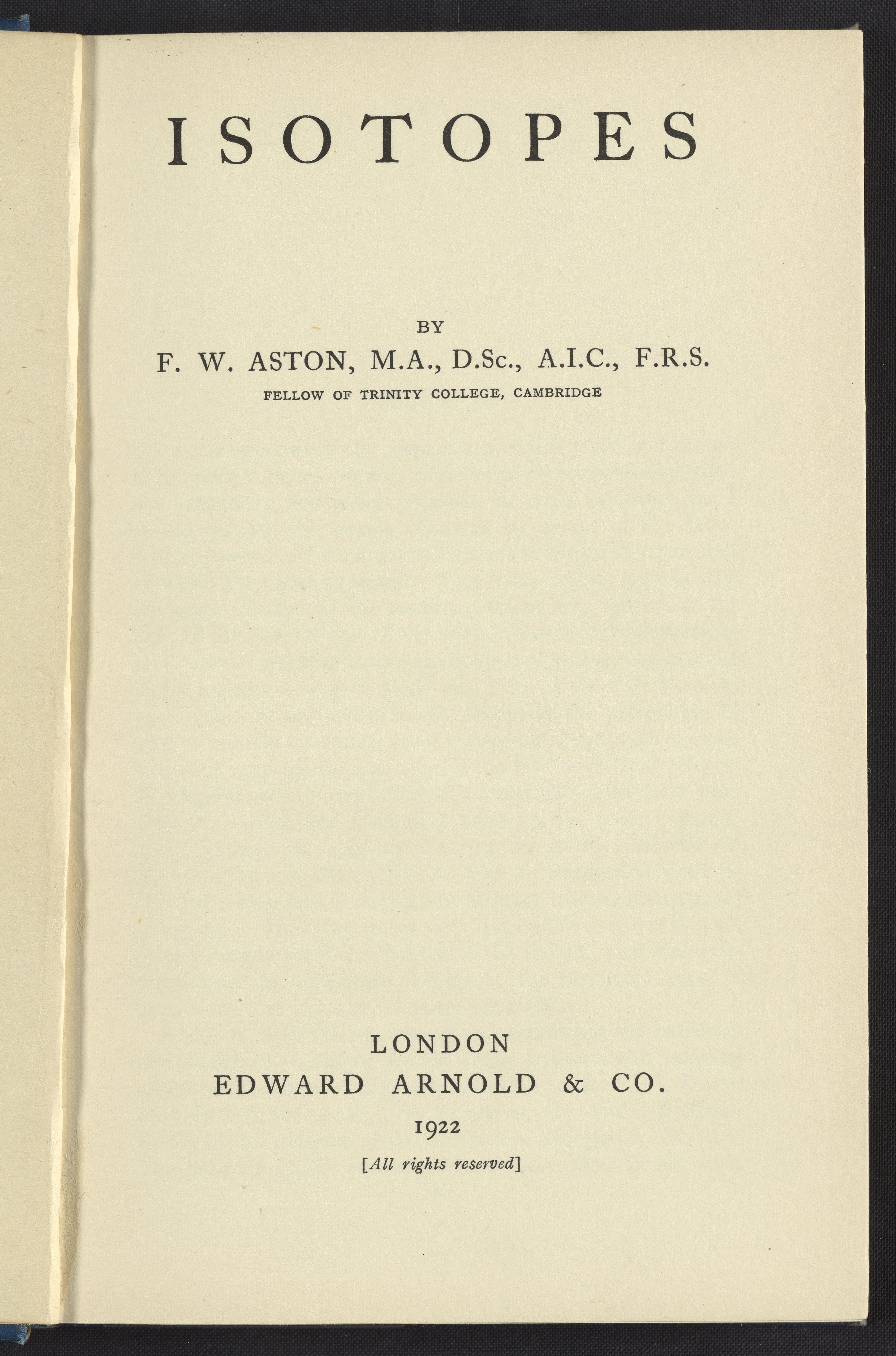 Aston, Francis William. “Isotopes.” London, England: Edward Arnold (Publishers), 1922. https://digital.sciencehistory.org/works/7p88ch821.