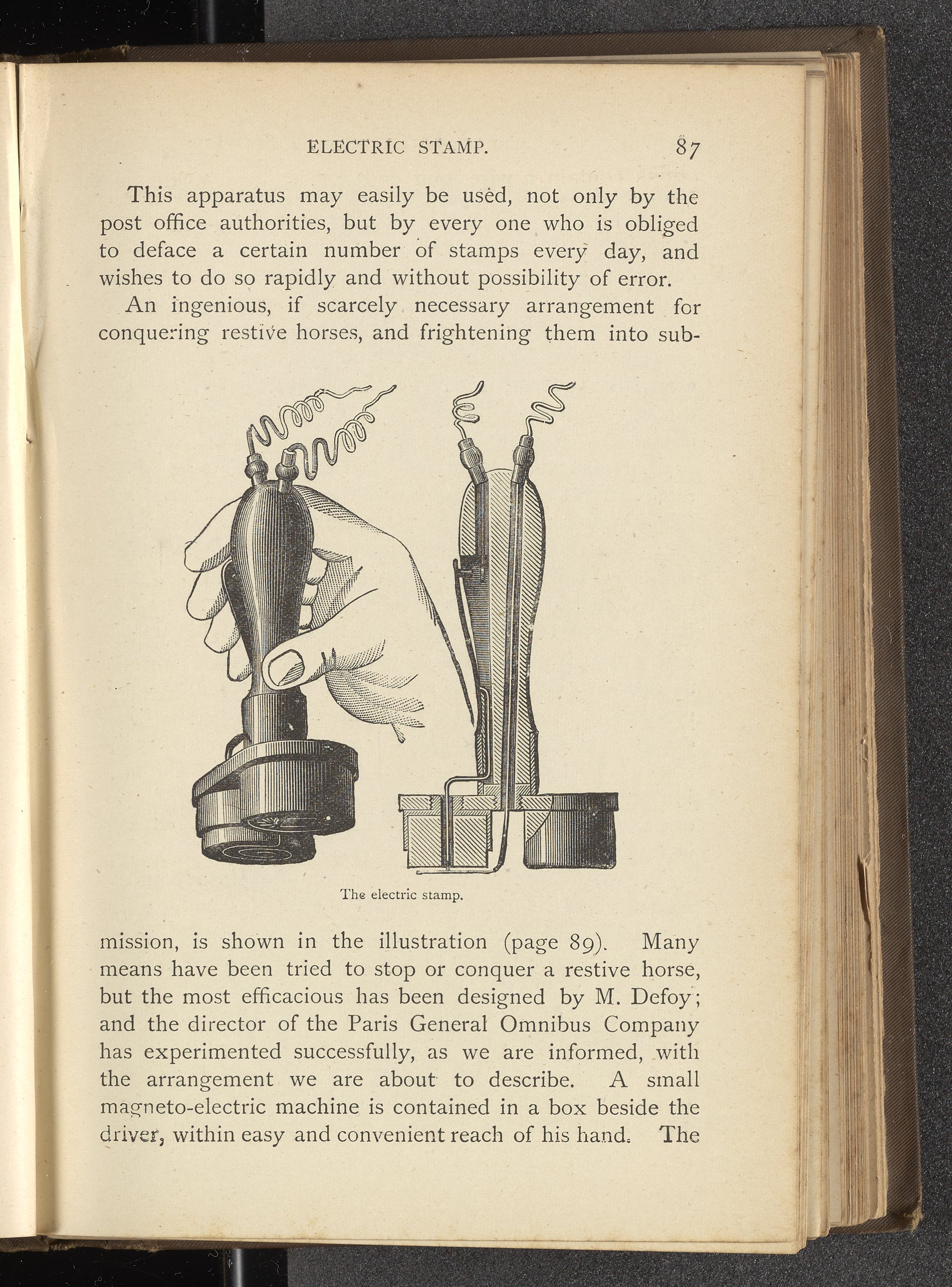“The Electric Stamp.” Wonders of Electricity and the Elements, Being a Popular Account of Modern Electrical and Magnetic Discoveries, Magnetism and Electric Machines, the Electric Telegraph and the Electric Light, and the Metal Bases, Salt, and Acids. London, England: Lock Ward, 1870–1900. https://digital.sciencehistory.org/works/7q3mq98.