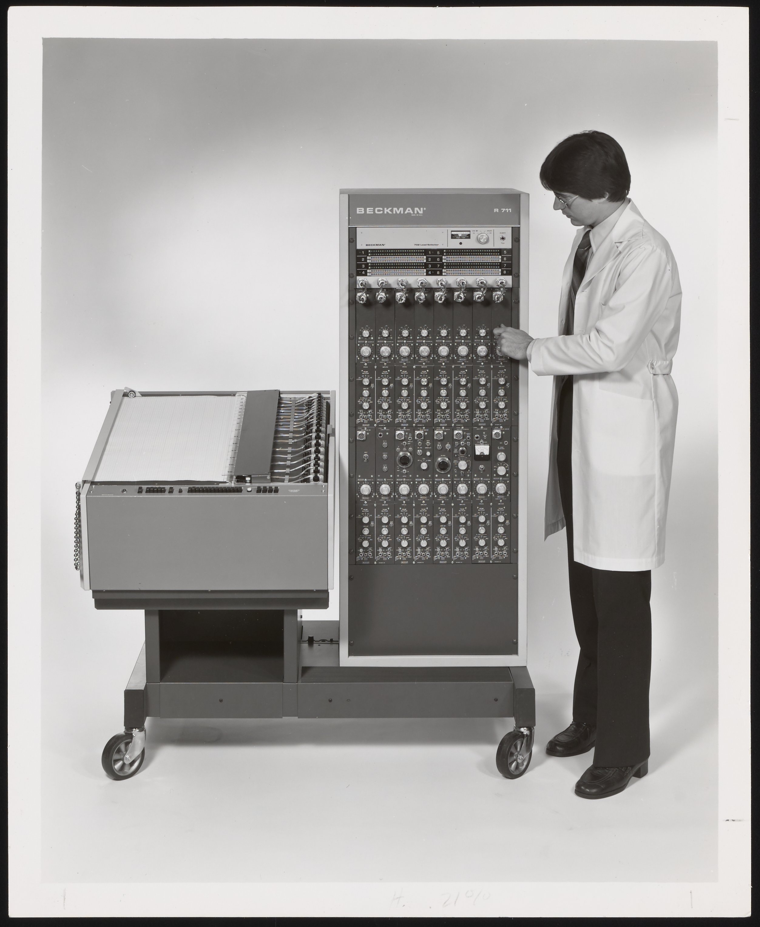 Man with Beckman Model R-711 Dynograph Recorder