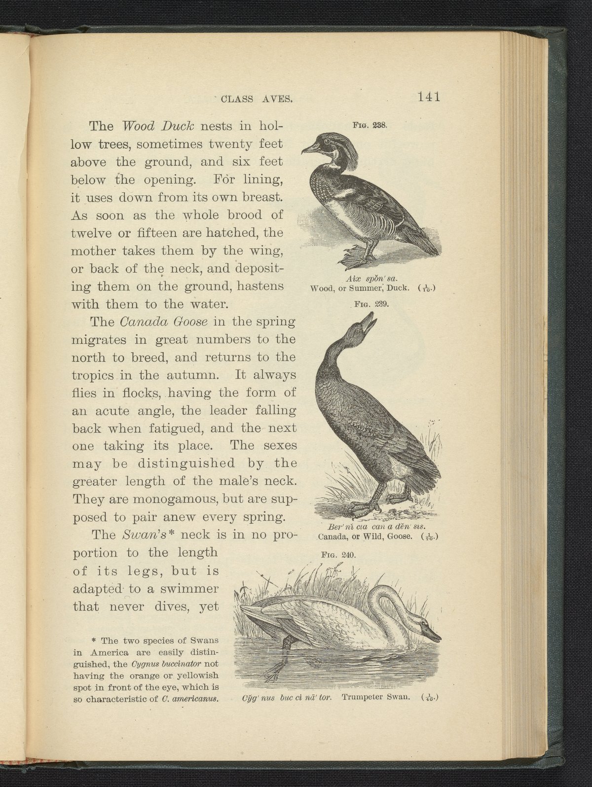 Figure 238. Wood, or Summer, Duck. Figure 239. Canada, or Wild, Goose. Figure 240. Trumpeter Swan