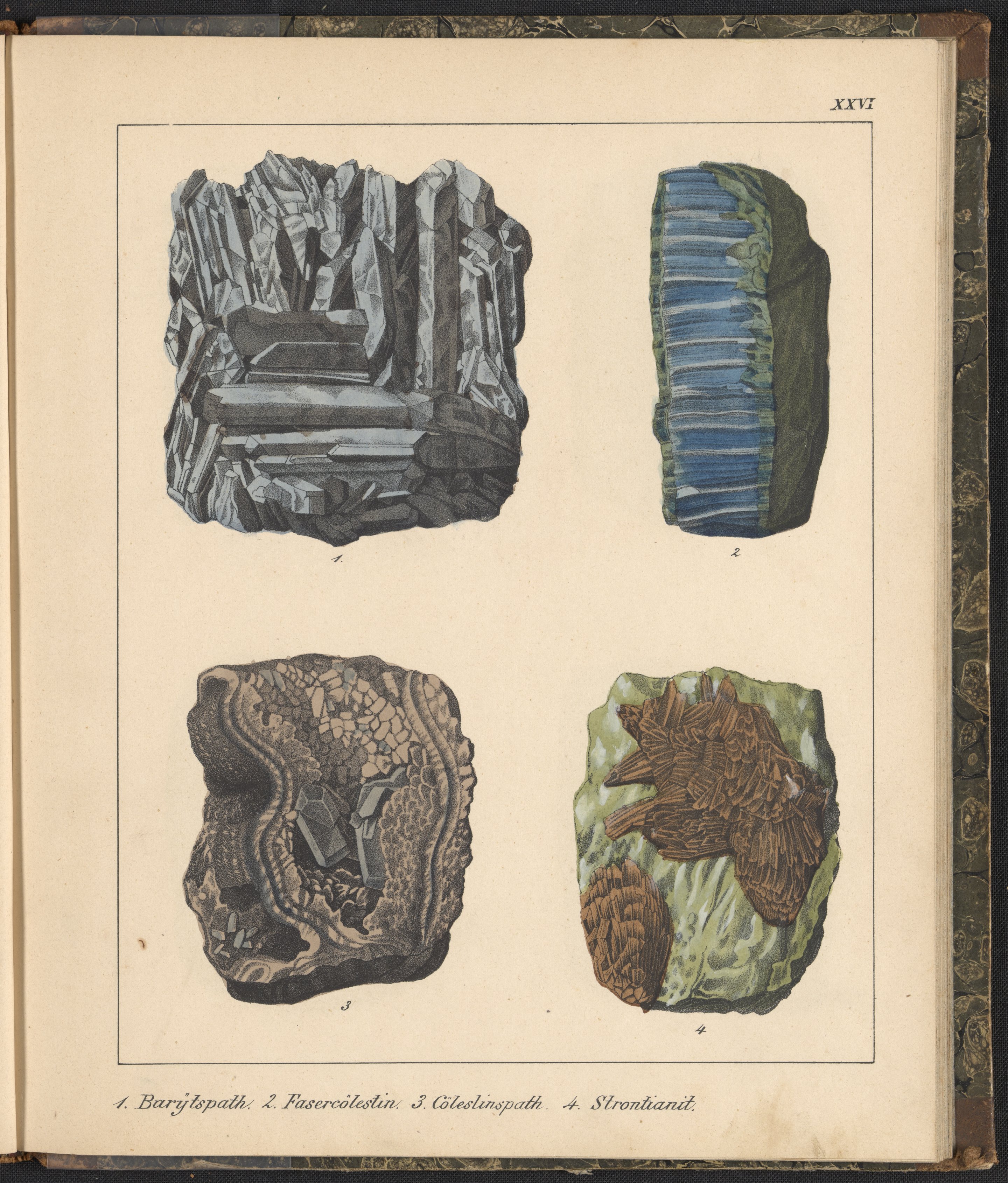 Schmidt, F.A., active 19th century. Mineralienbuch. Stuttgart, Germany: Krais & Hoffmann, 1855. https://digital.sciencehistory.org/works/7tvggnr.