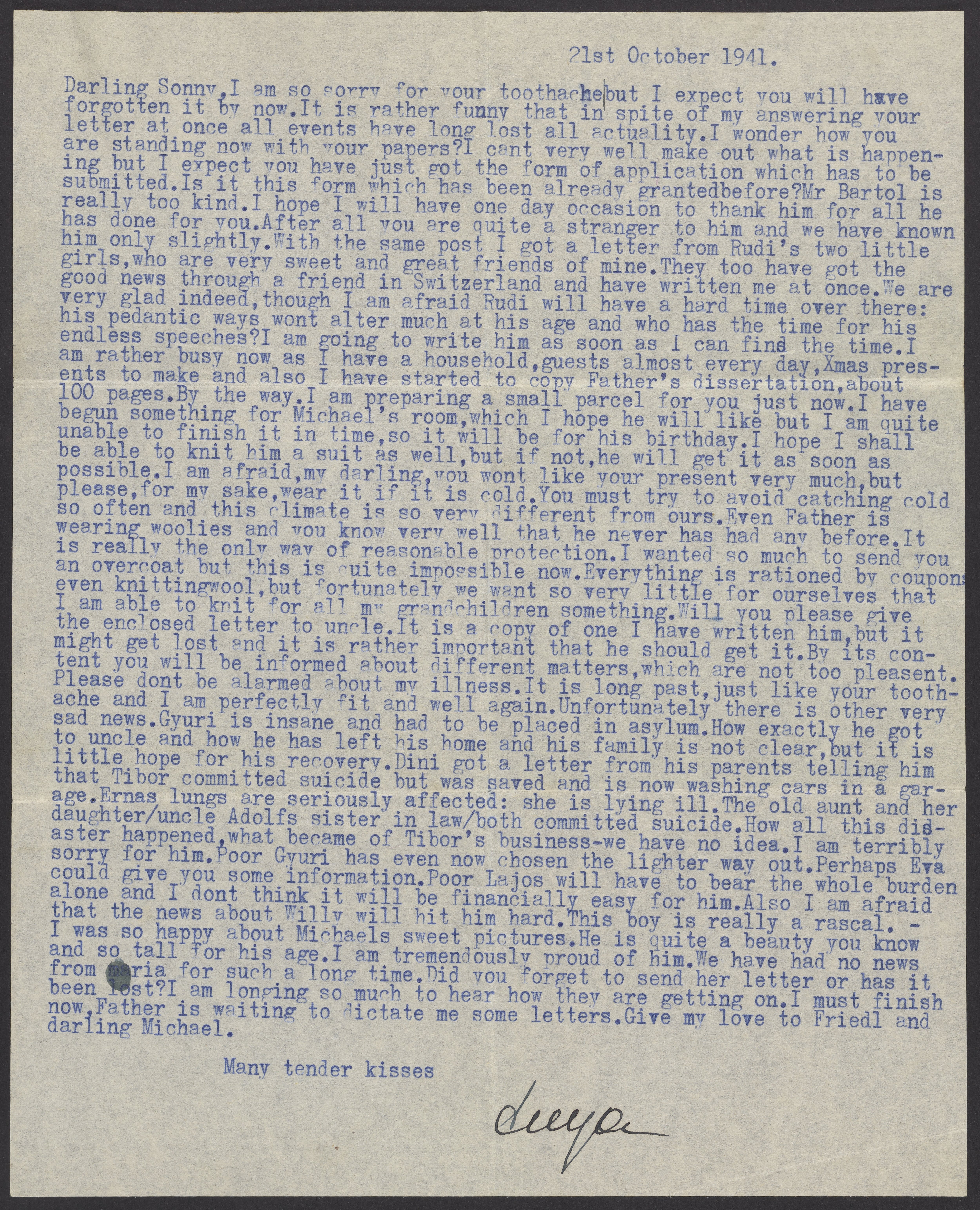 Letter to Gabor B. Levy from Margaret Levy, October 21, 1941