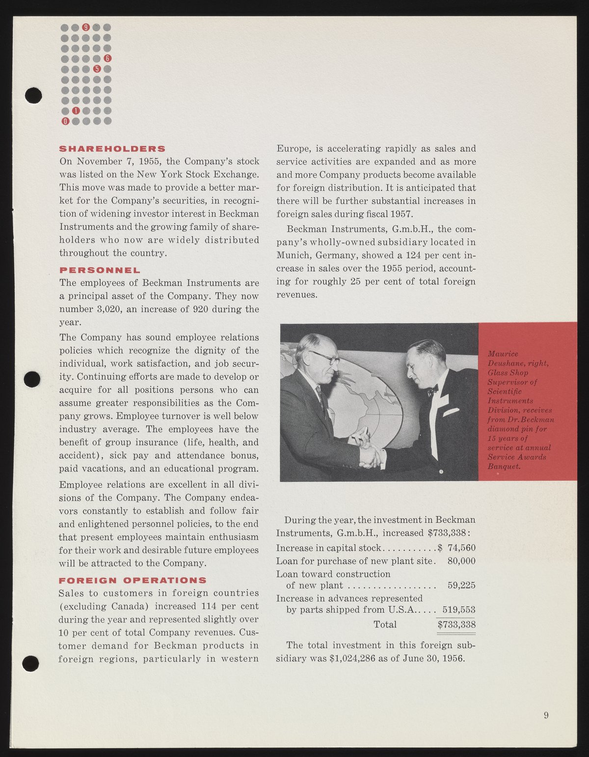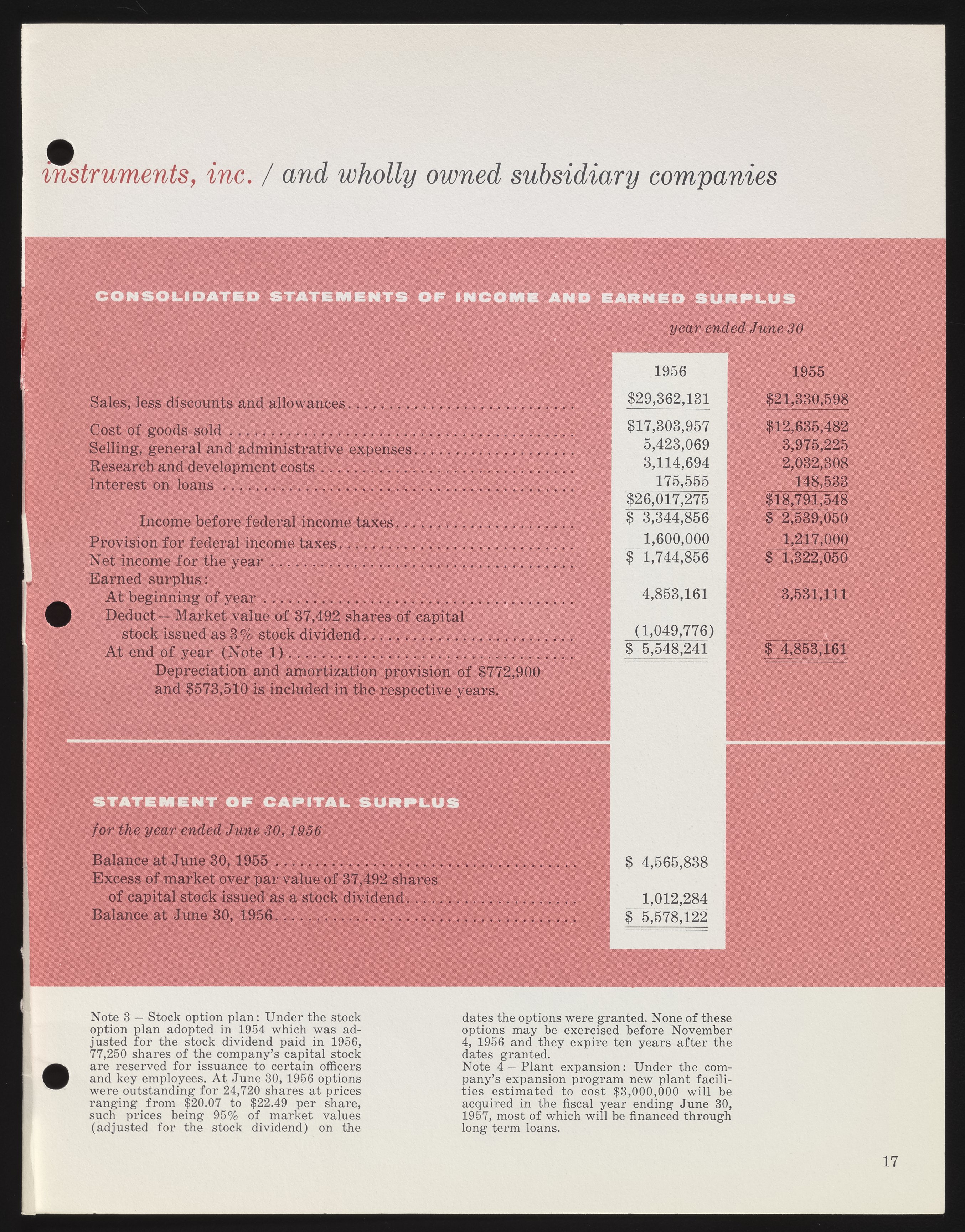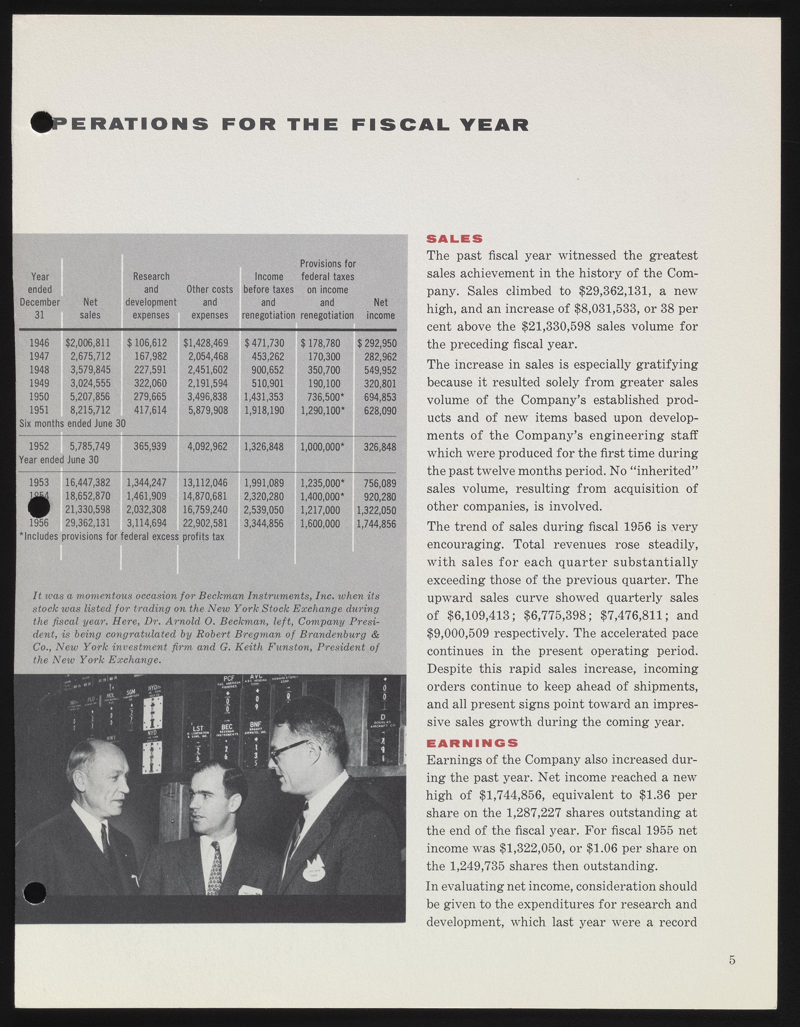 Small JPG1200 x 1547px — 305 KBFull-sized JPG2708 x 3490px — 1.5 MBOriginal fileTIFF — 2708 x 3490px — 27.1 MBThe 1956 annual report covers a year of significant expansion. In November 1955, the company's stock was listed on the New York Stock Exchange. The number of employees grew by nearly fifty percent, to 3,020, and William Shockley joined the company. Land was purchased for new facilities in Newport Beach, California, and Munich, Germany.