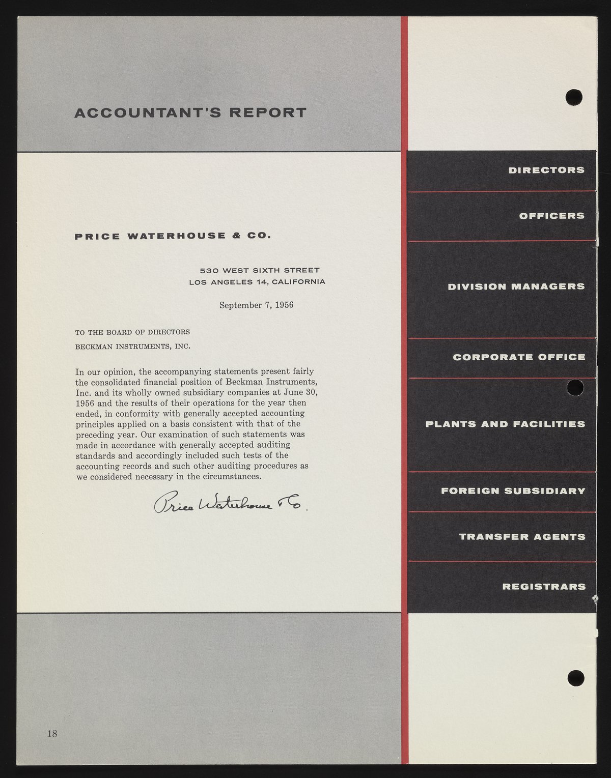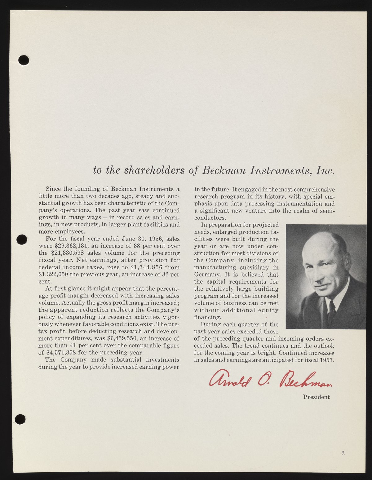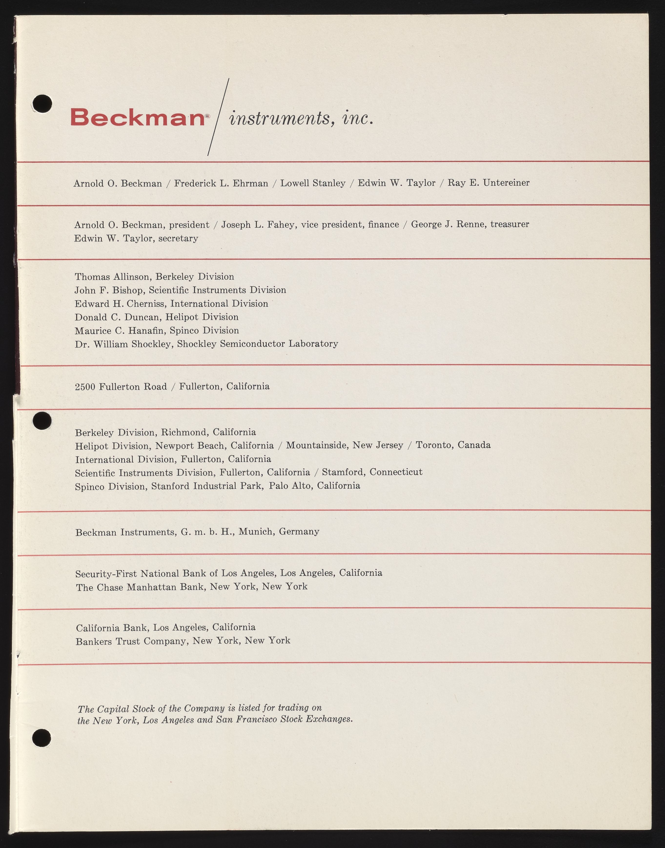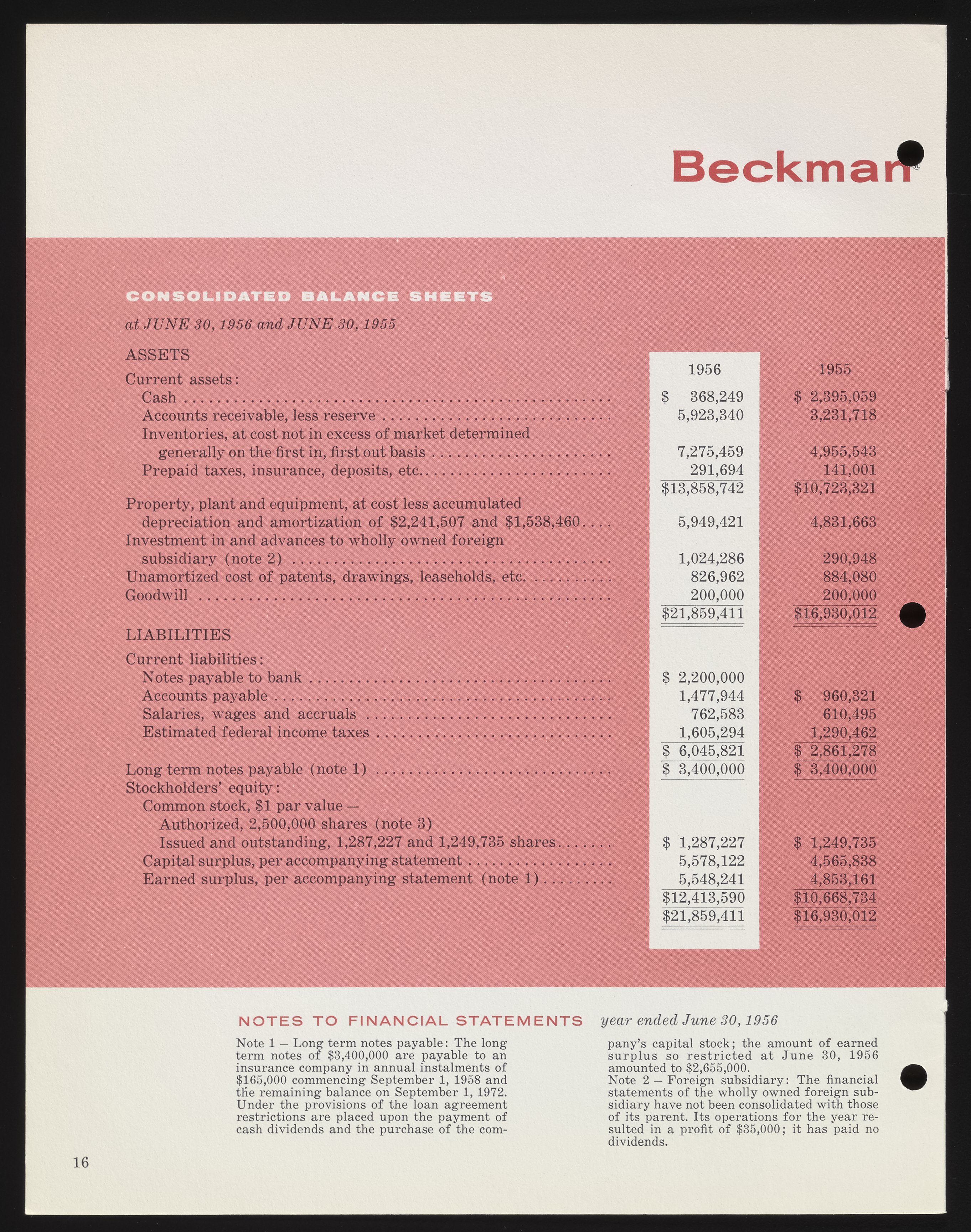 Beckman Instruments, Inc. “Beckman Instruments, Inc. Annual Report 1956,” 1956. Beckman Historical Collection, Box 20, Folder 24. Science History Institute. Philadelphia. https://digital.sciencehistory.org/works/8049g5478.