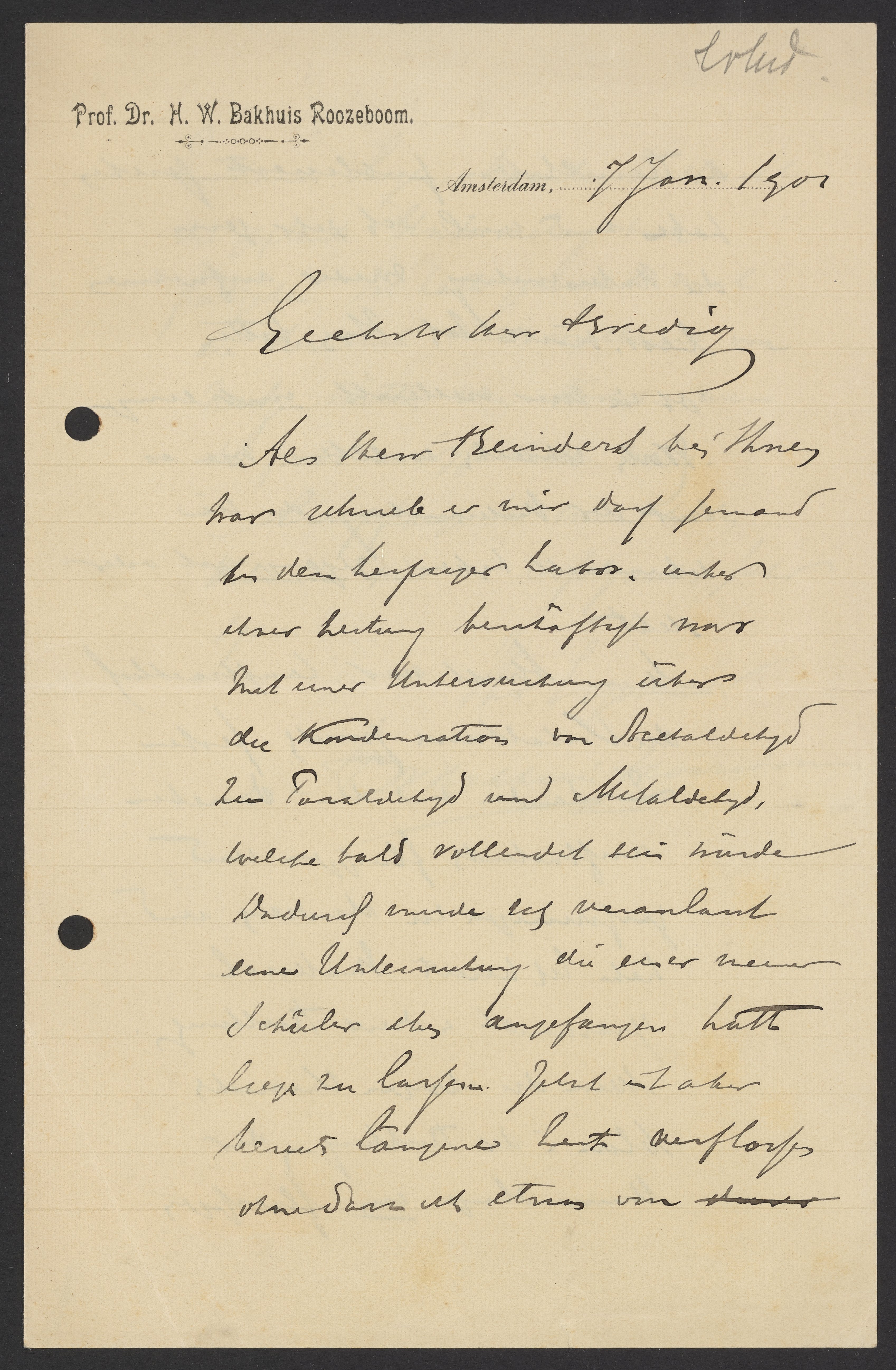Letter from Hendrik Willem Bakhuis Roozeboom to Georg Bredig, January 1901