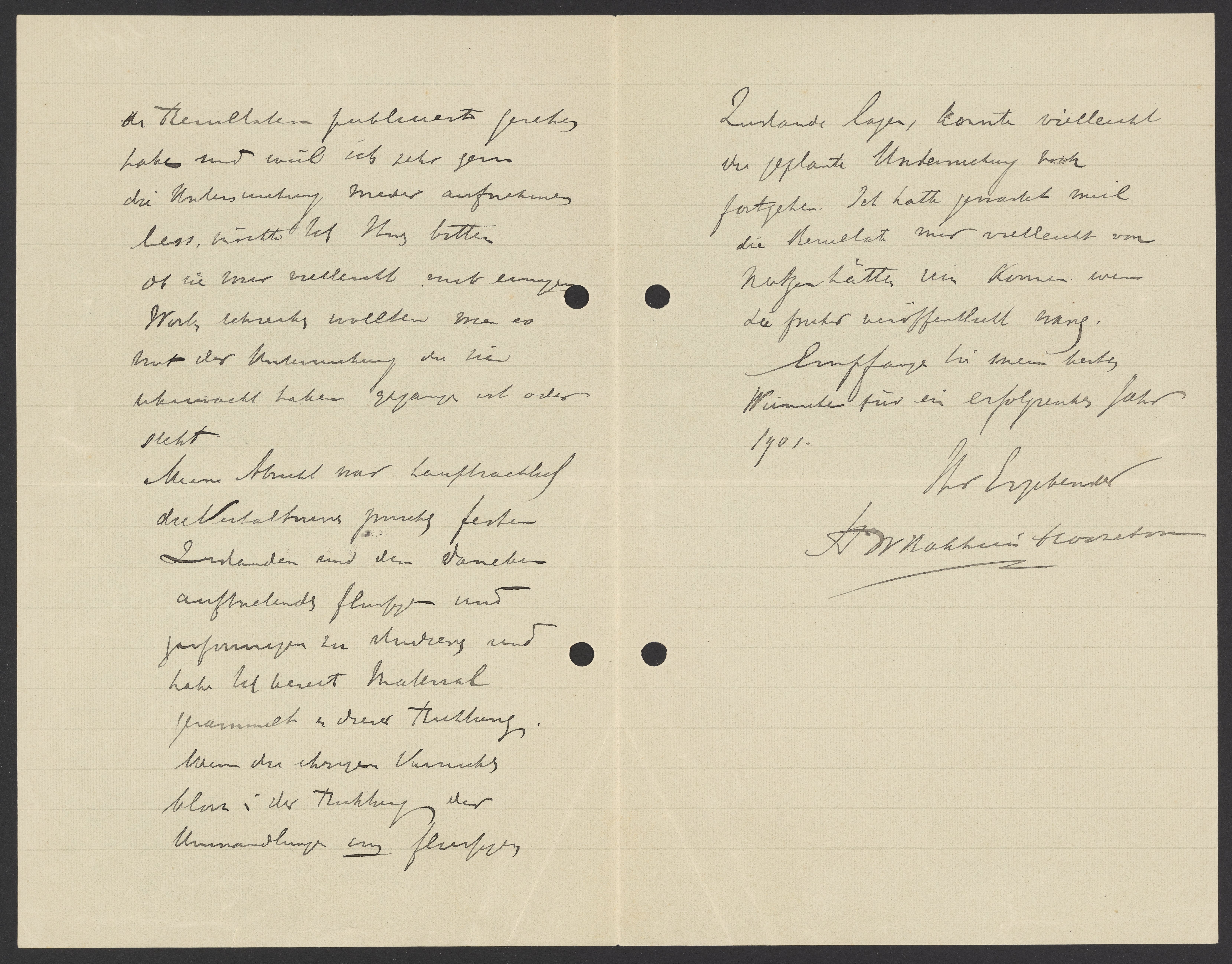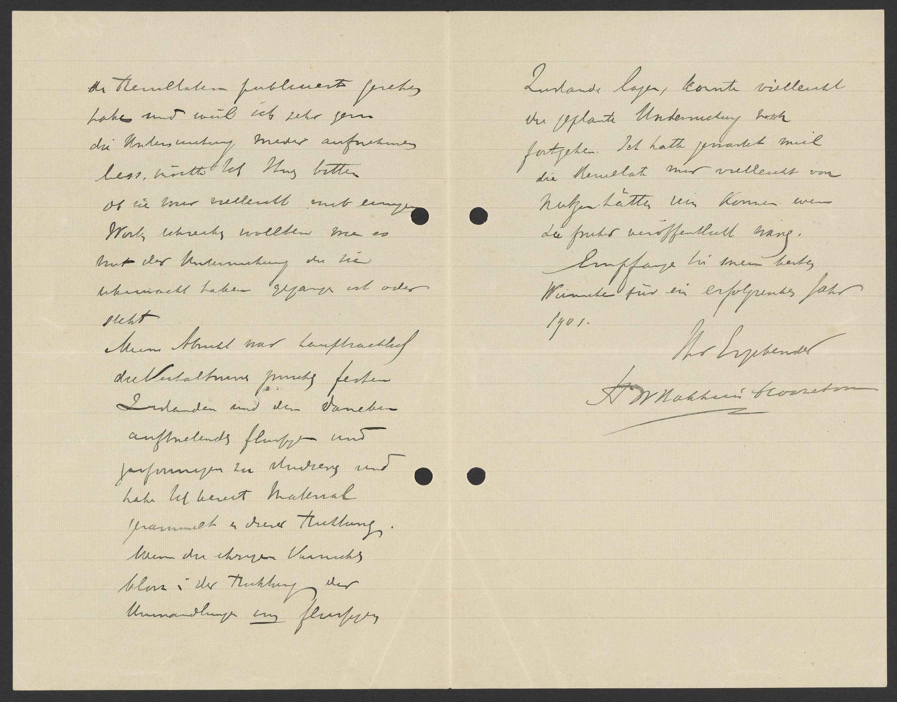 Bakhuis Roozeboom, Hendrik Willem. “Letter from Hendrik Willem Bakhuis Roozeboom to Georg Bredig, January 1901,” January 7, 1901. Papers of Georg and Max Bredig, Box 2, Folder 43. Science History Institute. Philadelphia. https://digital.sciencehistory.org/works/855a9eg.
