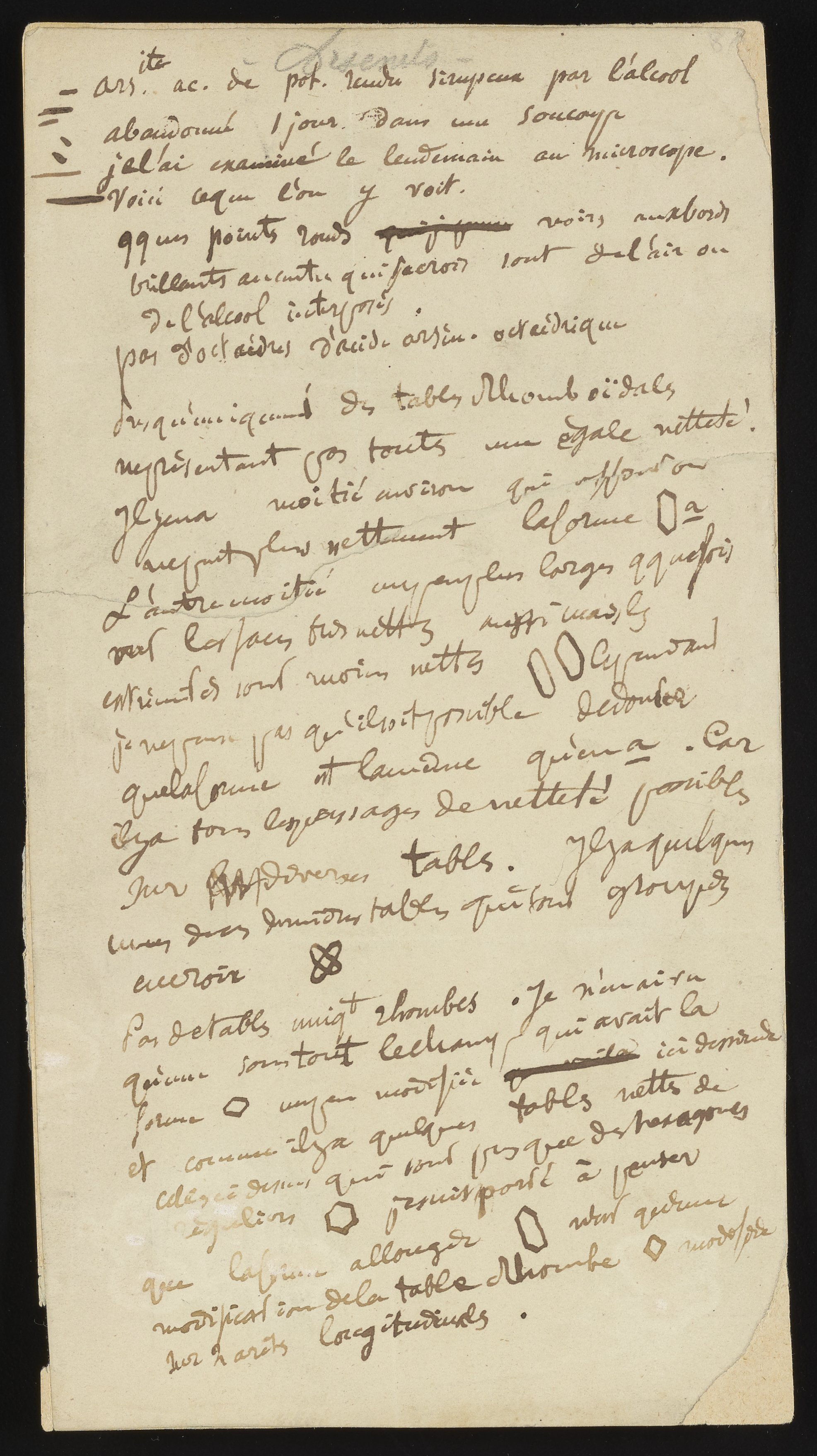Louis Pasteur lecture notes on crystal structure, tartaric acid, and arsenitesAfter 1849 – before 1895