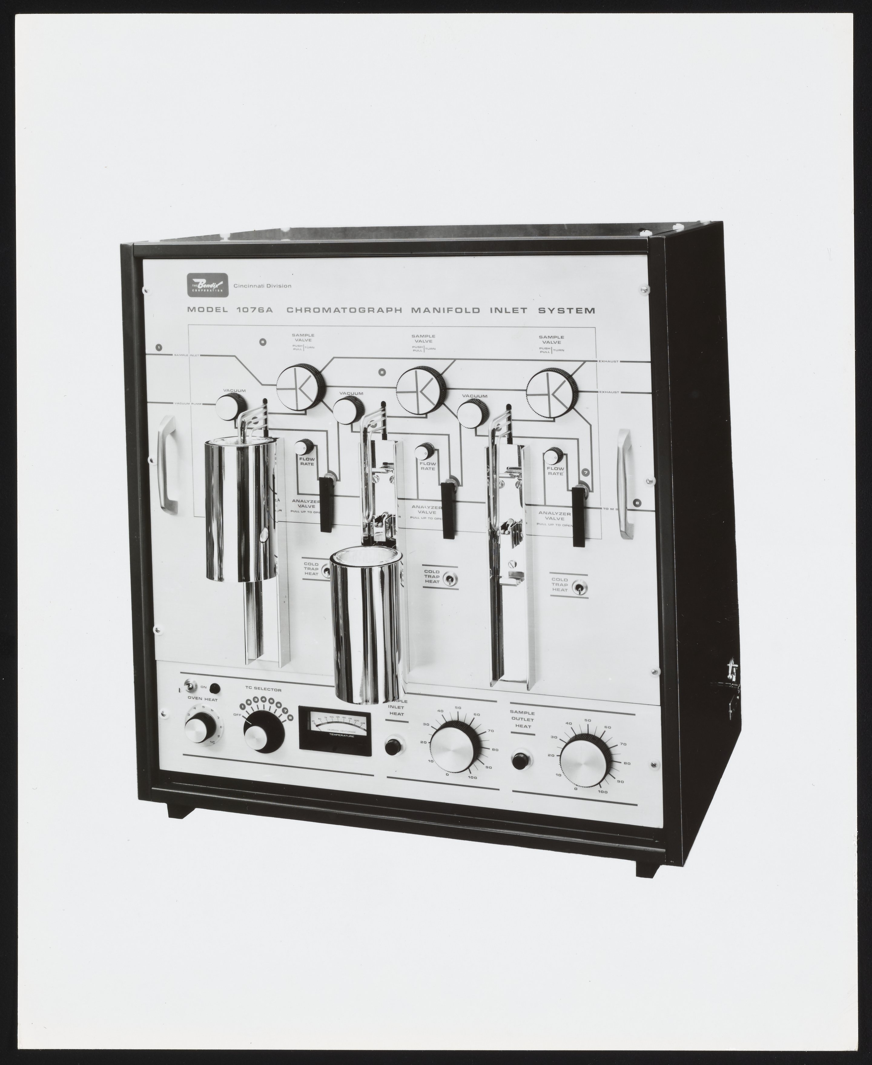 Bendix Corporation. “Bendix Model 1076A Chromatograph Manifold Inlet System,” 1970–1979. Photographs from the Bendix Time-of-Flight Mass Spectrometer Collection, Box 2. Science History Institute. Philadelphia. https://digital.sciencehistory.org/works/8623hz06b.