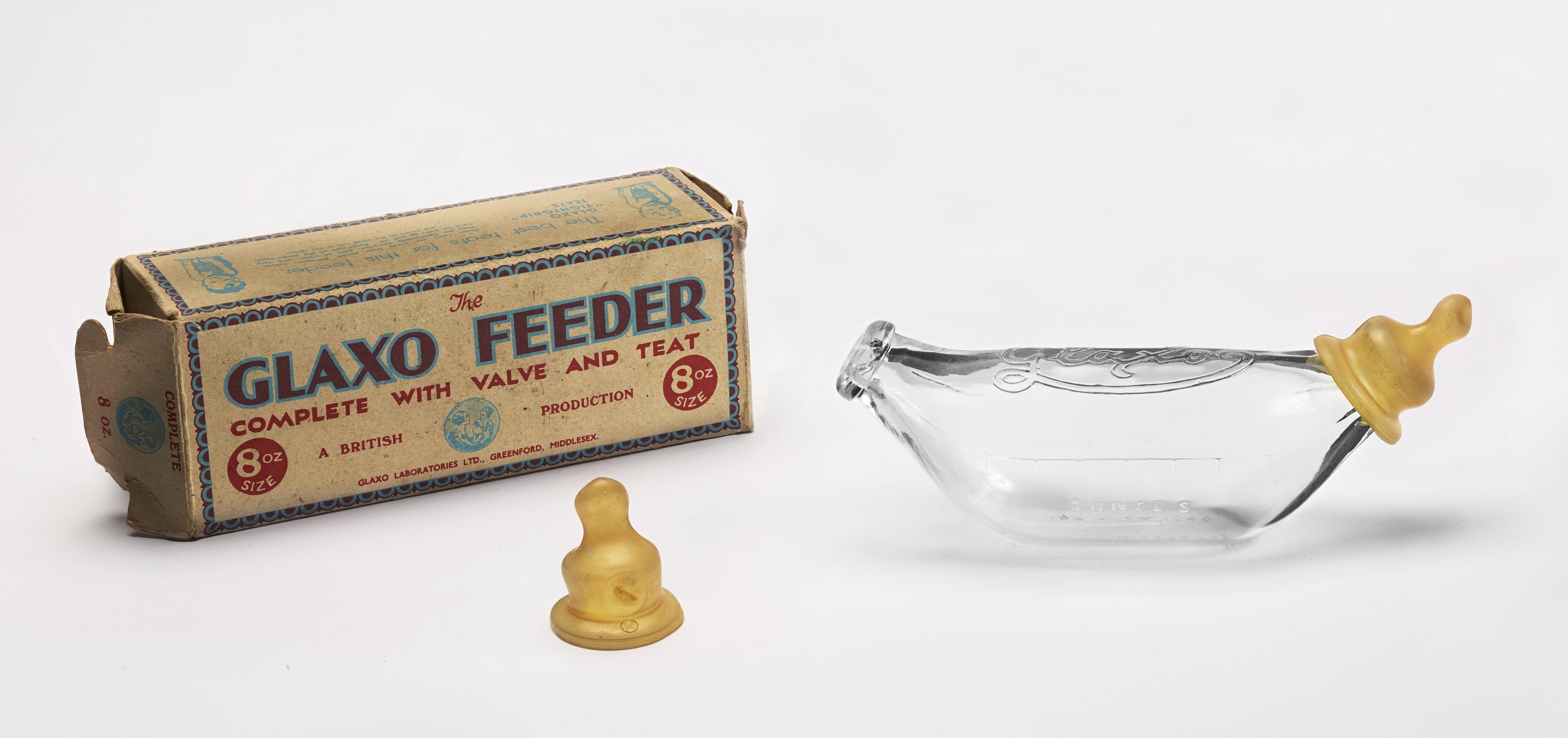 Science History Institute. The Glaxo Feeder 8oz Nursing Bottle in Original Box. Photograph, 2018. Science History Institute. Philadelphia. https://digital.sciencehistory.org/works/8623hz647.