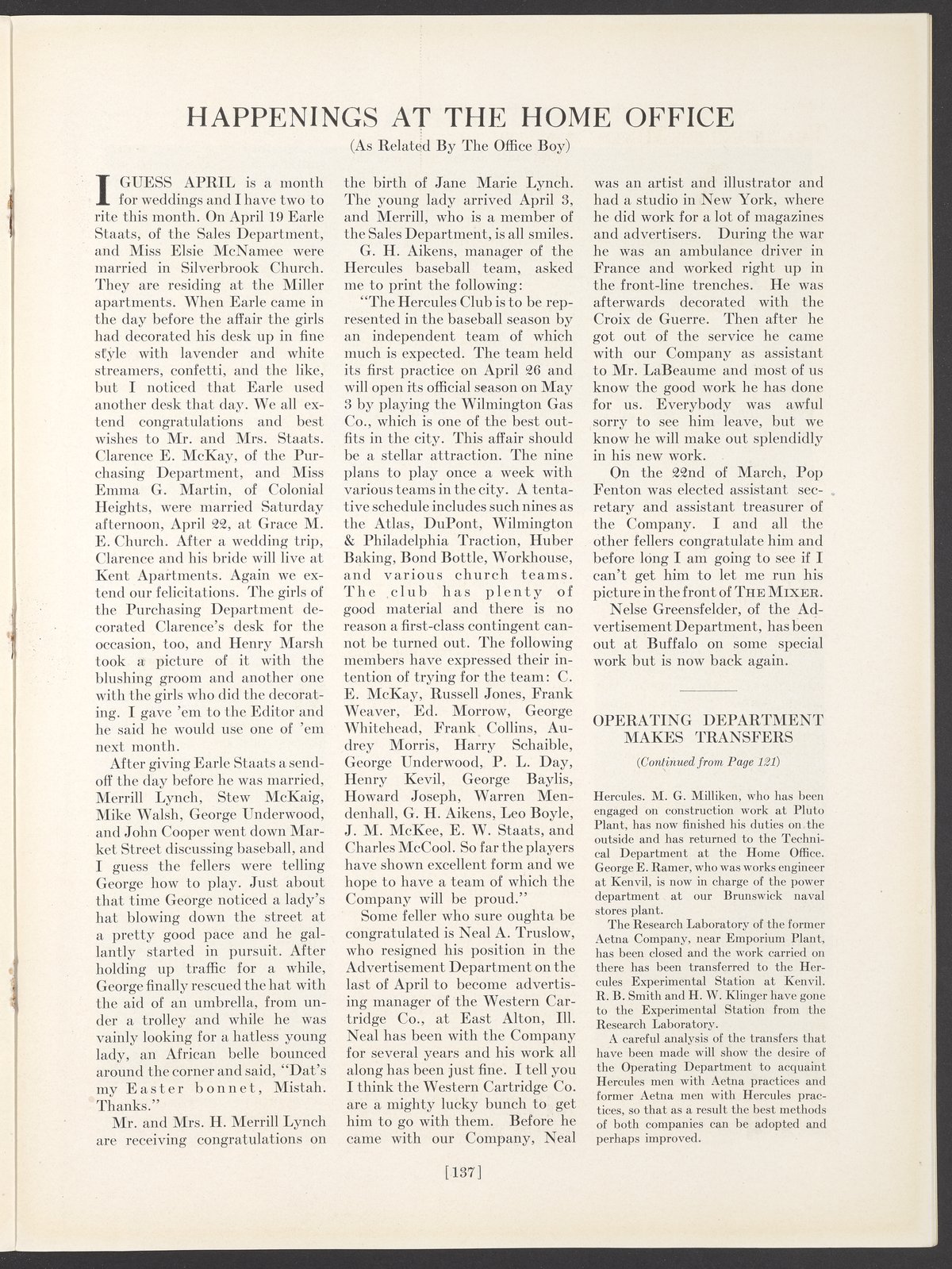 Small JPG1200 x 1590px — 391 KBLarge JPG2880 x 3816px — 2.8 MBFull-sized JPG3768 x 4992px — 4.6 MBOriginal fileTIFF — 3768 x 4992px — 53.9 MBMay 1922 issue of The Hercules Mixer, the Hercules Powder Company's in-house publication that provided both historical and technical information and also offered a glimpse of employees' day-to-day lives at the company.