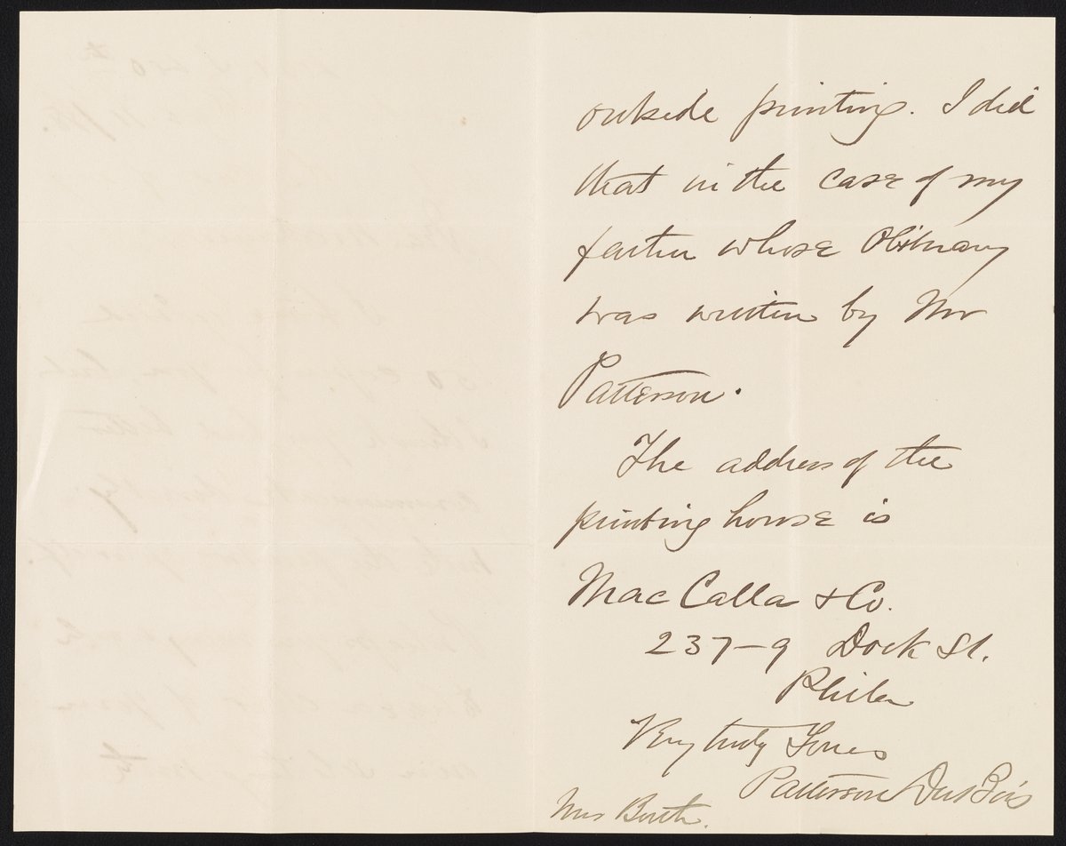 Letter from Patterson Du Bois to Margaret M. Booth, October 11, 1888