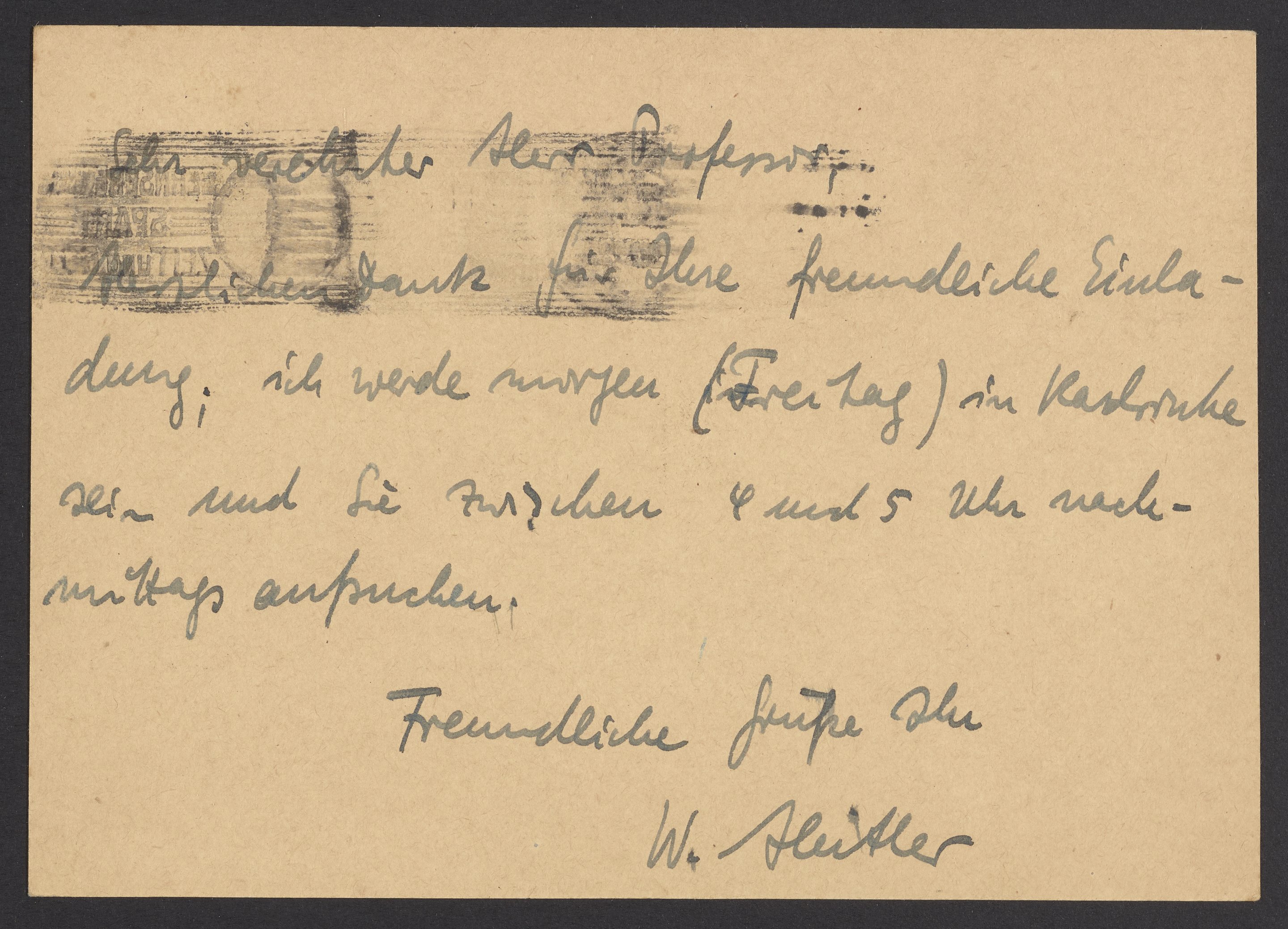 Herzlichen Dank für Ihre freundliche Einladung. Ich werde morgen (Freitag) in Karlsruhe sein und Sie zwischen 4 und 5 mittags ansprechen.