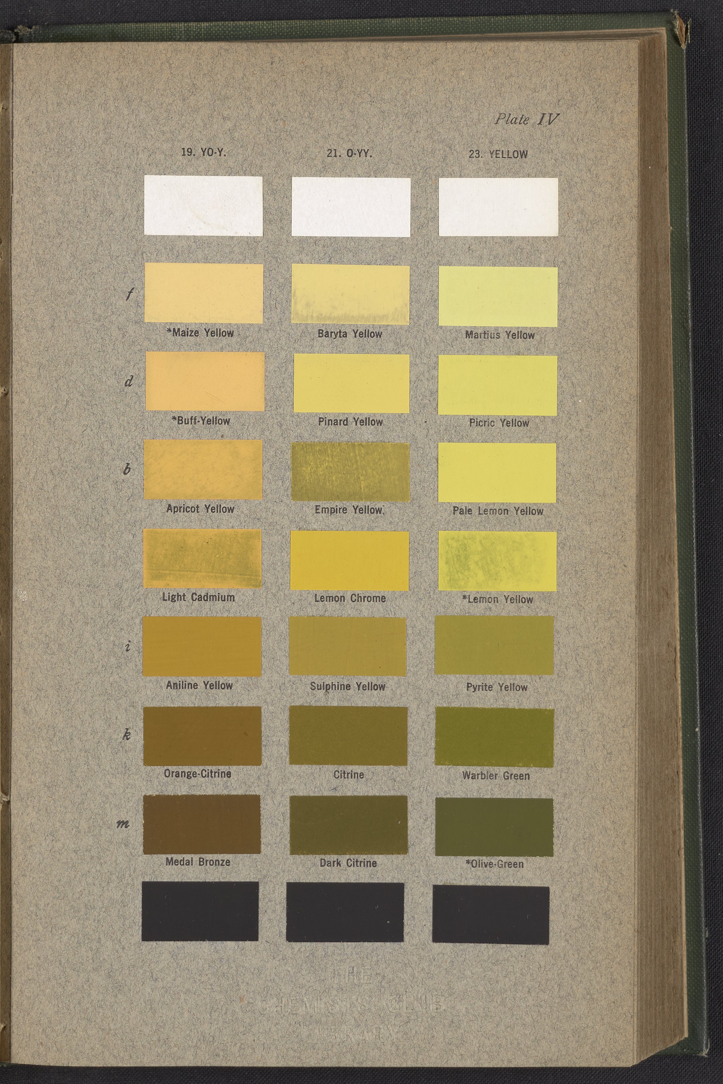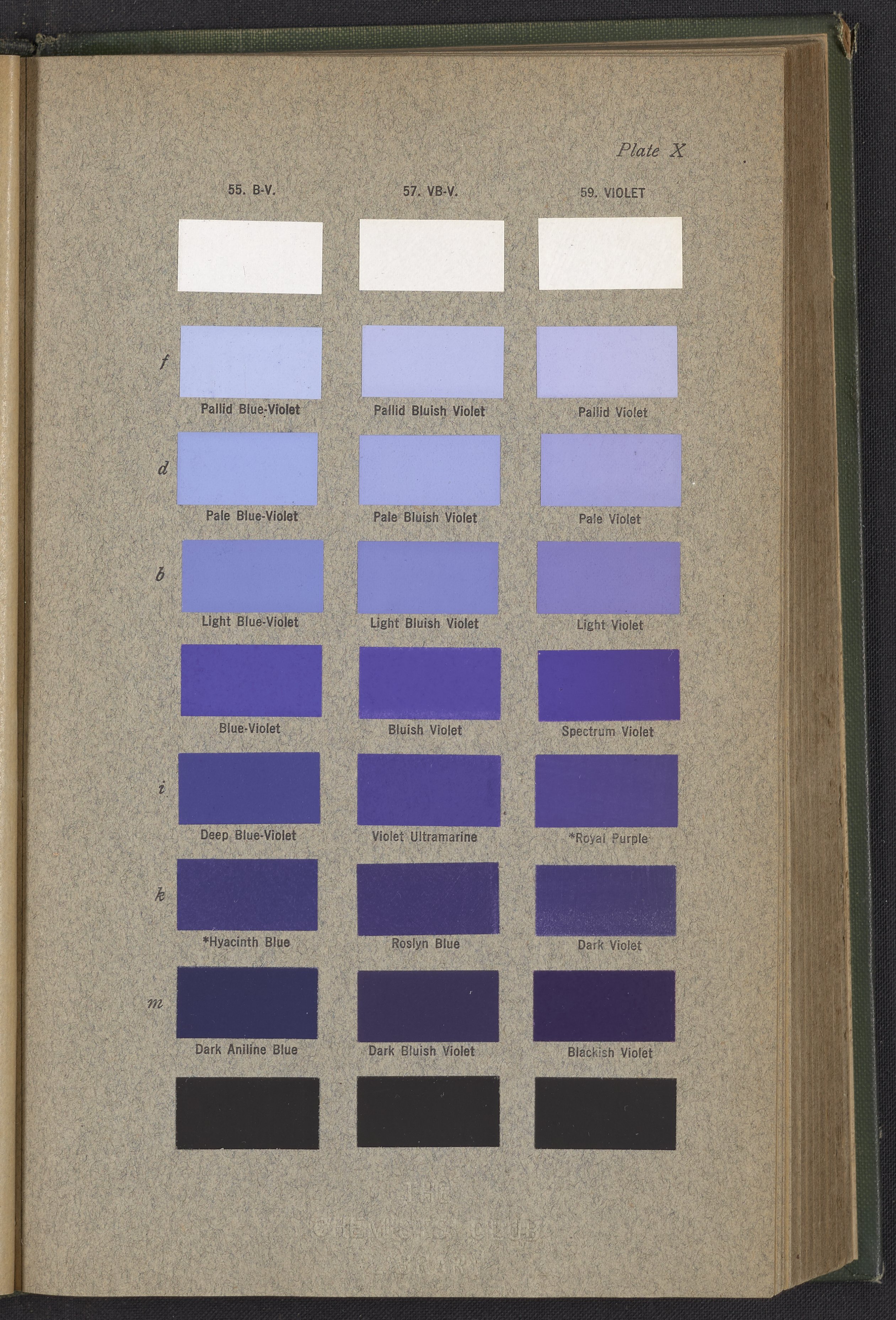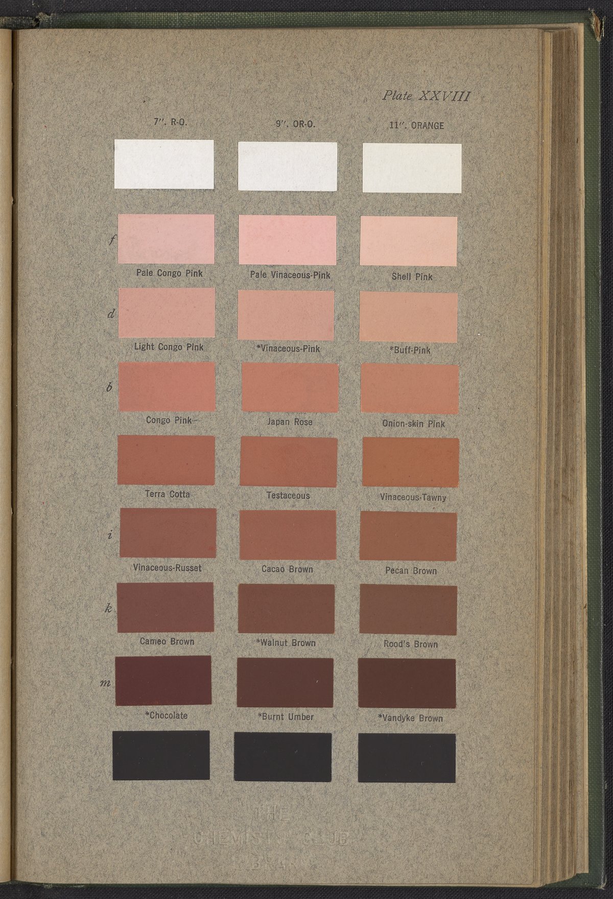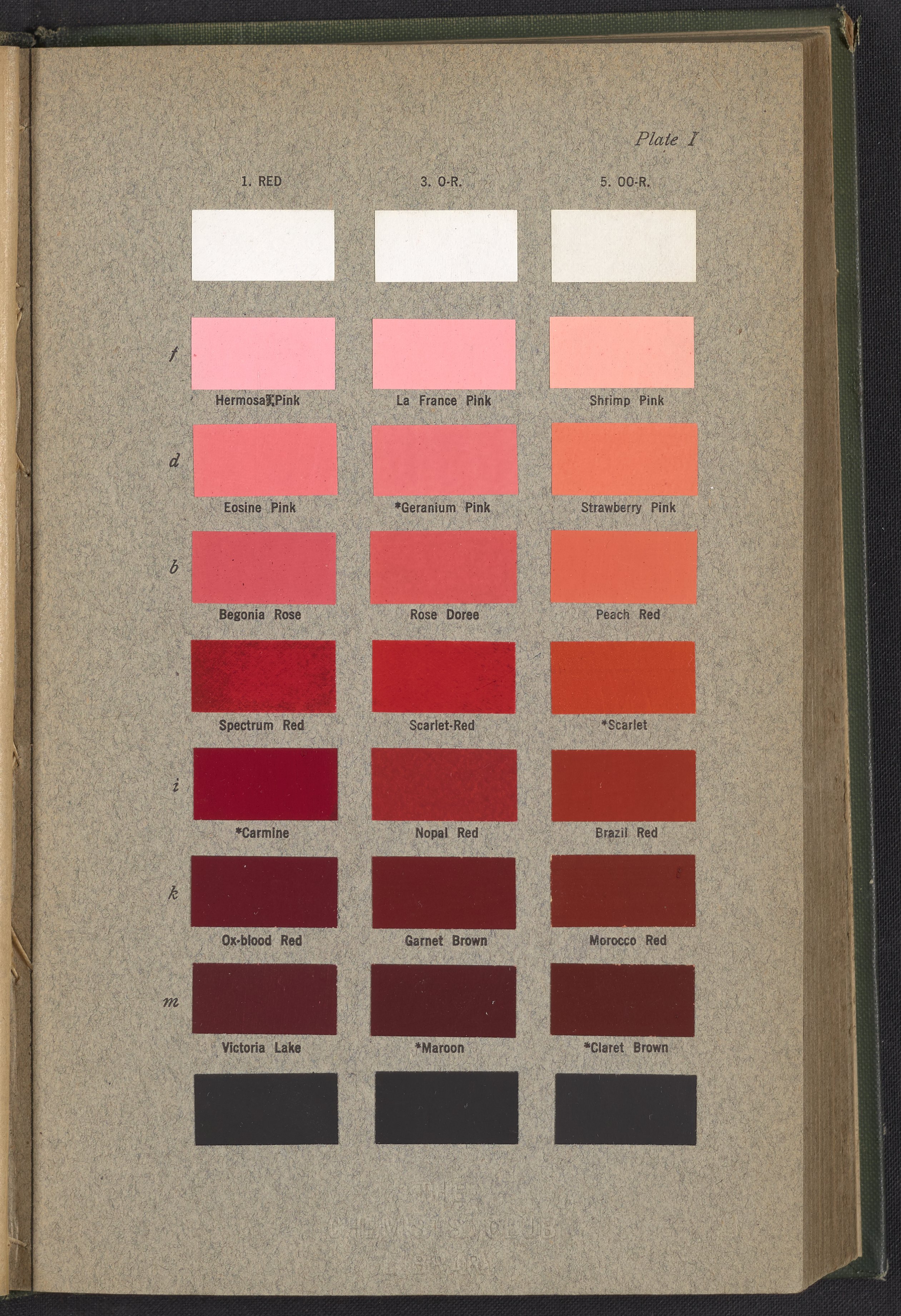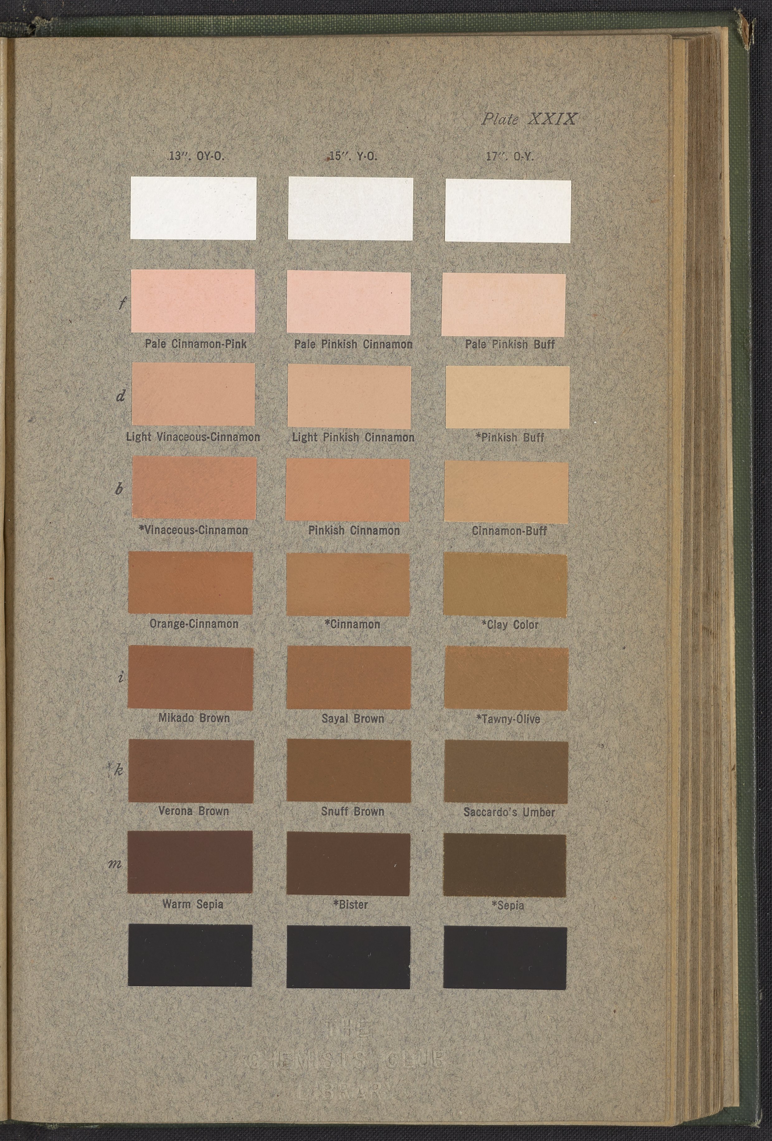Ridgway, Robert. “Color Standards and Nomenclature.” Washington (D.C.): Robert Ridgway, 1912. QC495 .R53 1912. Science History Institute. Philadelphia. https://digital.sciencehistory.org/works/8mibc4w.