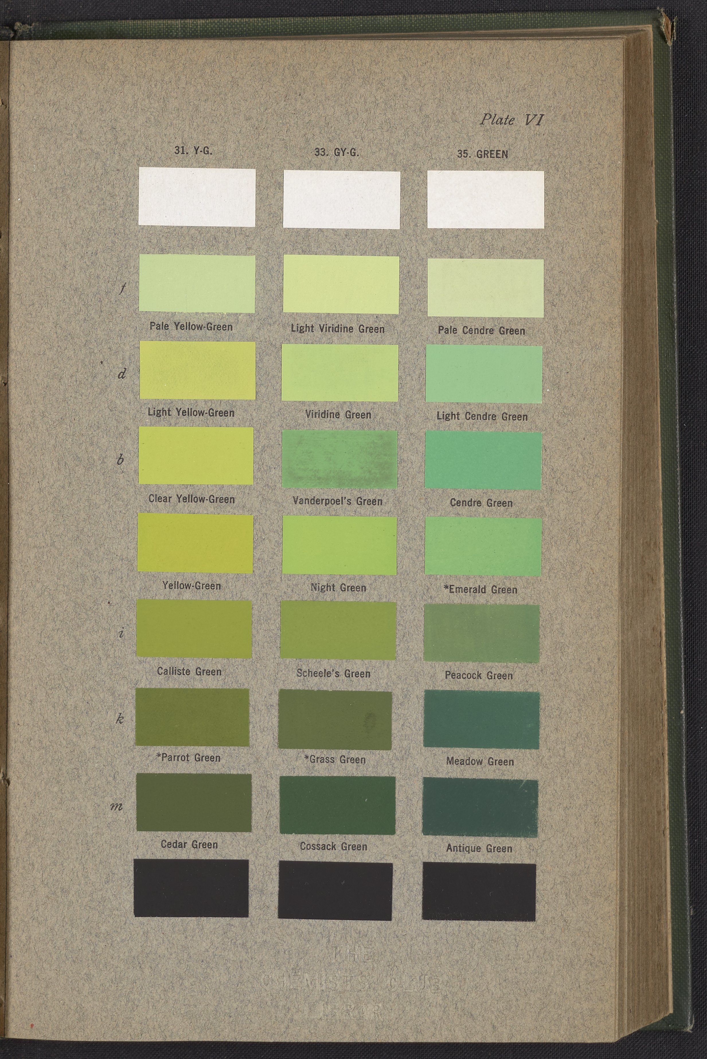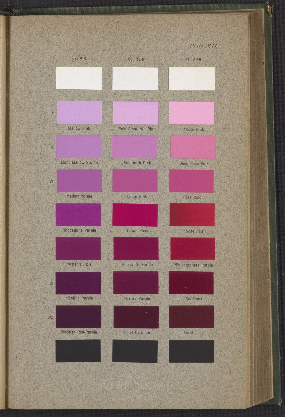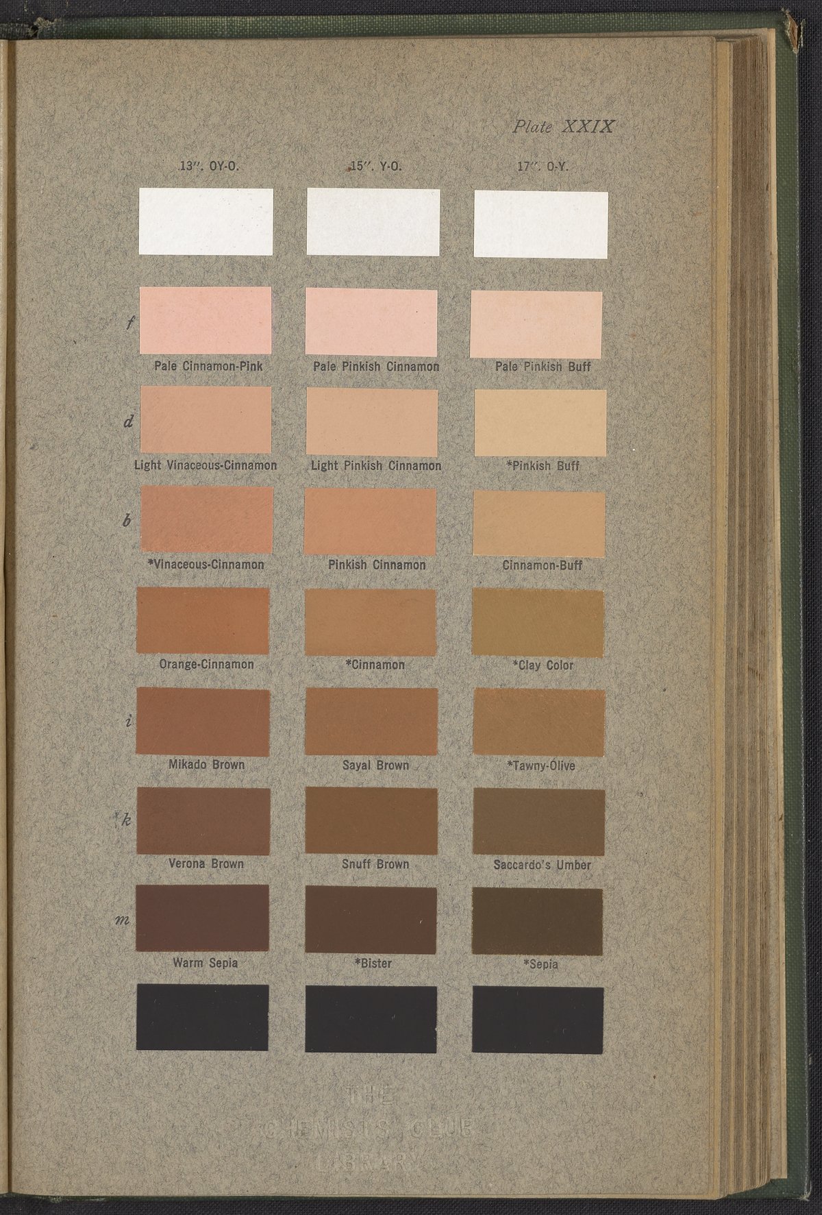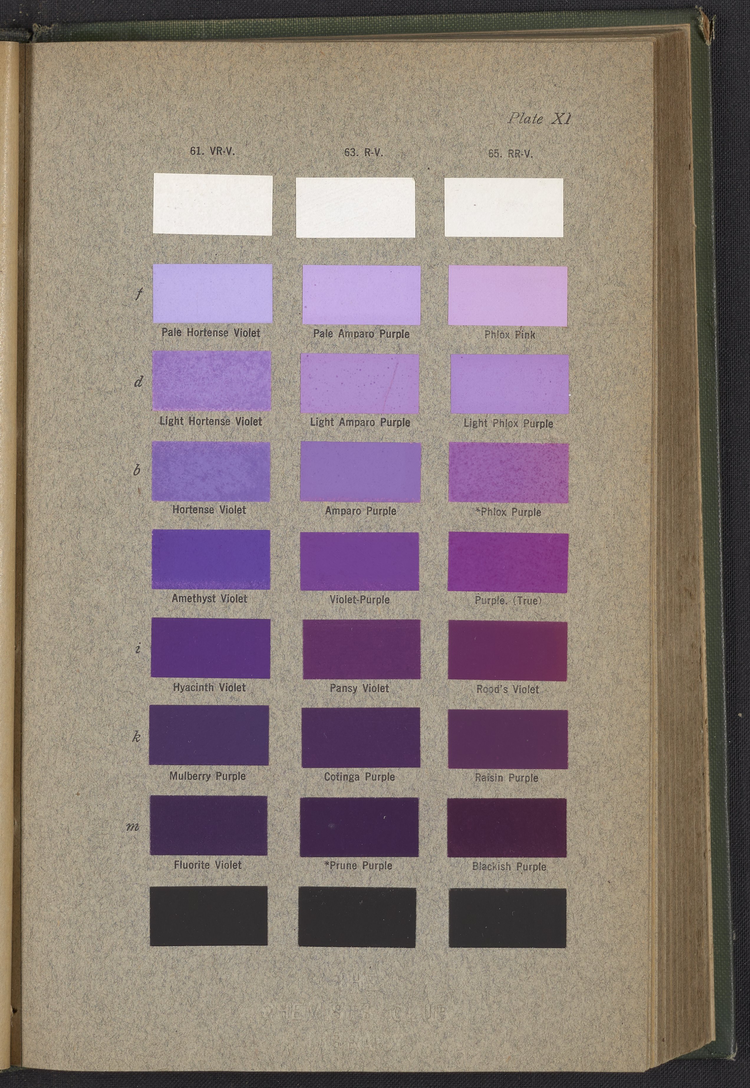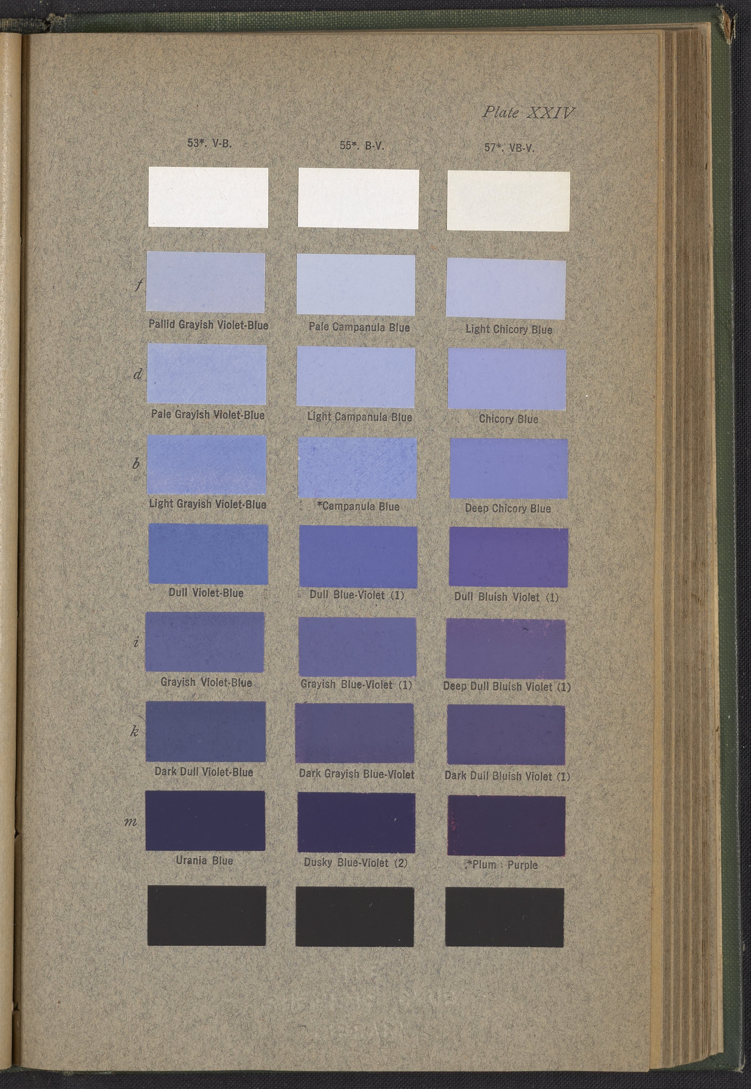 Ridgway, Robert. “Color Standards and Nomenclature.” Washington (D.C.): Robert Ridgway, 1912. QC495 .R53 1912. Science History Institute. Philadelphia. https://digital.sciencehistory.org/works/8mibc4w.