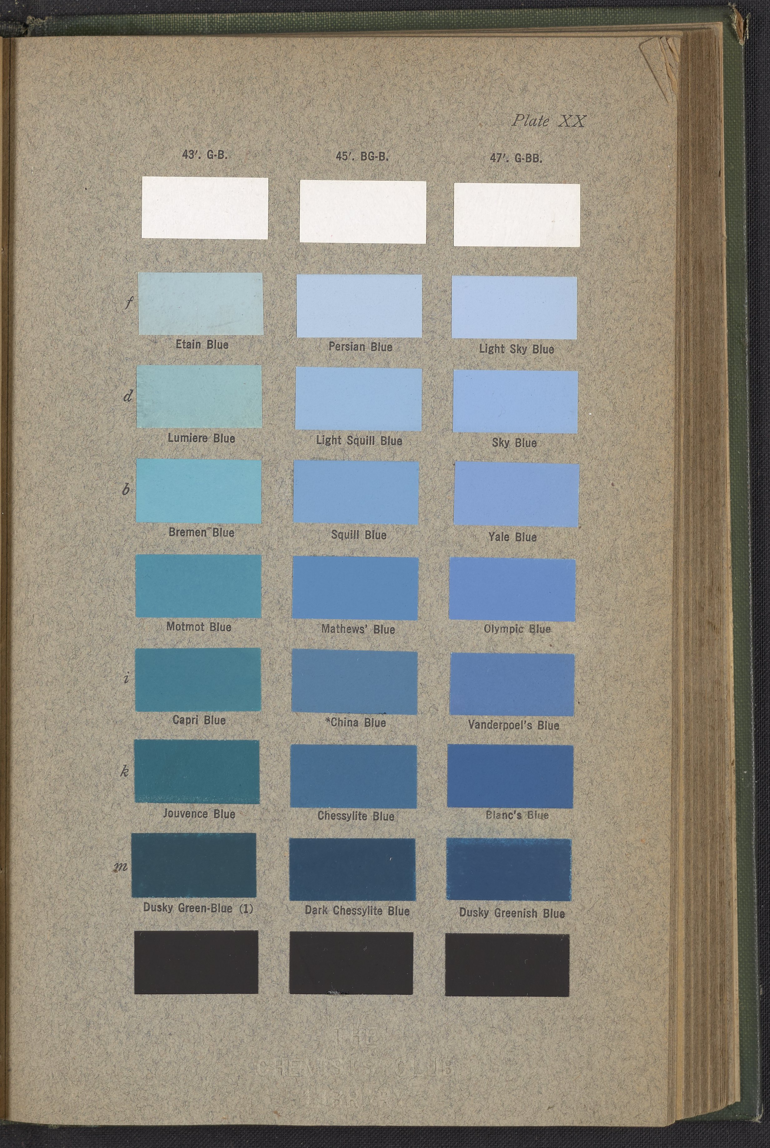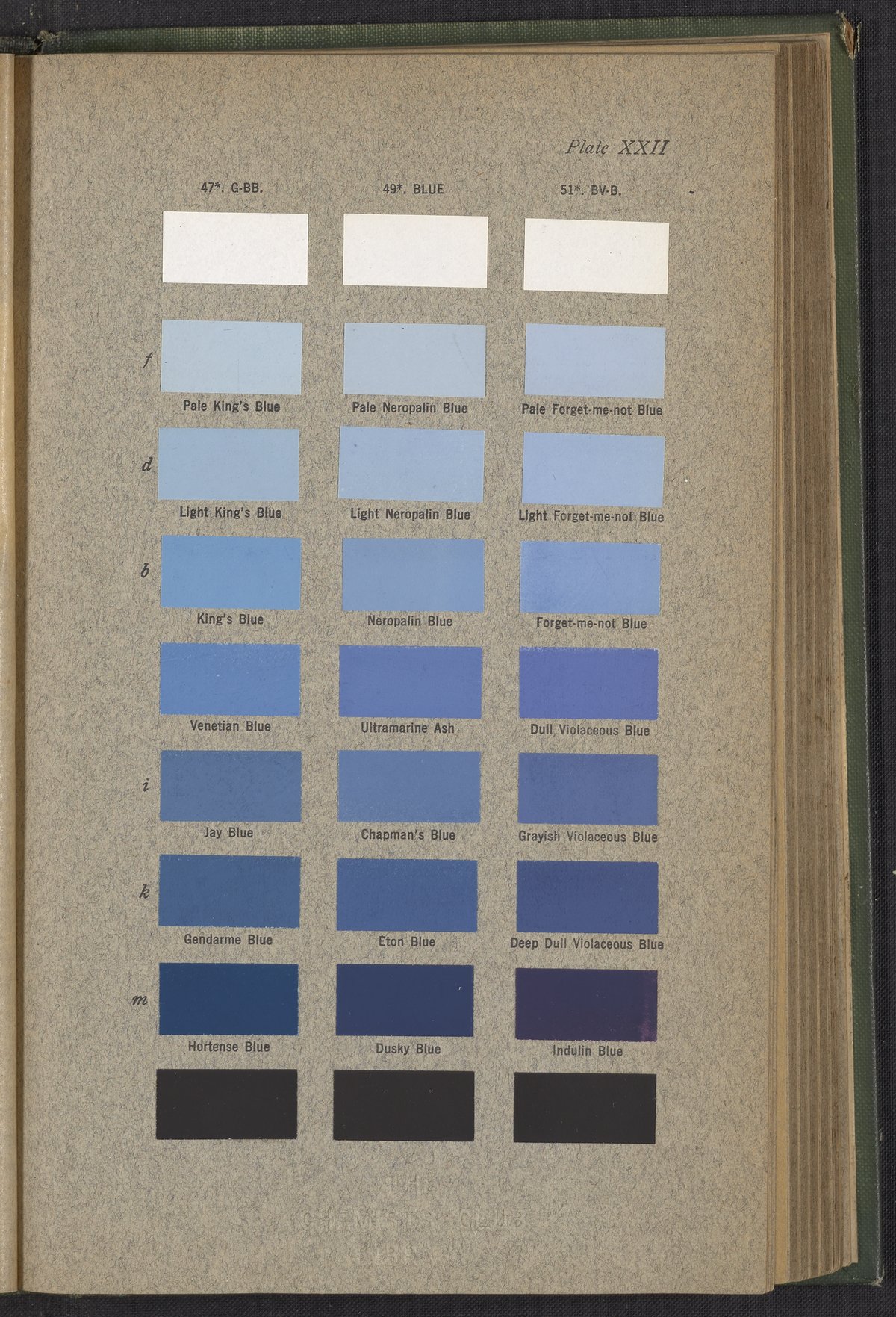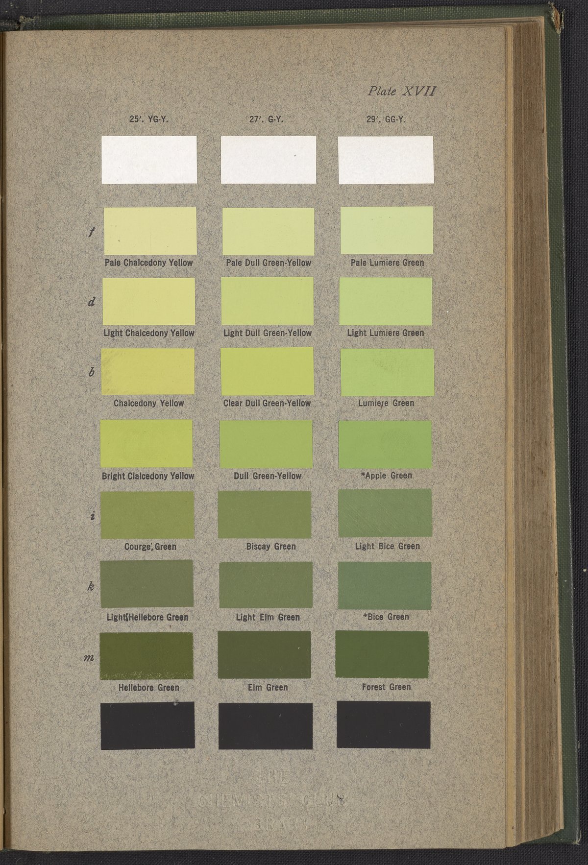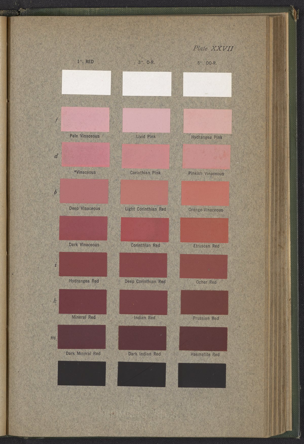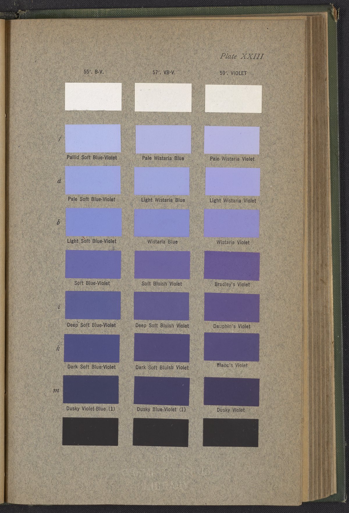 Ridgway, Robert. “Color Standards and Nomenclature.” Washington (D.C.): Robert Ridgway, 1912. QC495 .R53 1912. Science History Institute. Philadelphia. https://digital.sciencehistory.org/works/8mibc4w.