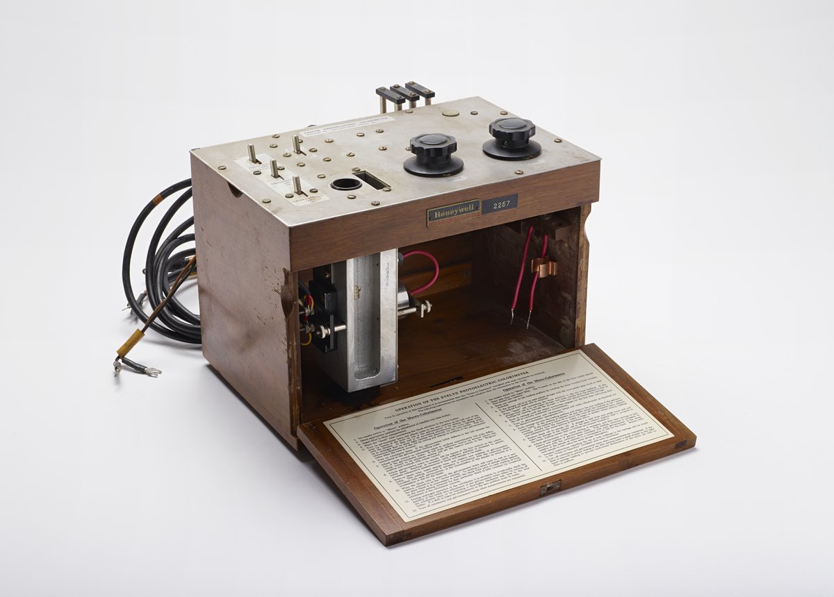 Science History Institute. Evelyn Photoelectric Colorimeter. Photograph, 2016. Science History Institute. Philadelphia. https://digital.sciencehistory.org/works/8p58pc99n.