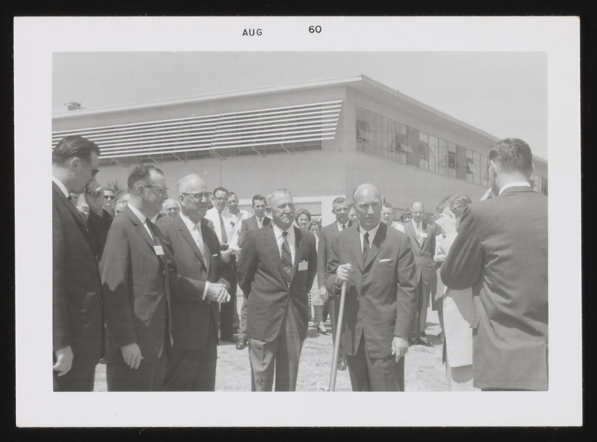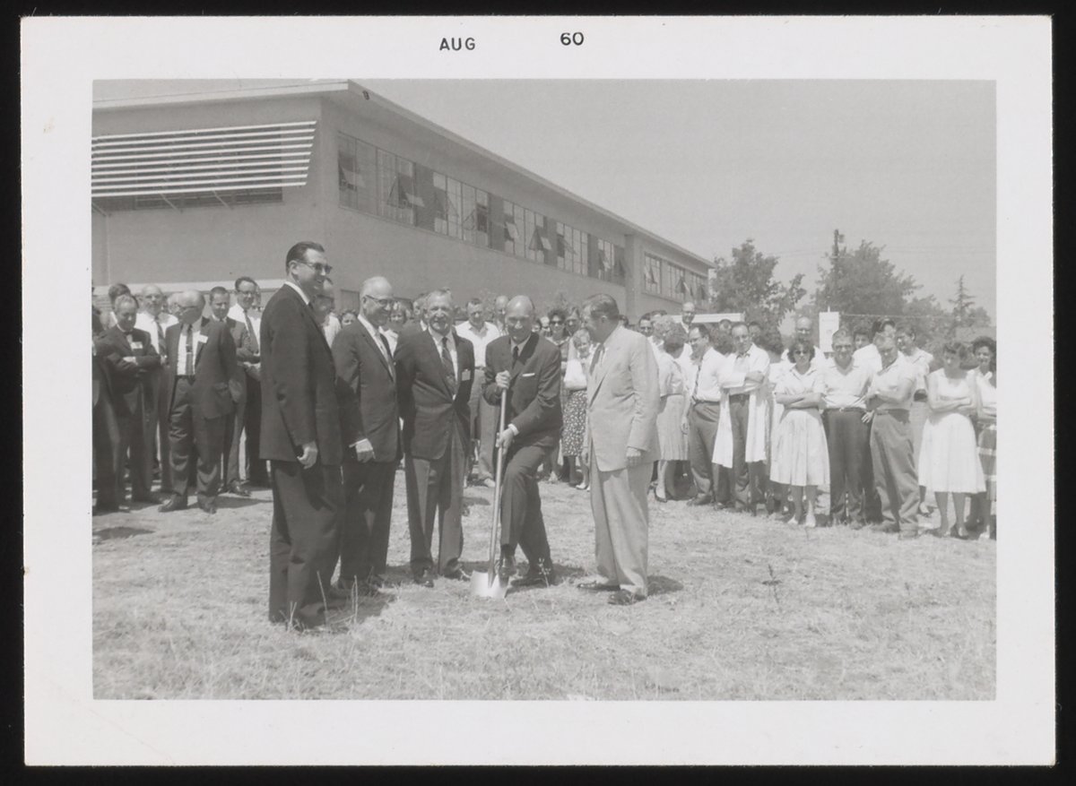 “Groundbreaking Ceremony for Spinco Division Building in Palo Alto, California,” August 1960. Beckman Historical Collection, Box 59, Folder 139. Science History Institute. Philadelphia. https://digital.sciencehistory.org/works/8p58pd32g.