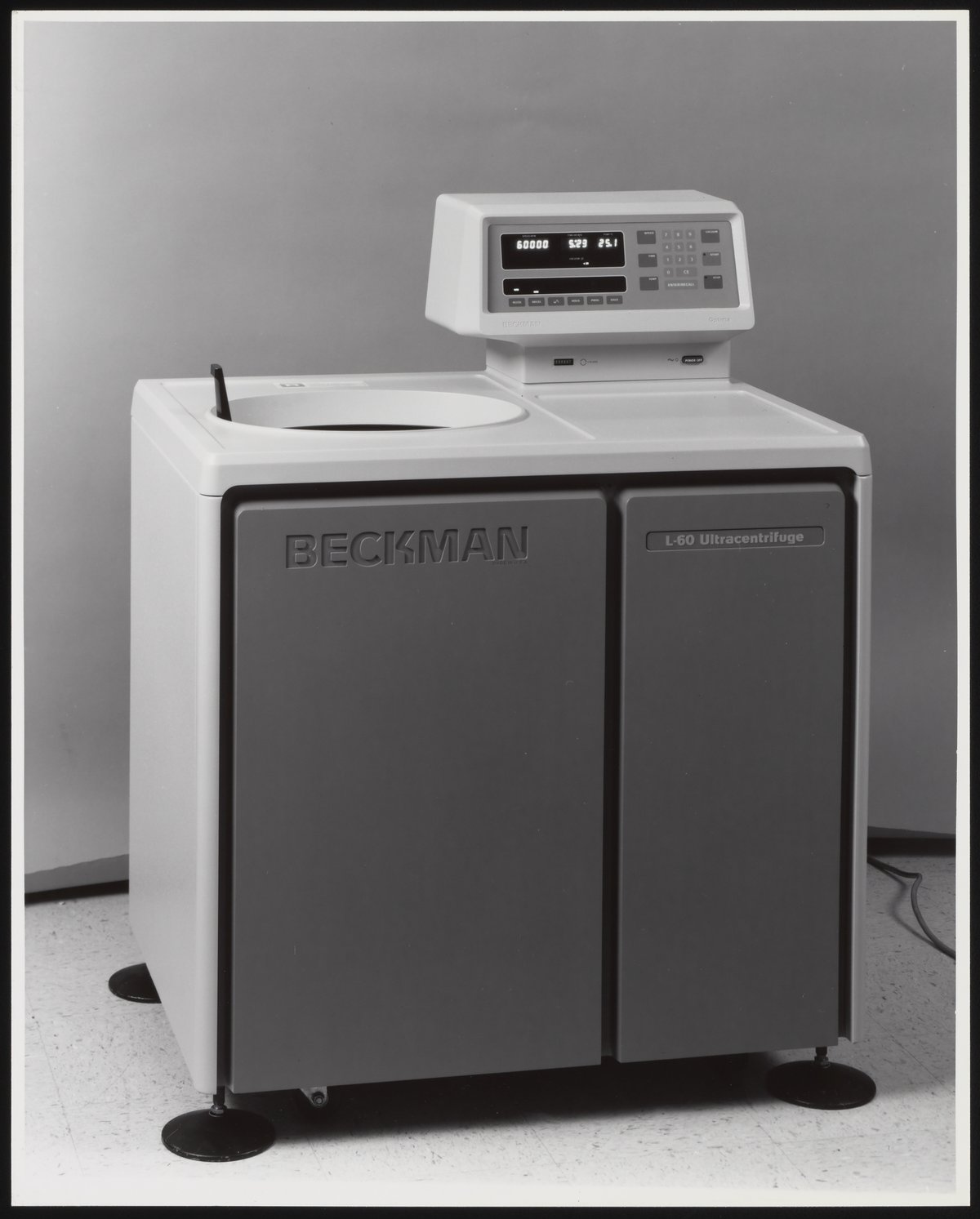Small JPG1200 x 1656px — 171 KBFull-sized JPG1570 x 2166px — 262 KBOriginal fileTIFF — 1570 x 2166px — 9.8 MBBeckman Instruments began producing centrifuges after their January 1, 1955 acquisition of industry leader, Specialized Instruments Corporation, or Spinco. With Spinco came the famous Model E Ultracentrifuge, which was developed in 1947 and was used for many important scientific discoveries of the 20th century, like the 1957 CalTech experiment that proved James Watson and Francis Crick’s theory on DNA replication. Centrifuges continue to be produced under the Beckman name as of 2016.