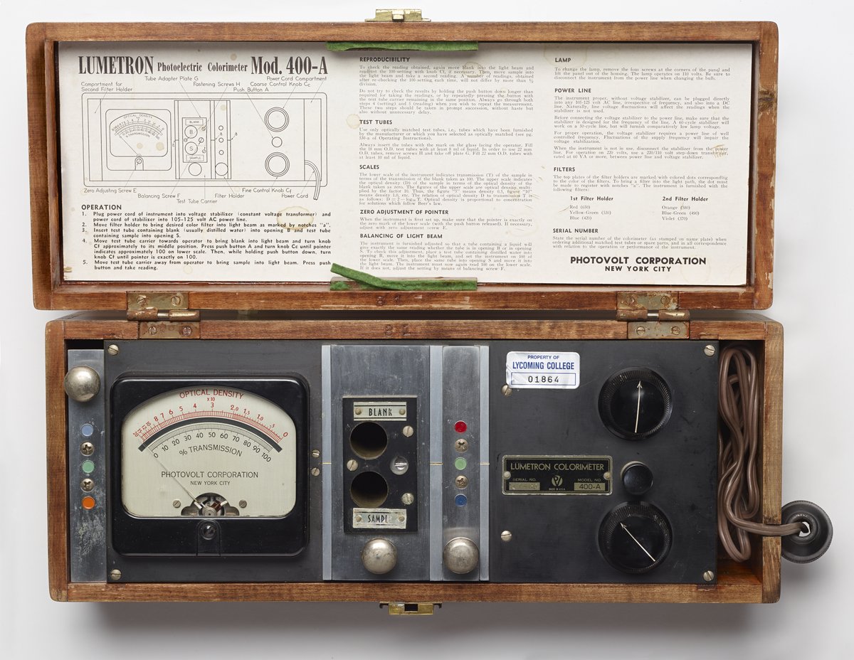 Science History Institute. Lumetron Photoelectric Colorimeter Model 400-A. Photograph, 2018. Science History Institute. Philadelphia. https://digital.sciencehistory.org/works/8s45q9640.