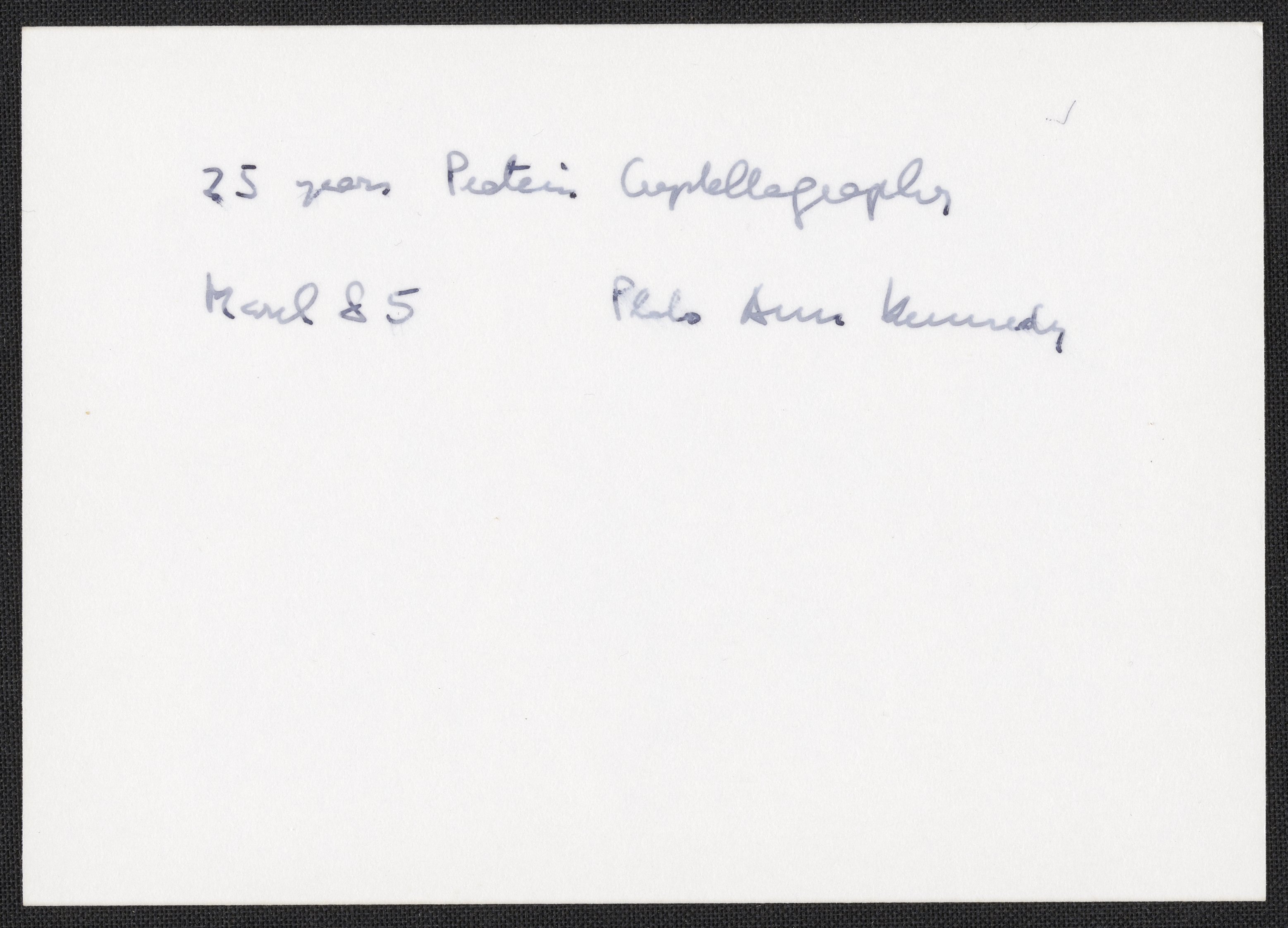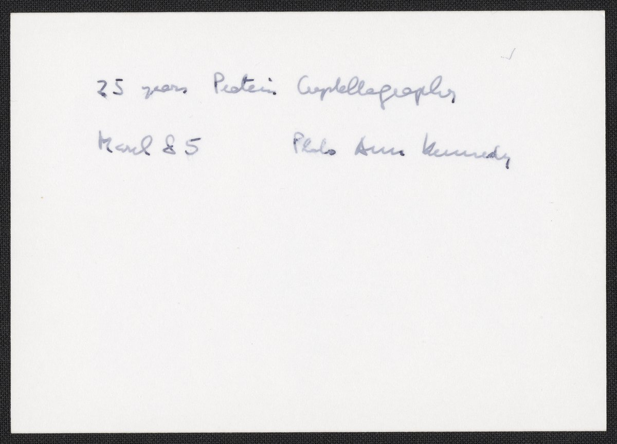 “25 Years of Protein Crystallography, March 1985,” March 1985. History of Molecular Biology Collection, Box 83, Folder 7. Science History Institute. Philadelphia. https://digital.sciencehistory.org/works/8ufm5vz.