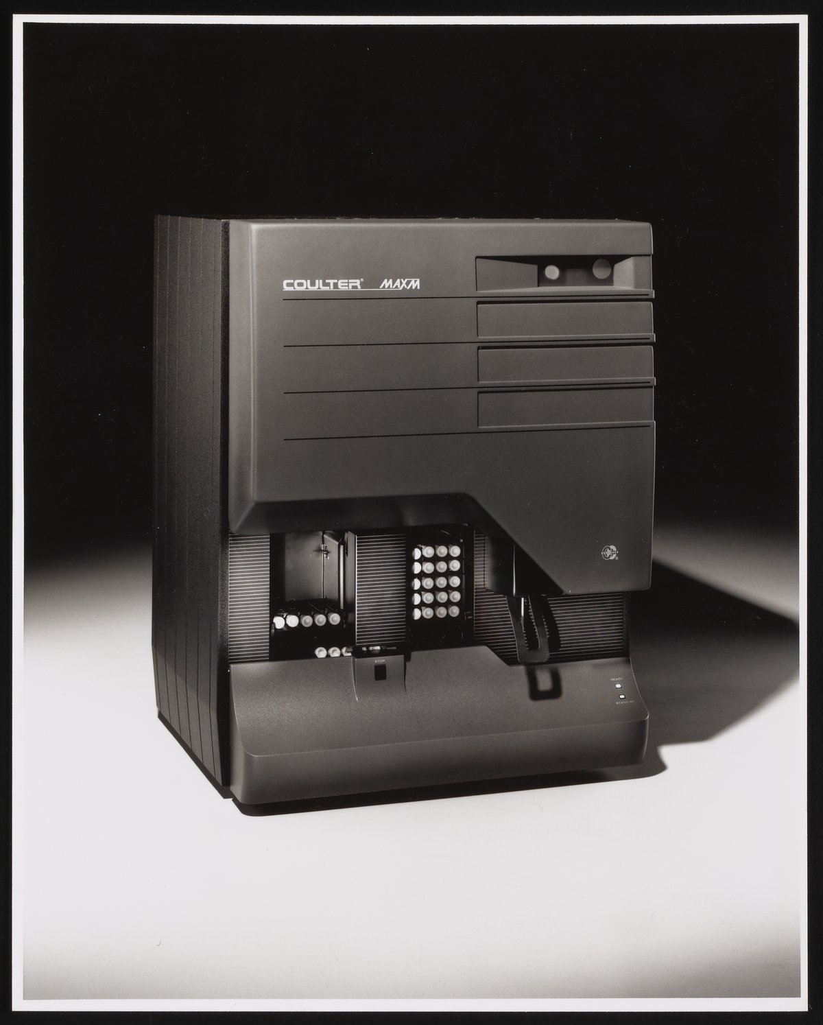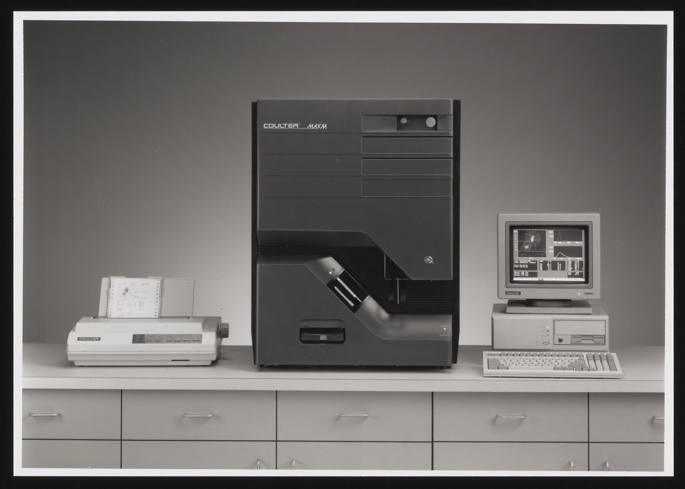 “Coulter MAXM Blood Analyzer,” 1990–1999. Beckman Historical Collection, Box 59, Folder 6. Science History Institute. Philadelphia. https://digital.sciencehistory.org/works/9019s2949.