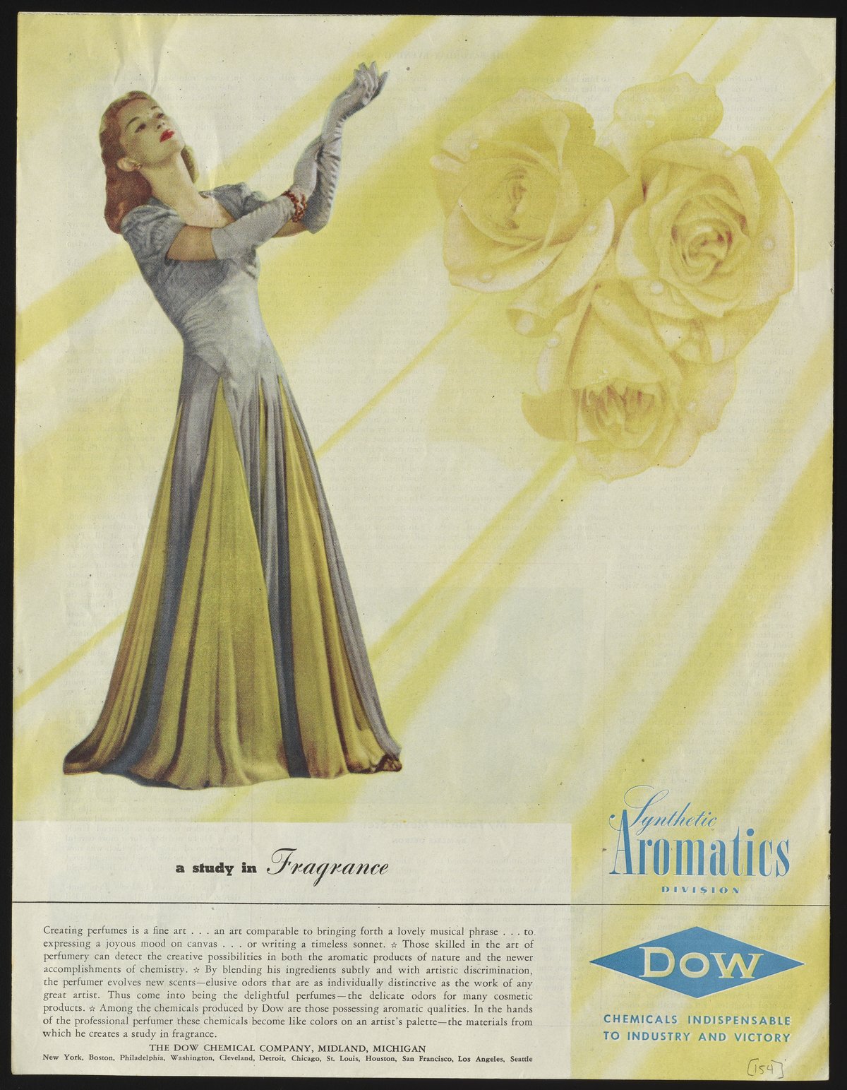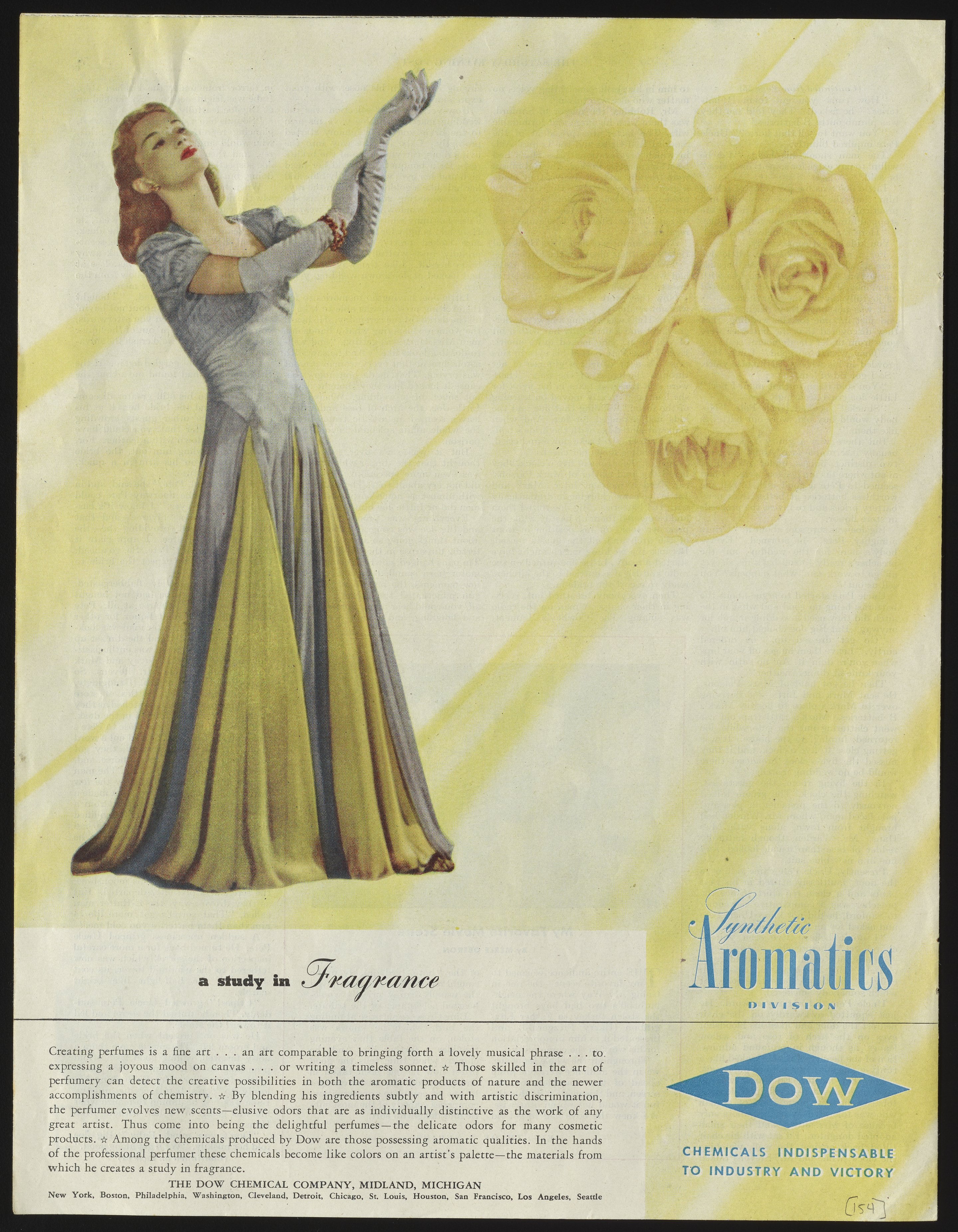 Dow Chemical Company. “A Study in Fragrance,” January 13, 1945. Advertisements from the Dow Chemical Historical Collection, Box 7. Science History Institute. Philadelphia. https://digital.sciencehistory.org/works/9019s320q.