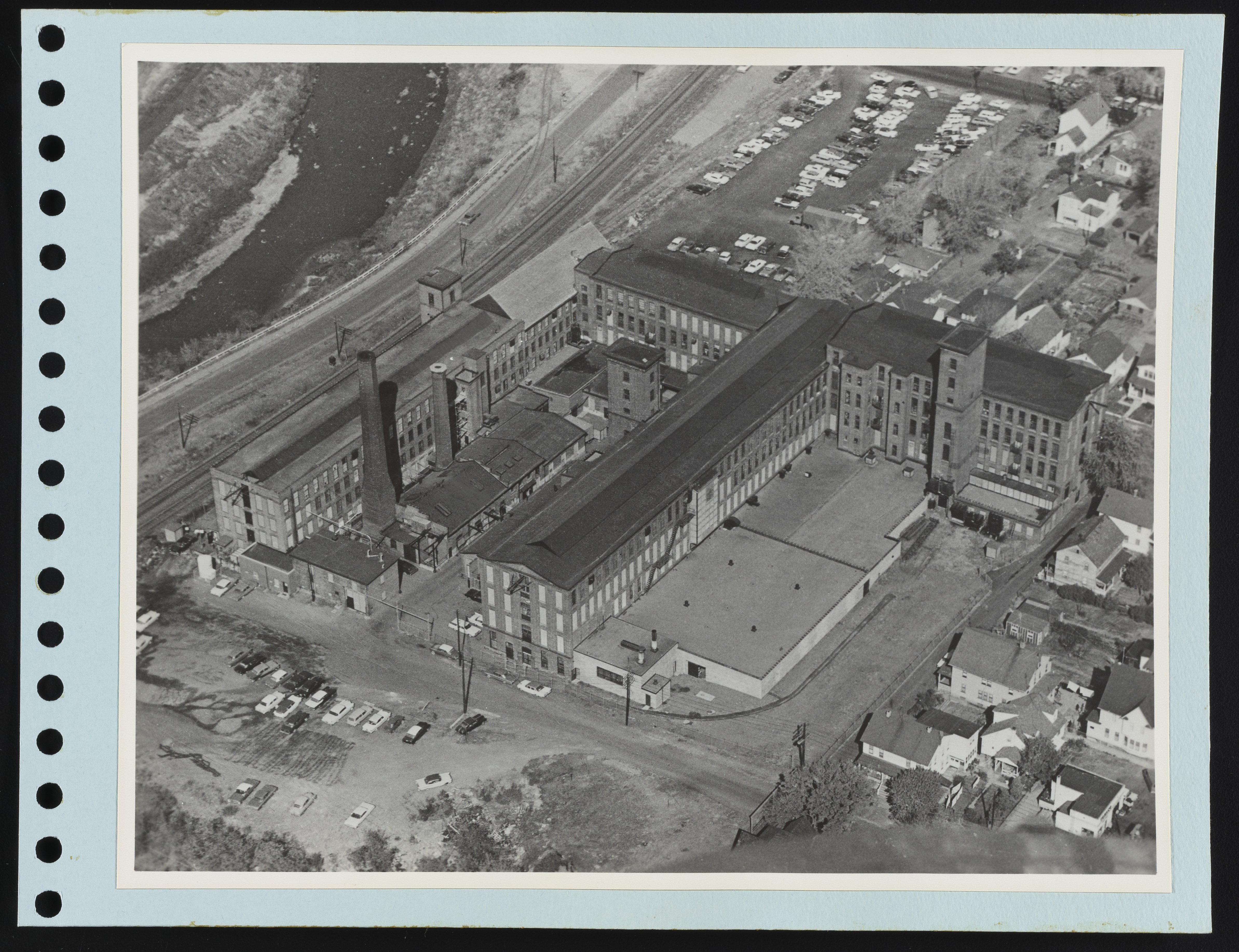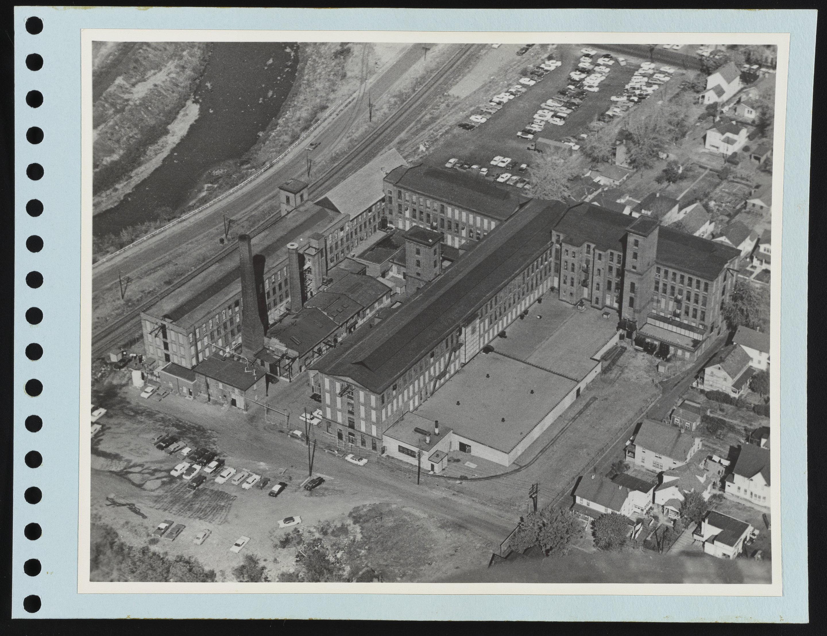 Rohm and Haas Company. “Aerial View of Sauquoit Fibers Company Facility.” Rohm and Haas Company Album of Domestic Locations, 1965, 1965. Rohm & Haas Company Archives, Box 23 (Photographs), Folder 7. Science History Institute. Philadelphia. https://digital.sciencehistory.org/works/9019s335b.