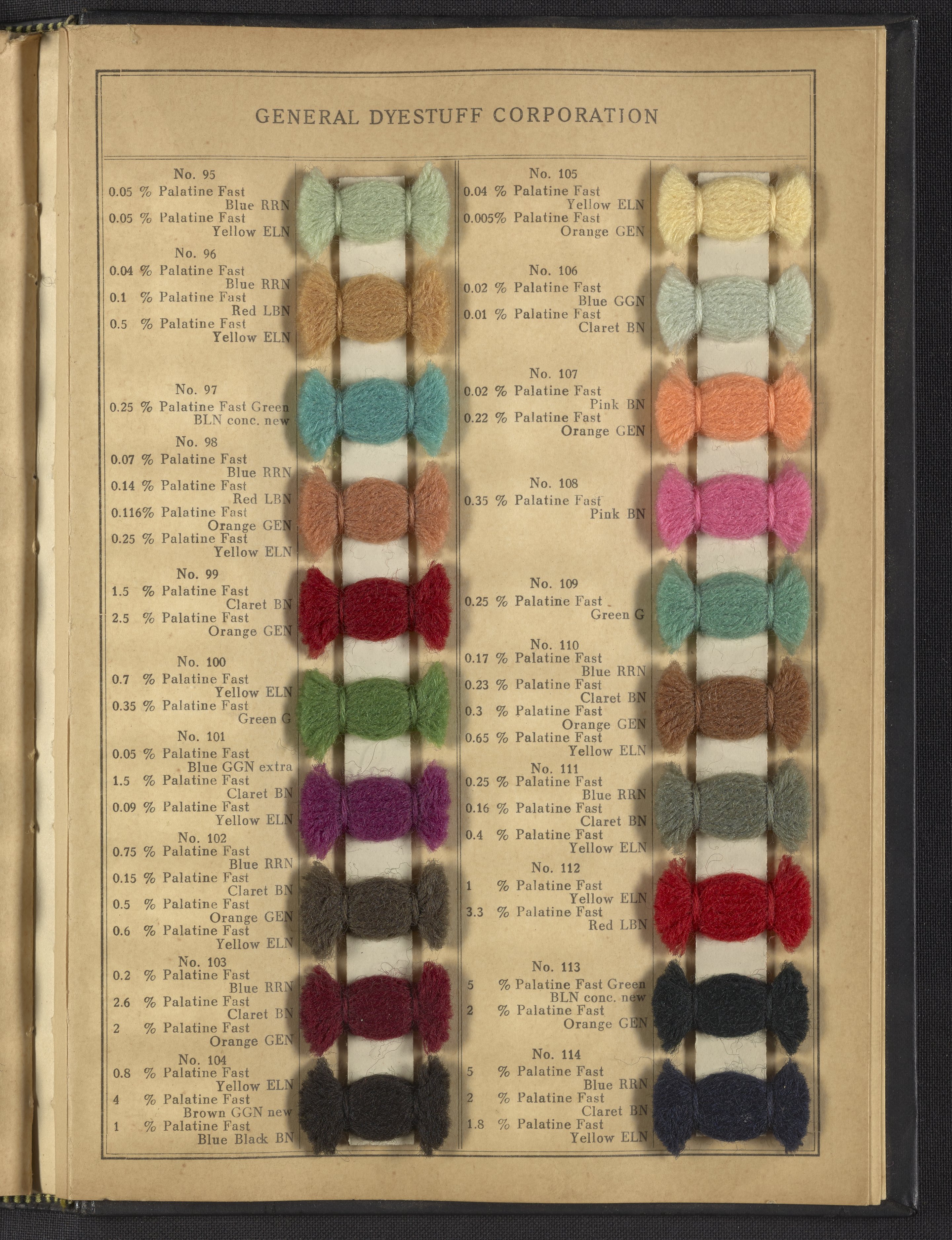General Dyestuff Corporation. The Palatine Fast Dyestuffs. New York, New York, 1920. https://digital.sciencehistory.org/works/9593tv15x.