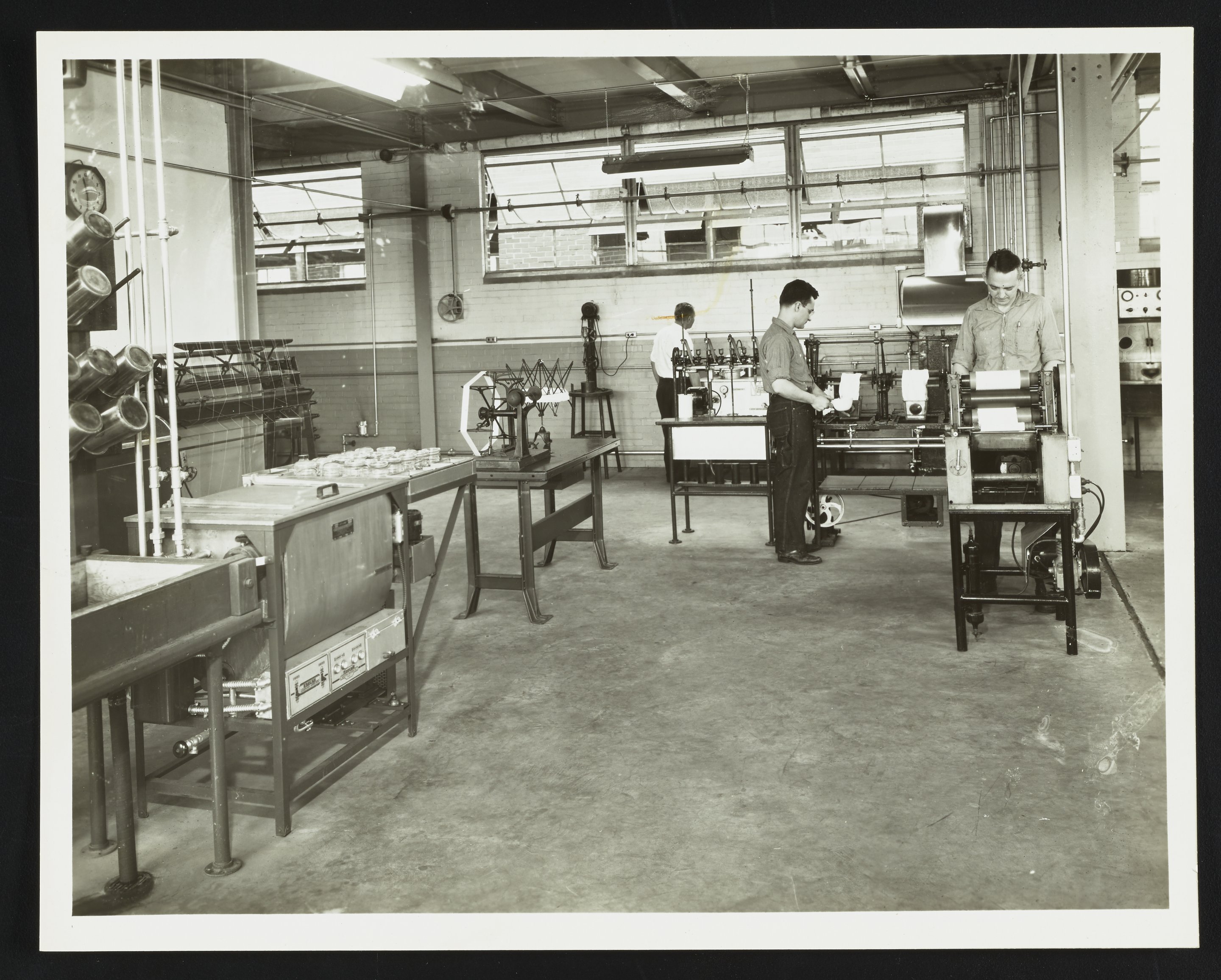 “Dyeing Equipment in Use at Althouse Customer Service Laboratory,” circa 1951. Photographs from the Records of the Althouse, Bates, and Crompton Chemical Companies, Box 1. Science History Institute. Philadelphia. https://digital.sciencehistory.org/works/9c67wm87q.