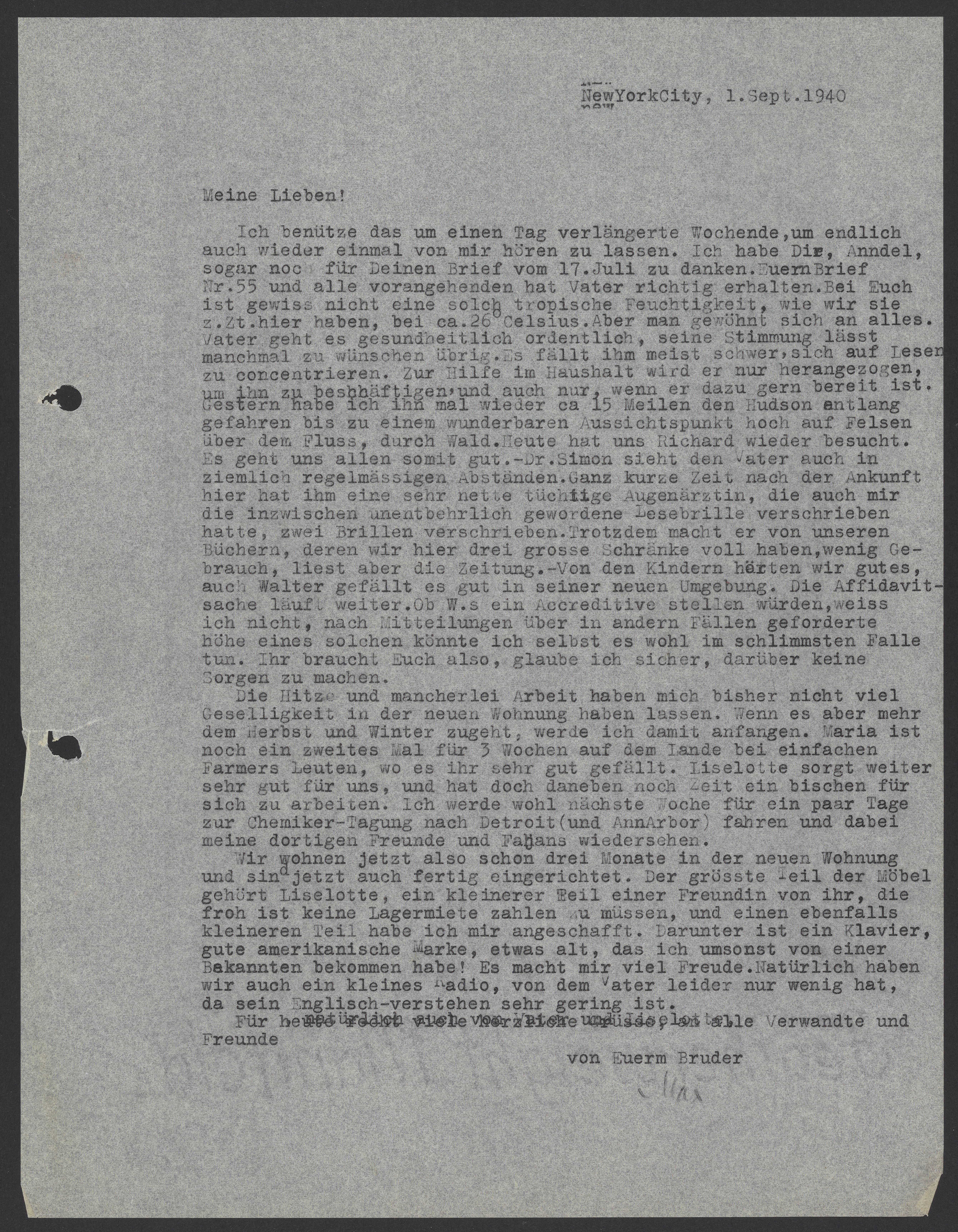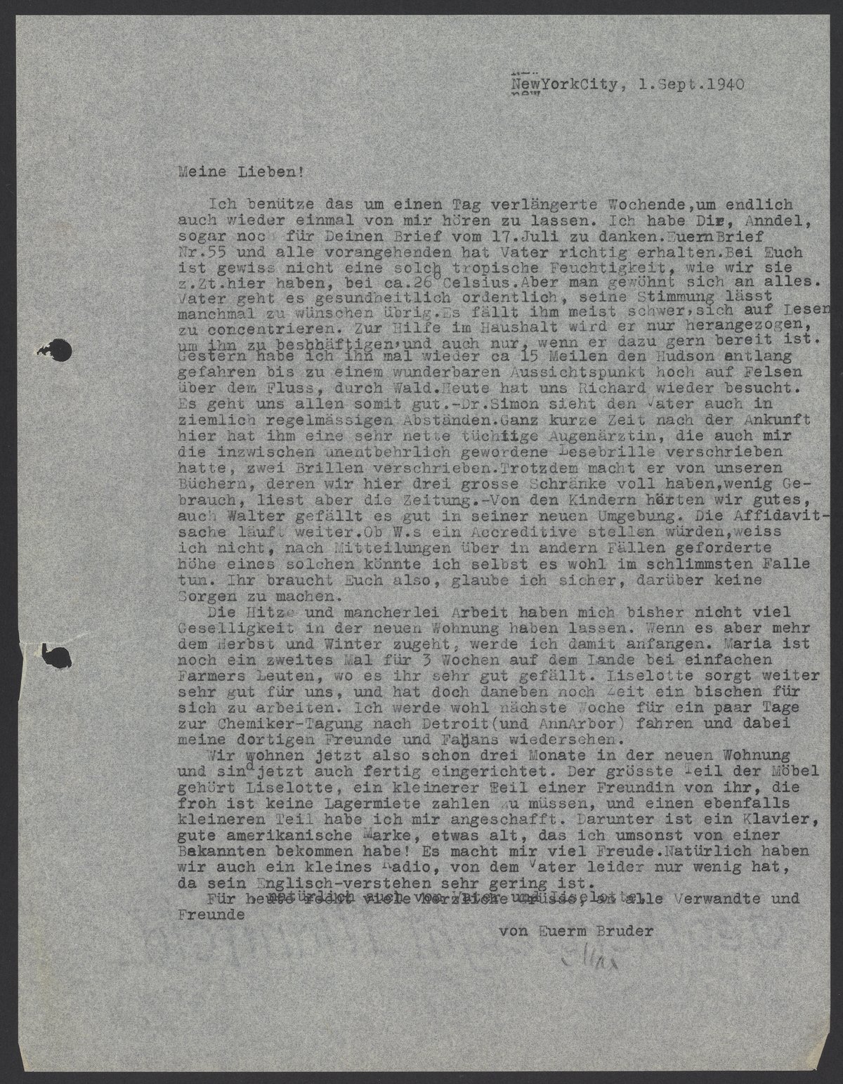 Letter from Max Bredig to Marianne and Viktor Homburger, September 1, 1940