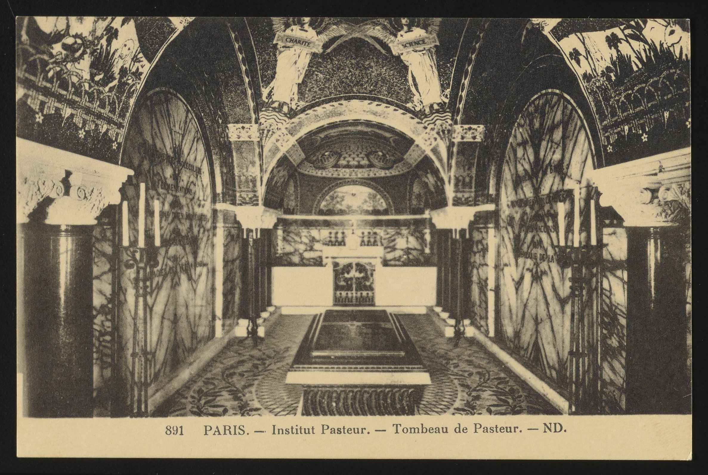 Lévy et Neurdein réunis. “Postcard - Institut Pasteur - Tombeau De Pasteur.” Paris, France, circa 1920. Fisher-Pasteur Memorial Collection, Box 1, Folder 24. Science History Institute. Philadelphia. https://digital.sciencehistory.org/works/9k41zd55x.