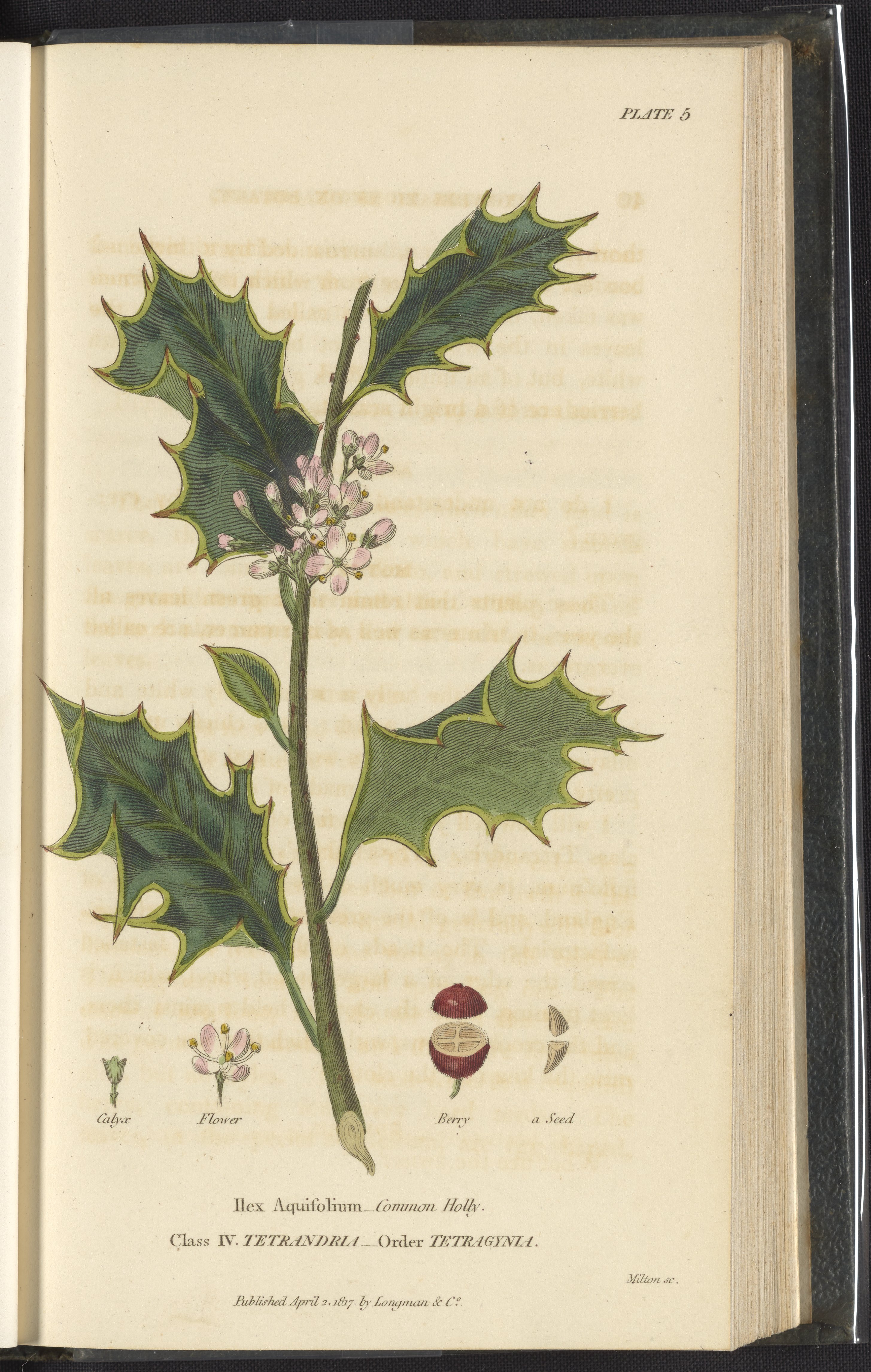 Fitton, Sarah Mary, and Elizabeth Fitton. “Plate 5: Ilex Aquifolium.” In Conversations on Botany. London, England: Longman, Hurst, Rees, Orme, and Brown, 1817. https://digital.sciencehistory.org/works/9p290942h.